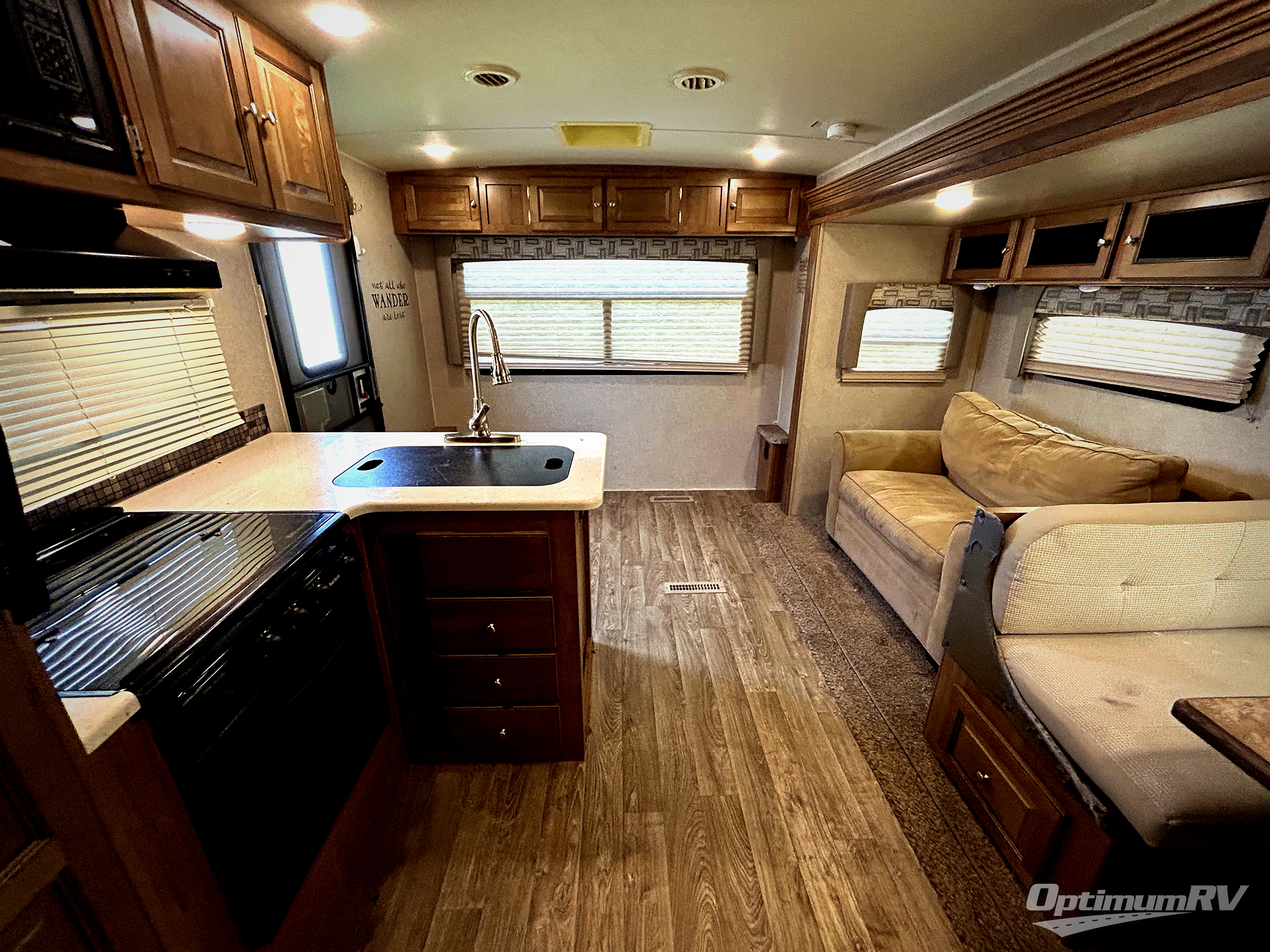 For any camping trip you will want a Flagstaff Super Lite travel trailer! These models have a beautiful Driftwood interior with solid wood and raised panel doors and drawers. You can rest comfortably in the living room at the heater theater seats with USB ports which come standard or are an optional choice per floorplan. Along the exterior there is a fully aluminum frame, radius roof with interior vaulted ceilings which gives you the most headroom, plus large dinette picture windows where you can sit and enjoy the view. The Standard Packages offer features such as a WiFi ranger WiFi booster, an enclosed underbelly, a power awning with adjustable rain dump and LED light strip, a rear observation camera prep with molded mounting plate, and so much more!