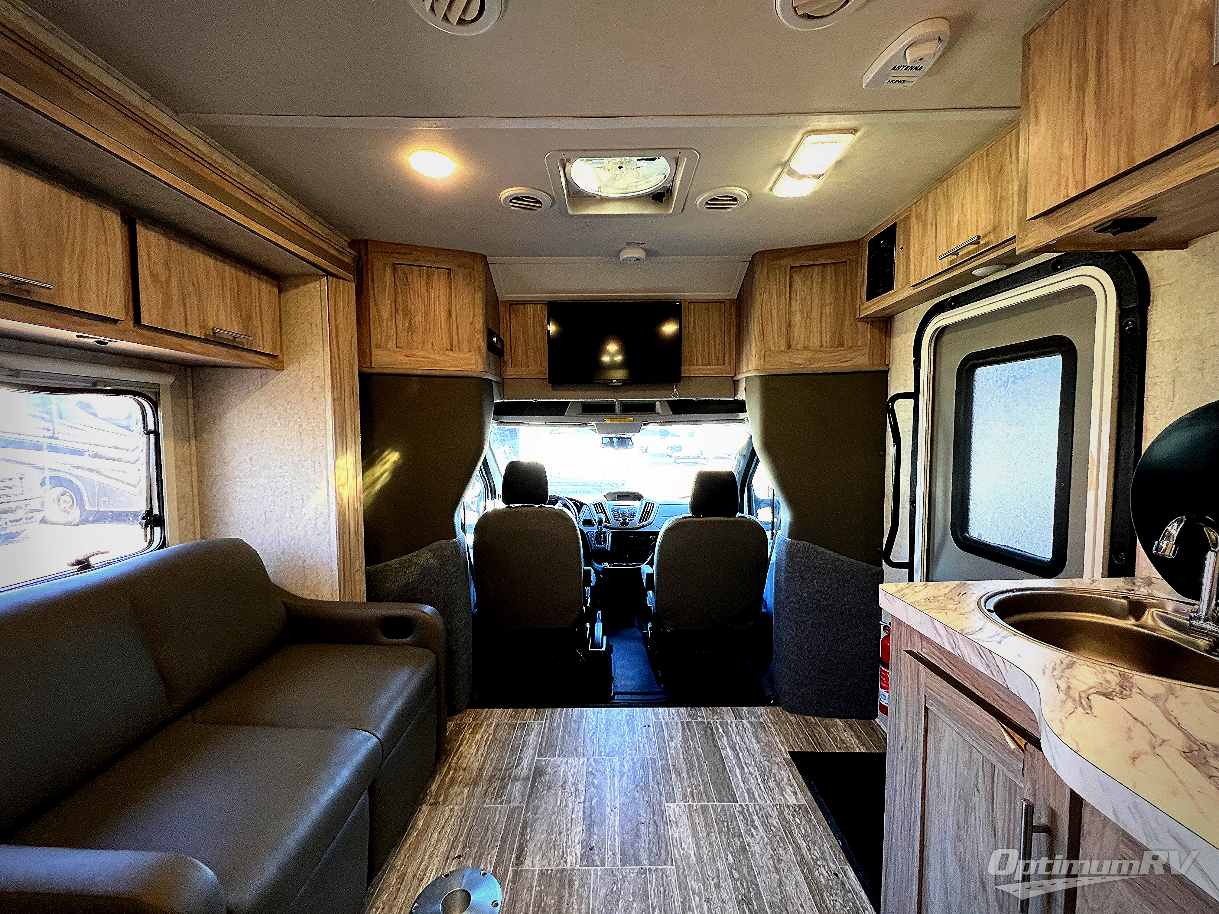 This Forster TS motorhome model 2371 is the ONLY class C in the Forester series that has two twin beds in the back, they can also fold down into a queen bed if you would like them to. The full rear bath gives you some privacy and a little more room for changing. Take this unit out on your next weekend get-a-way, and when it is time to pack up and go home, it will be super quick and easy to put your things away and drive off. There is plenty of overhead cabinetry for your things.