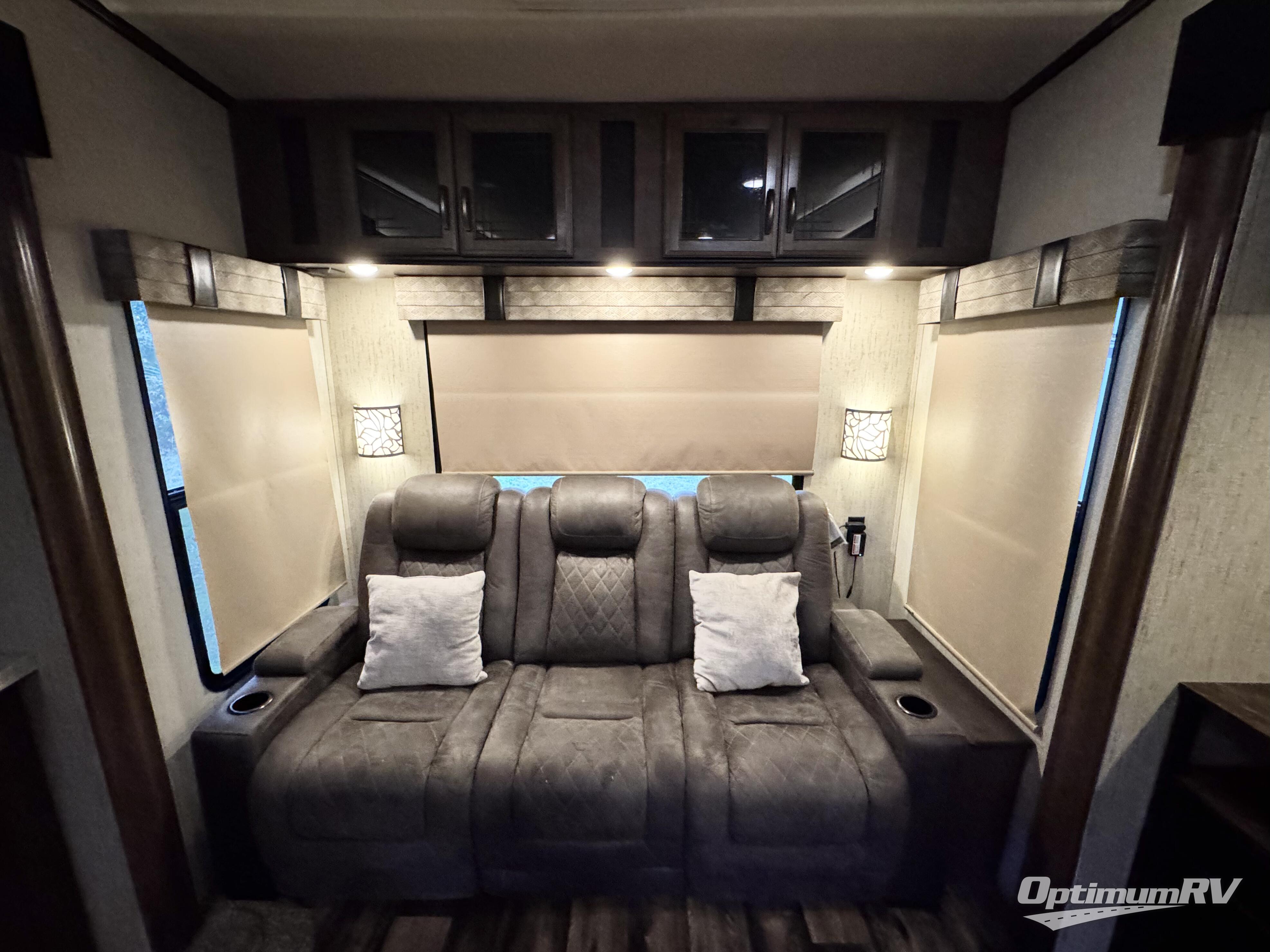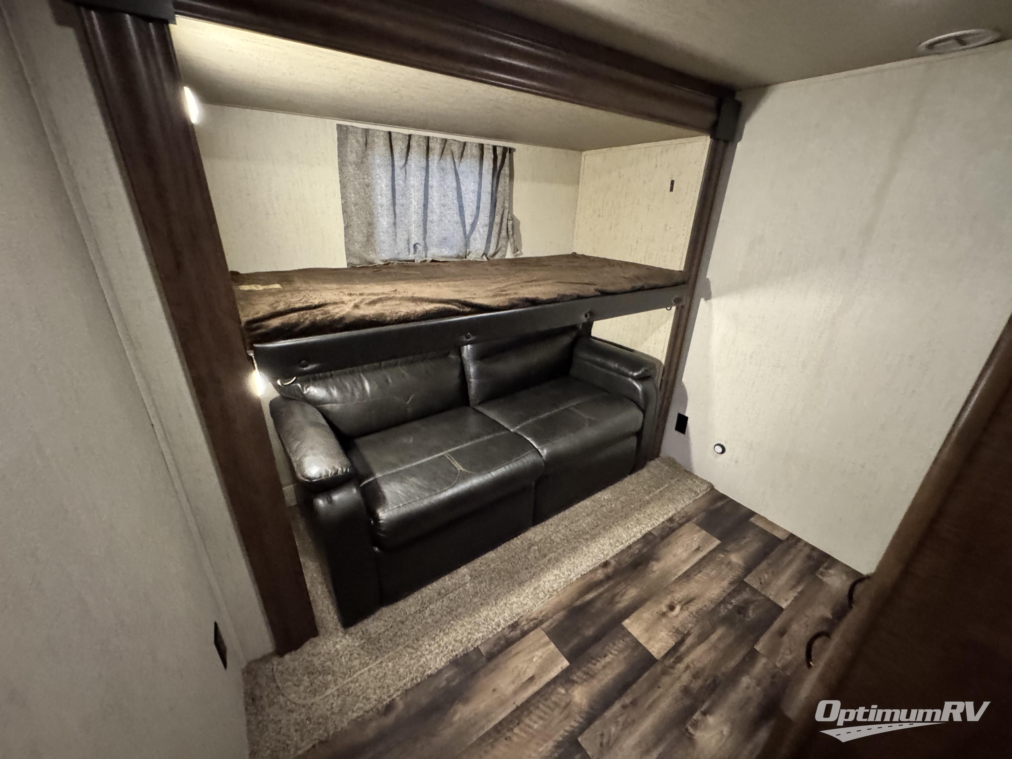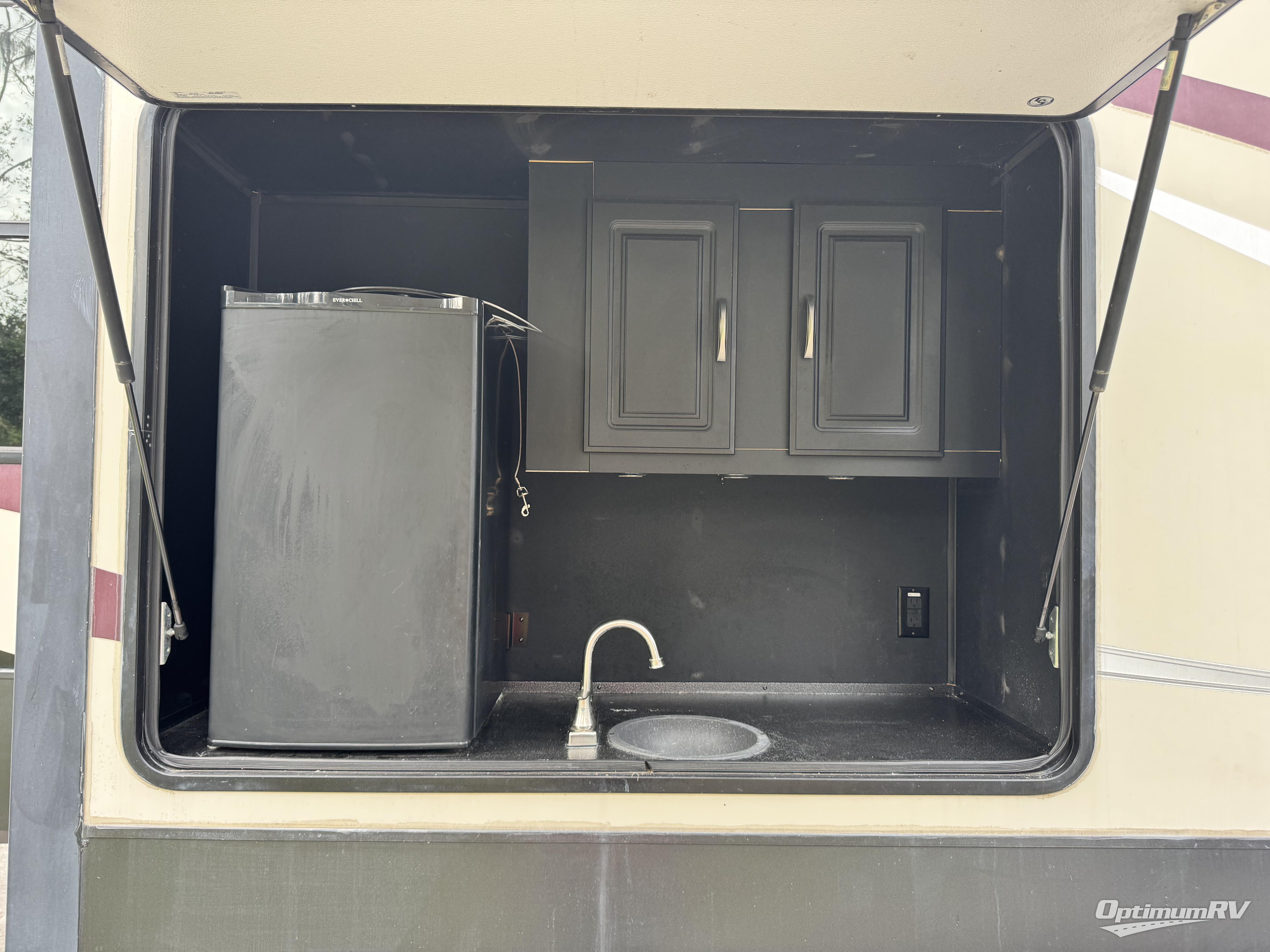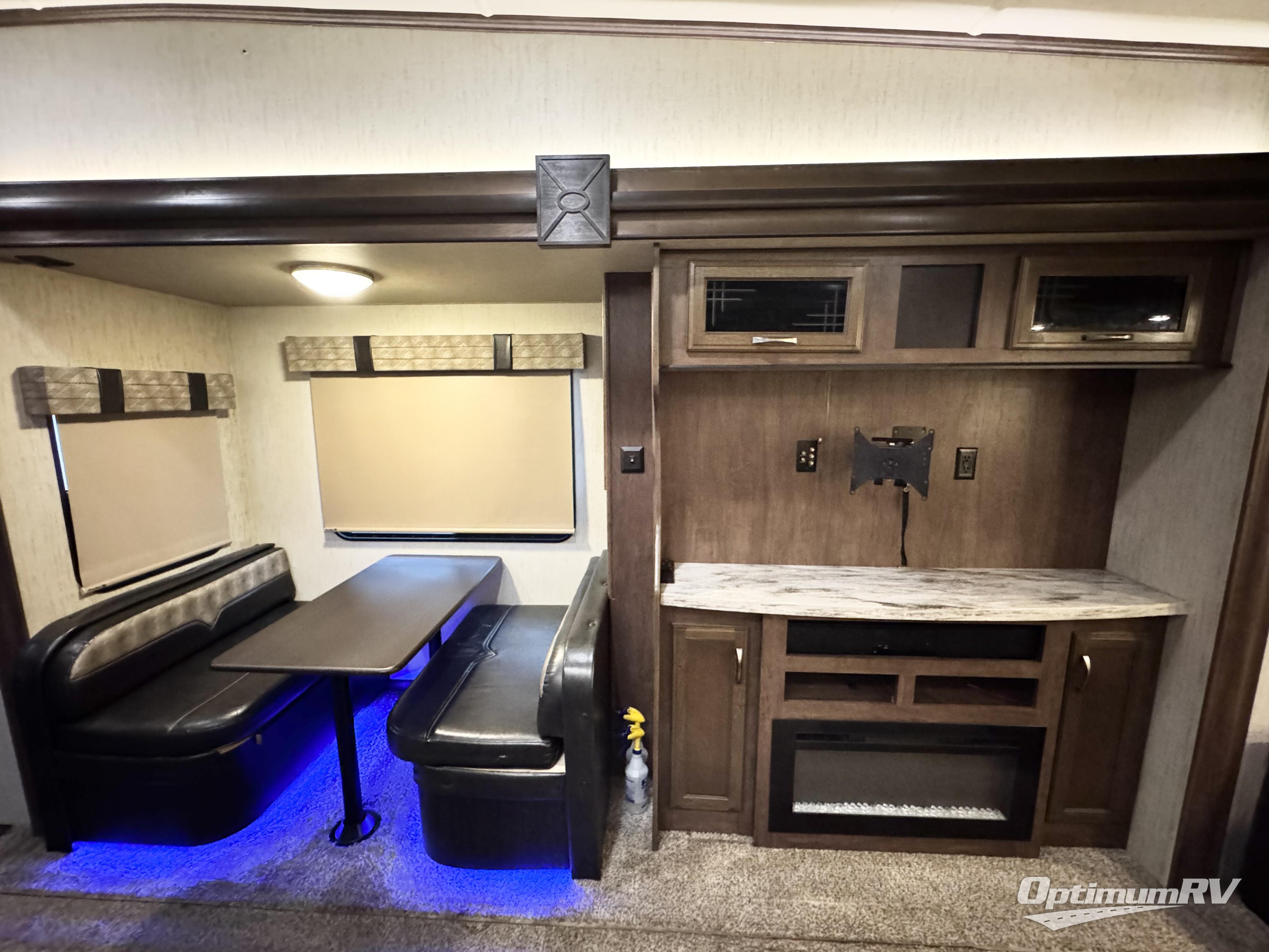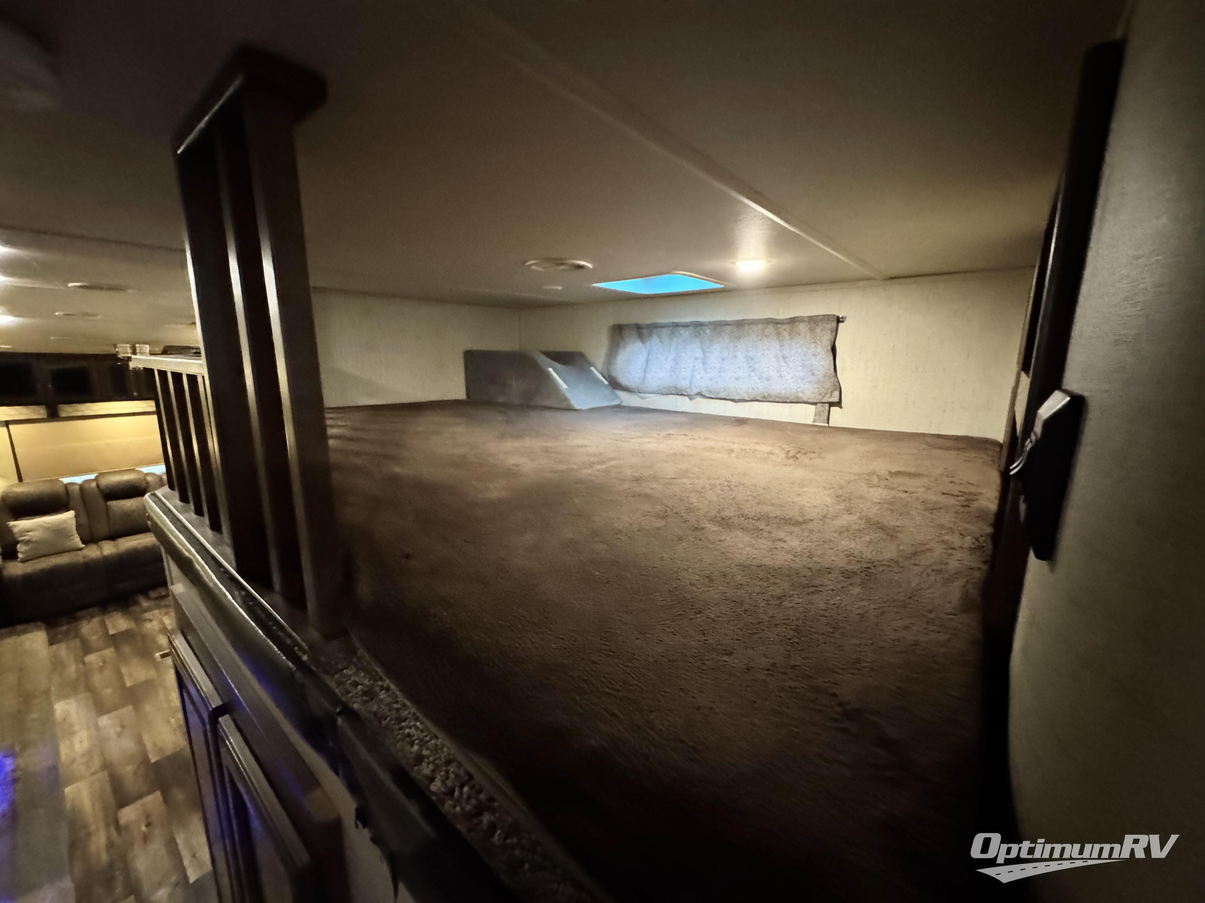 For the family friendly fifth wheel you will want this Sandpiper 372LOK by Forest River. You will enjoy the convenience of two kitchens - one inside and one outside. Almost straight in from the door is the second bedroom which can easily double as a den. Above this room there is a loft which features sleeping space for two people. In the combined kitchen and living area there is an island with pendant lights and extra counter space to work. You can easily relax in this living area with an entertainment center, fireplace, and theater seating!