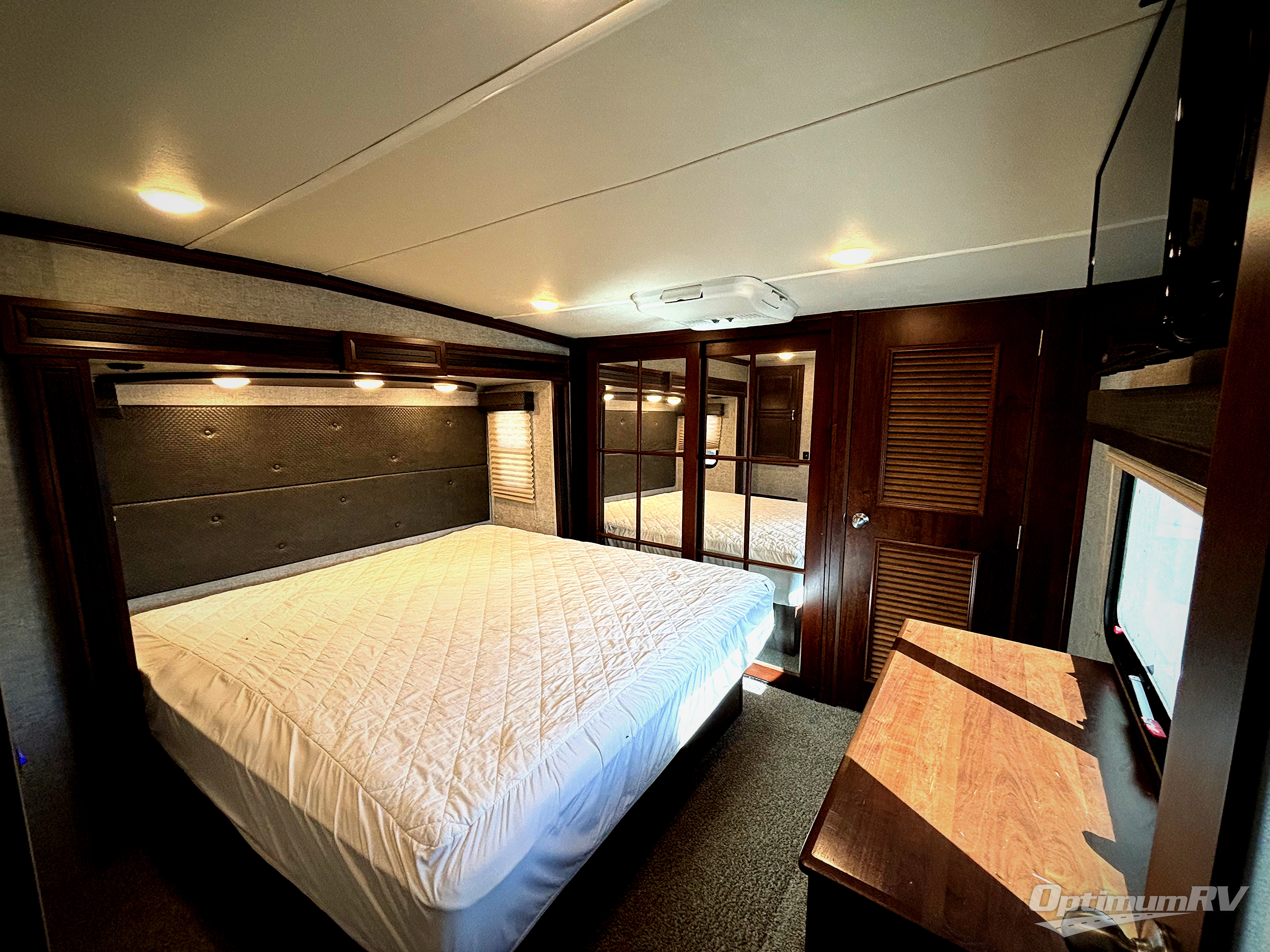 The fun doesn't have to stop out on the trails with this Vengeance Touring Edition unit. You can easily continue the party once back at camp. Head inside and get cleaned up. There is a convenient half bath off the garage area which features 12' of space along the roadside and 10'10" along the curbside. You also have a full bath with large 48" x 30" shower including a seat up front. Grab some refreshments and snacks and head out onto the side raised patio deck to enjoy. You can add optional patio steps to have easy access from the ground outside if you wish. If the weather is a bit chilly take the party inside where you have a large entertainment center with theater seating for four, plus bar stools at the counter. You can also hang out in the garage area where there are dual flip sofas beneath the electric lift bed as well as a TV at the head of the garage space to enjoy. A second rear patio deck system is also available making this a true outdoor party space for all to enjoy!