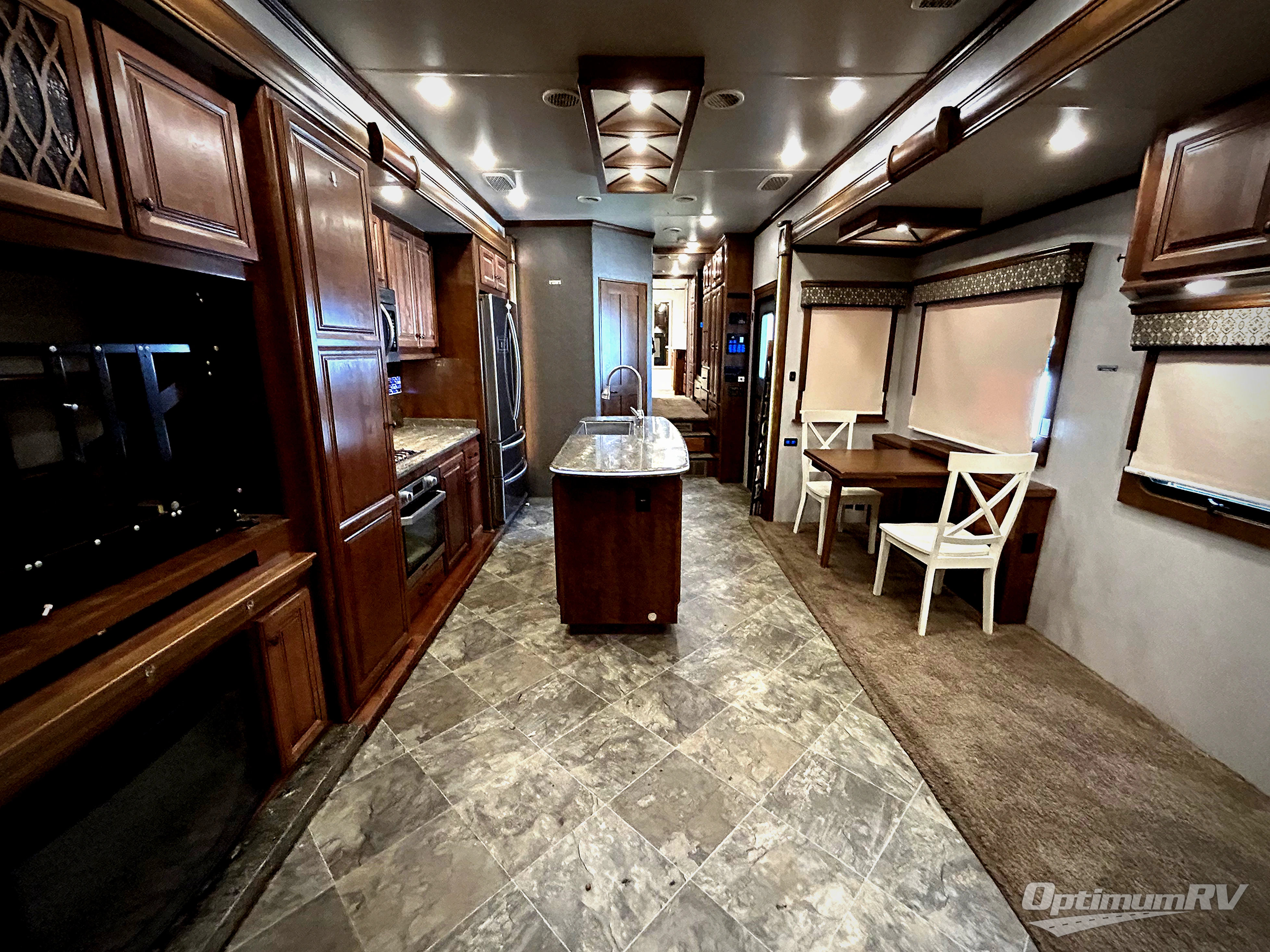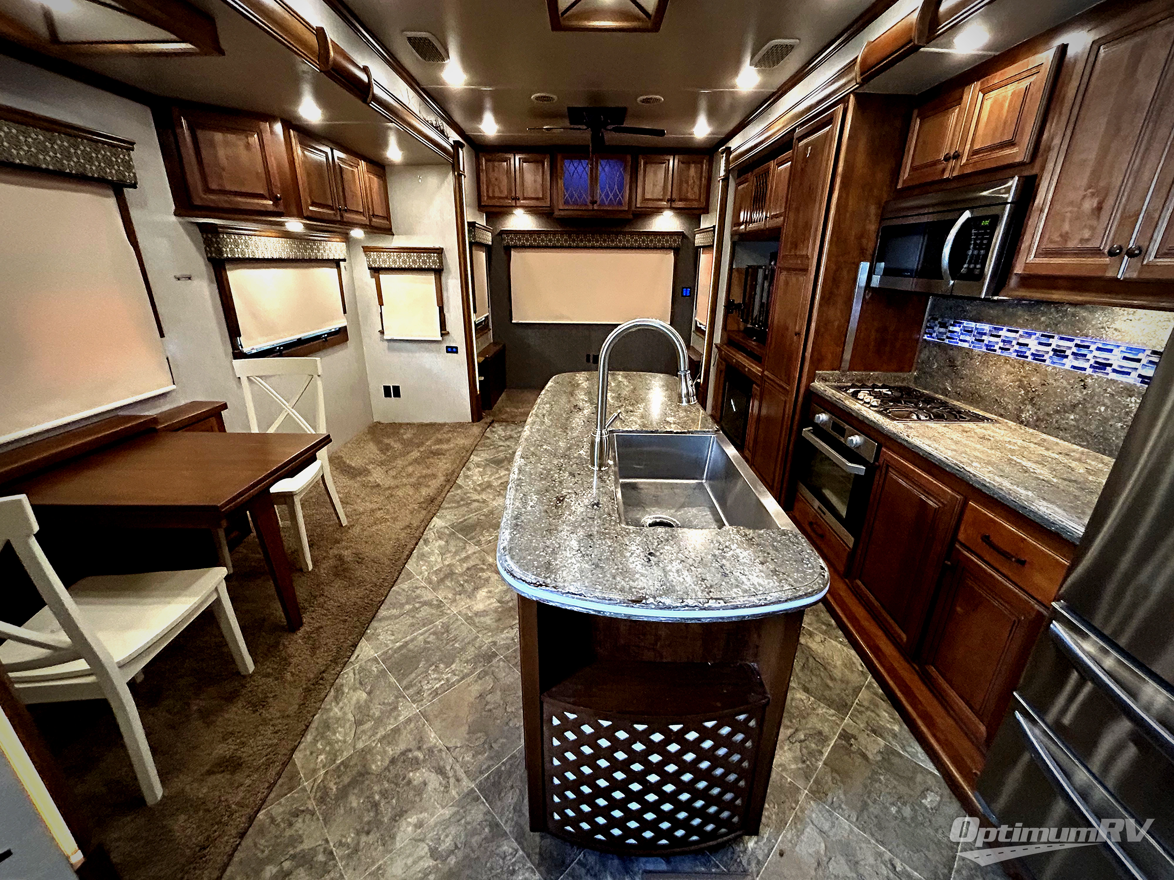 Come experience true luxury when you camp with the Landmark 365 by Heartland RV. These fifth wheels boast of comfort and convenience throughout. The sofa tables offer USB ports, so you can easily charge your electronic devices. In the living room, choose the optional Away Package and enjoy power theater seating with heat and massage - now that's luxury! The bedrooms offer adjustable reading lights, a power tilt bed, plus a TV. A few key features that you would find at home include a backlit tile backsplash, a residential refrigerator, and a farmhouse stainless single basin kitchen sink with a cutting board. There are also beautiful Maple hardwood cabinets throughout plus so much more!