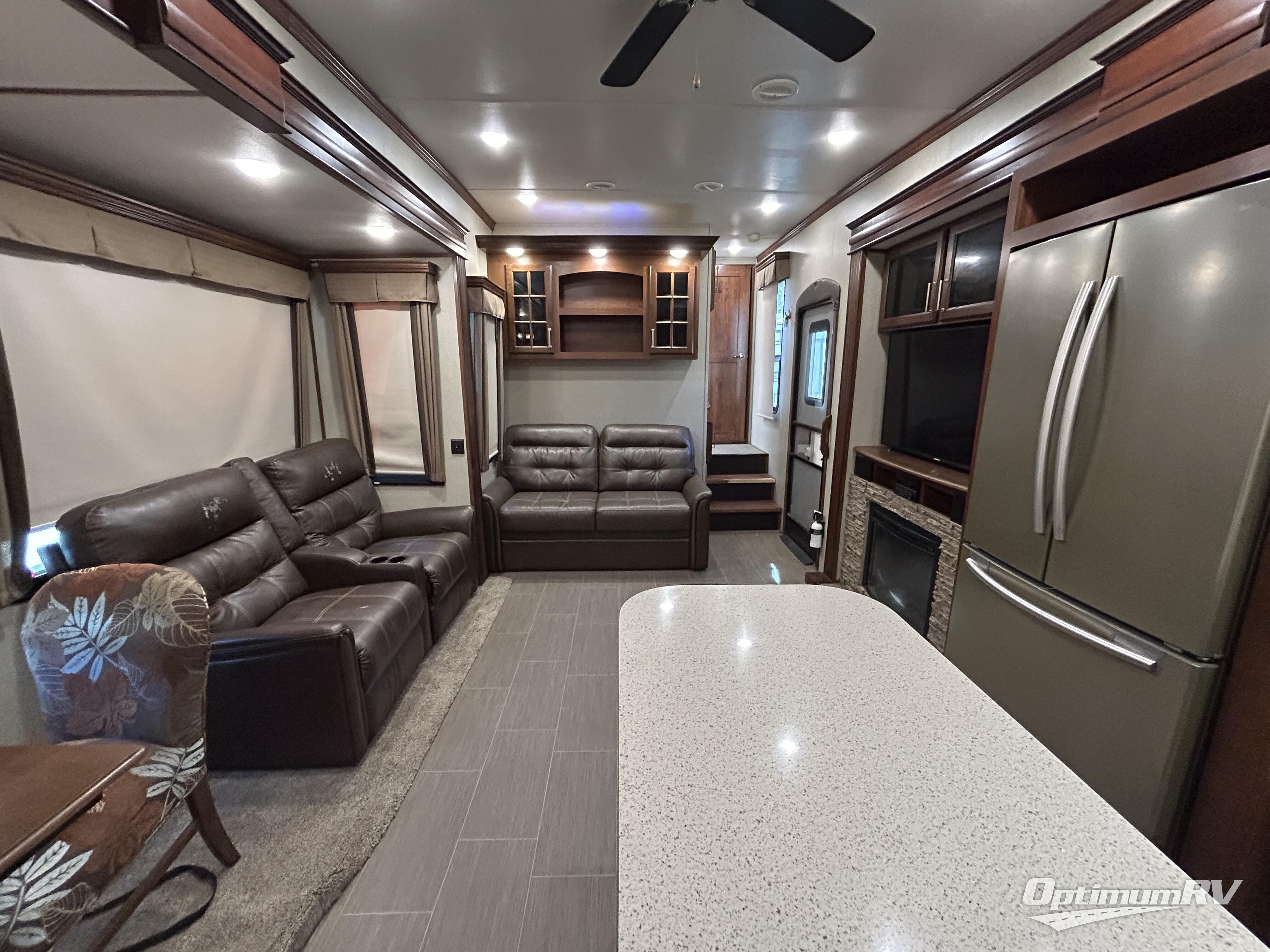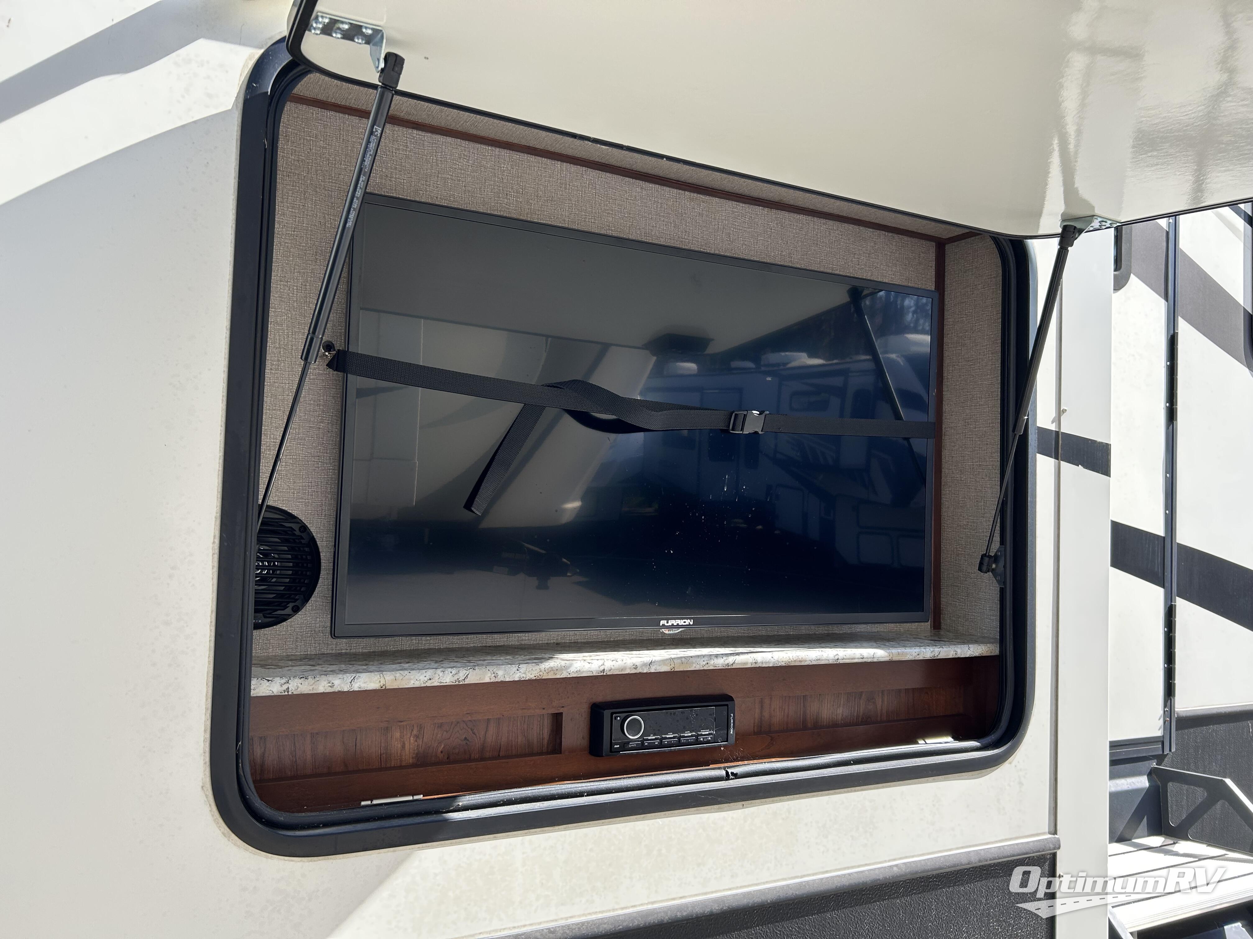 When you come to take a look at this fifth wheel, you will not be let down. The cook of the family will LOVE having extra counter space for prepping family favorites, and the kids will like having the space for cleaning up afterward. Enjoy one another's company while relaxing on the sofa sleeper, theater seats, or the free standing dinette. After a long day of relaxing, adventuring, and hanging out outside under the 16' power awning, you can get a good night's rest on the king bed in the private front bedroom.