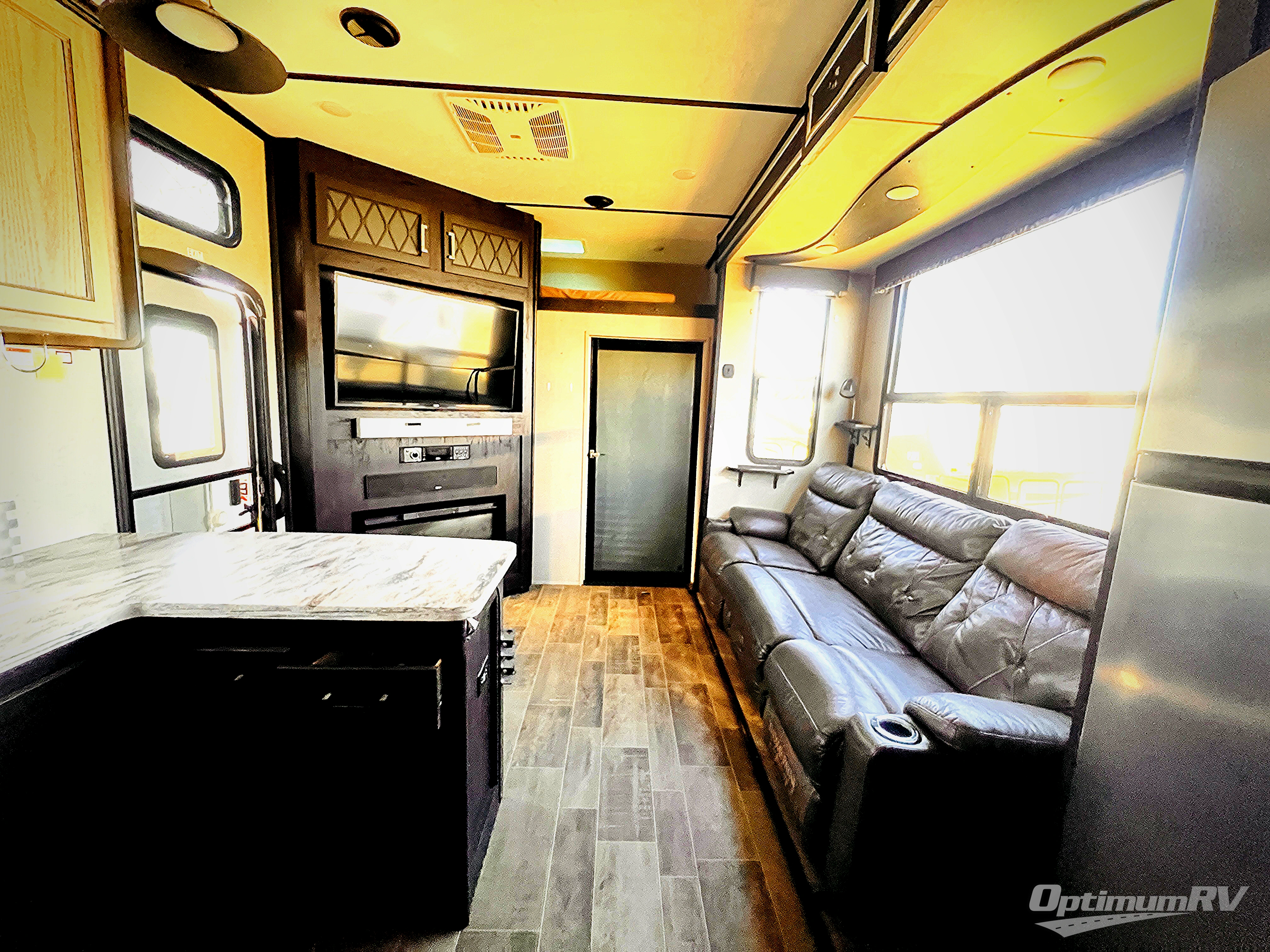 Fuzion toy hauler fifth wheels are "More than a Garage." They give you a place to store your toys while you are traveling yet give you the comforts of home. All of the countertops are solid surfaces, so cleanup is a breeze and all the storage in these units are solid cherry hardwood. The things that set Fuzion apart is the 5K Interlock System that they have created. This system is the toughest tie-down around! Each tie is welded into the metal which makes each tie down virtually unbreakable and can hold up to 5,000 lbs. Along with the tie-down system, you also have Dexter EZ Lube Axles which allow grease to flow to both inner and outer bearings easily. The In-Command RV automation and control system is something you don’t want to miss out on. This system controls all the lights, the 6pt Hydraulic Level-Up System, the awning, plus so much more all within an app on your phone. You don't need to settle, choose the "Hottest Brand in the Industry."