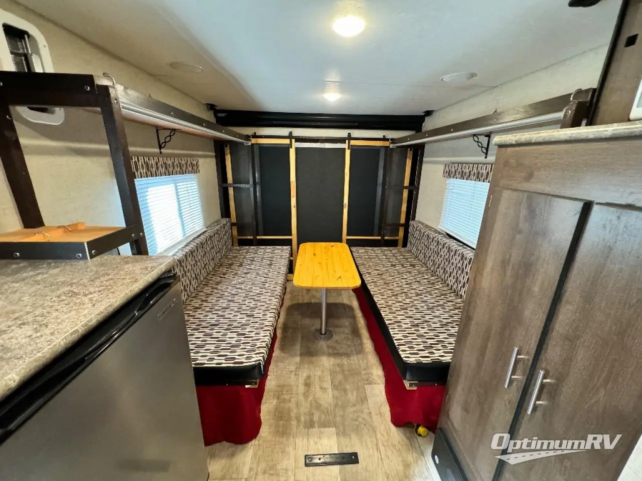 In the cargo area you will find two flip-bed/sofas, one on either side of the trailer.