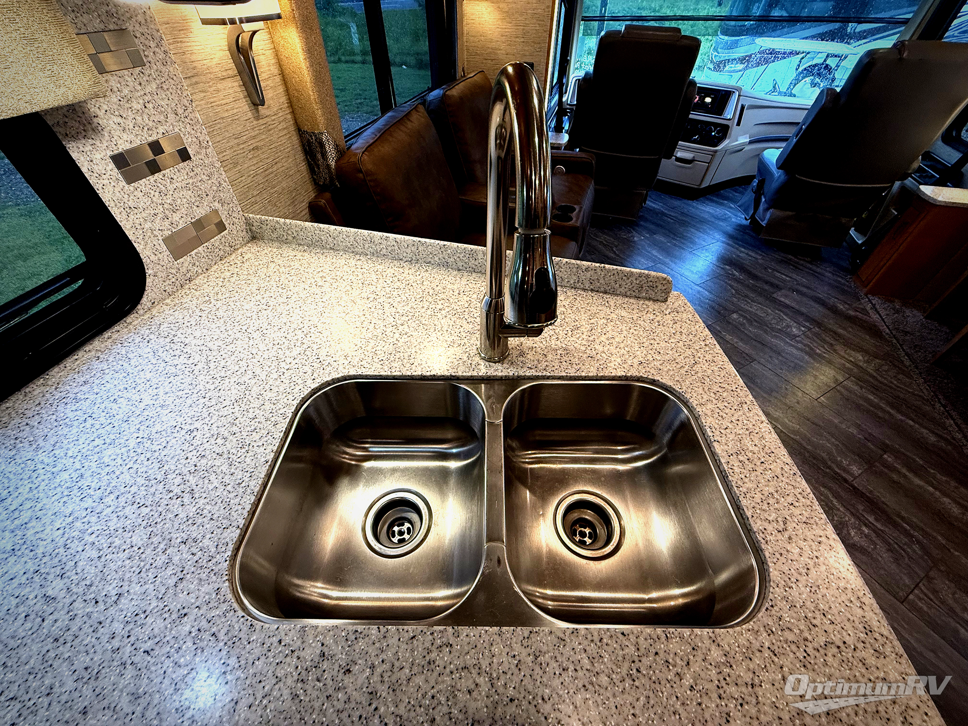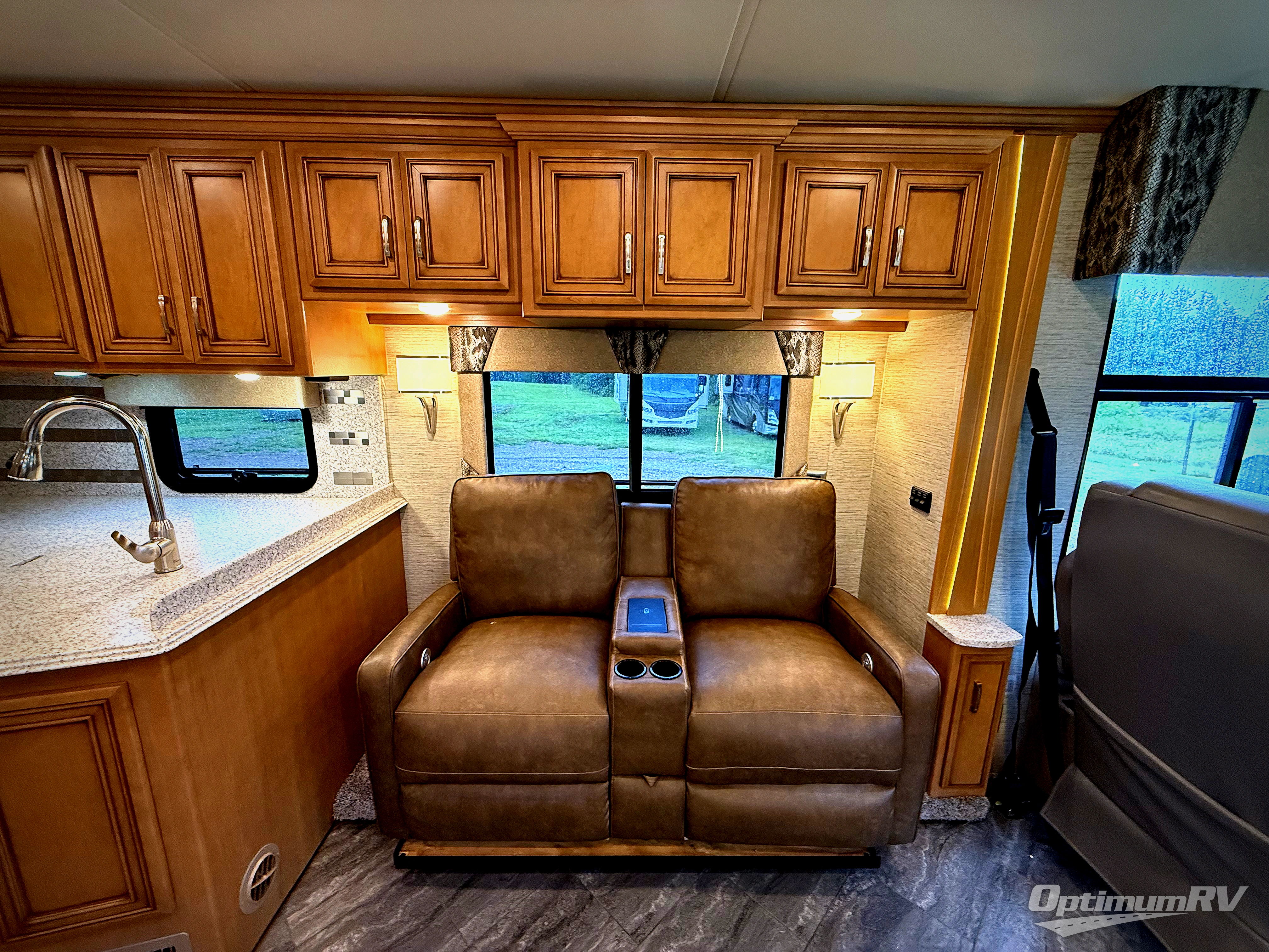 Stepping inside this Ventana 3436 class A diesel motor home by Newmar, you will be wowed by the space and beauty. You will immediately notice two of the three slide outs. The full wall slide out along the roadside features a 74" hide-a-bed sofa as well as all of the kitchen amenities needed to create your favorite meals. You will enjoy the large pantry for your canned/dry goods, plus throughout this model there is plenty of storage with all of the overhead cabinets, large wardrobe, and dresser!
