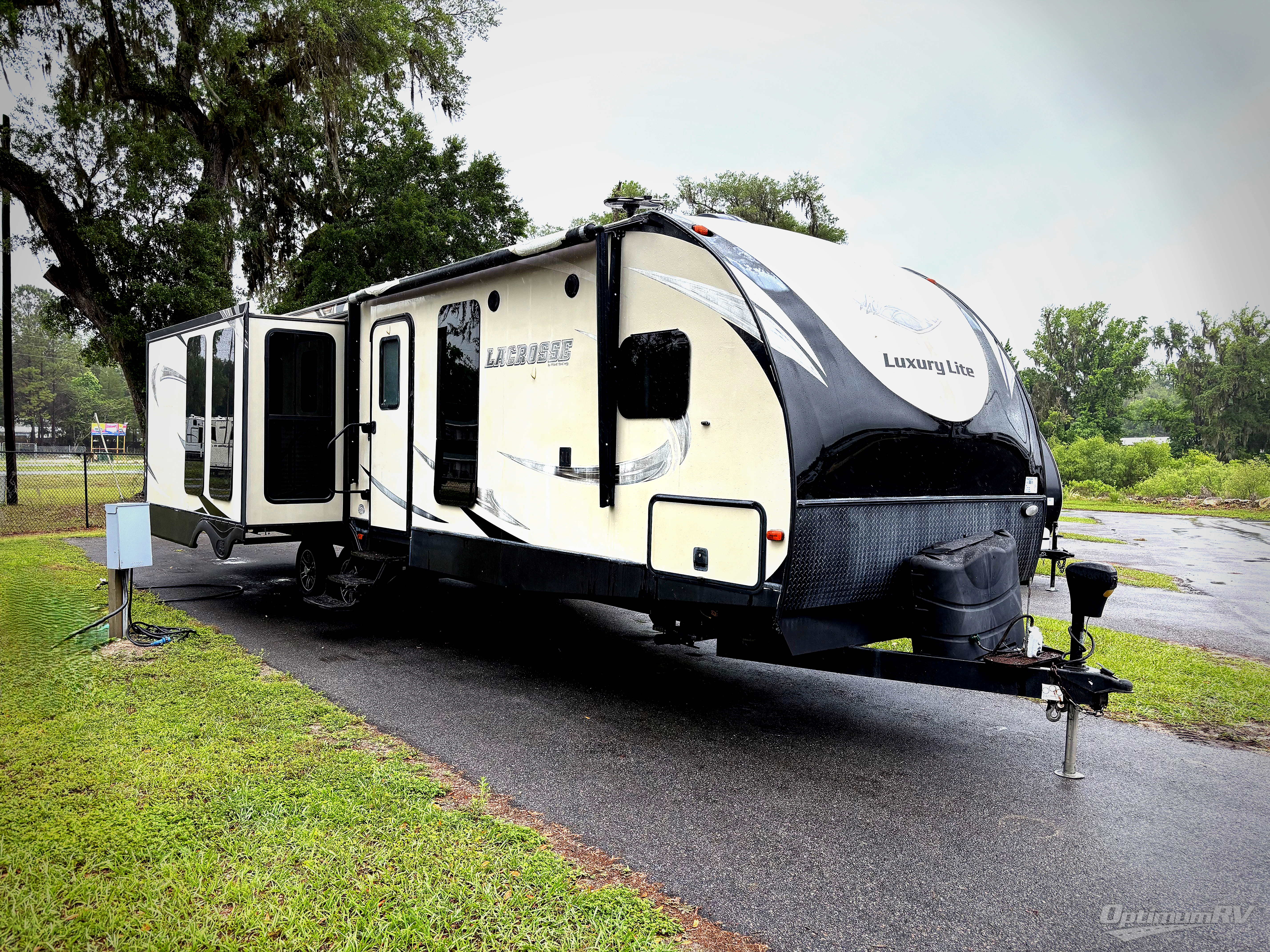 Wherever your camping adventures lead you, you will want a luxury LaCrosse travel trailer. Throughout each model you will find attention to detail from the solid hardwood cabinet doors to the single bowl stainless steel sink and residential J-spout kitchen faucet. You will find upgraded residential carpet with a pad, plus in the living room there is an oversized MAX slide out which offers more living space. Along the exterior there is an ETERNABOND solid construction which includes an enclosed heated underbelly plus enclosed heated holding tanks and more. The mandatory Advantage Package includes the following - frameless windows, a Furrion residential cooktop, solid surface countertops, a large stainless steel refrigerator, a fireplace, and so much more!