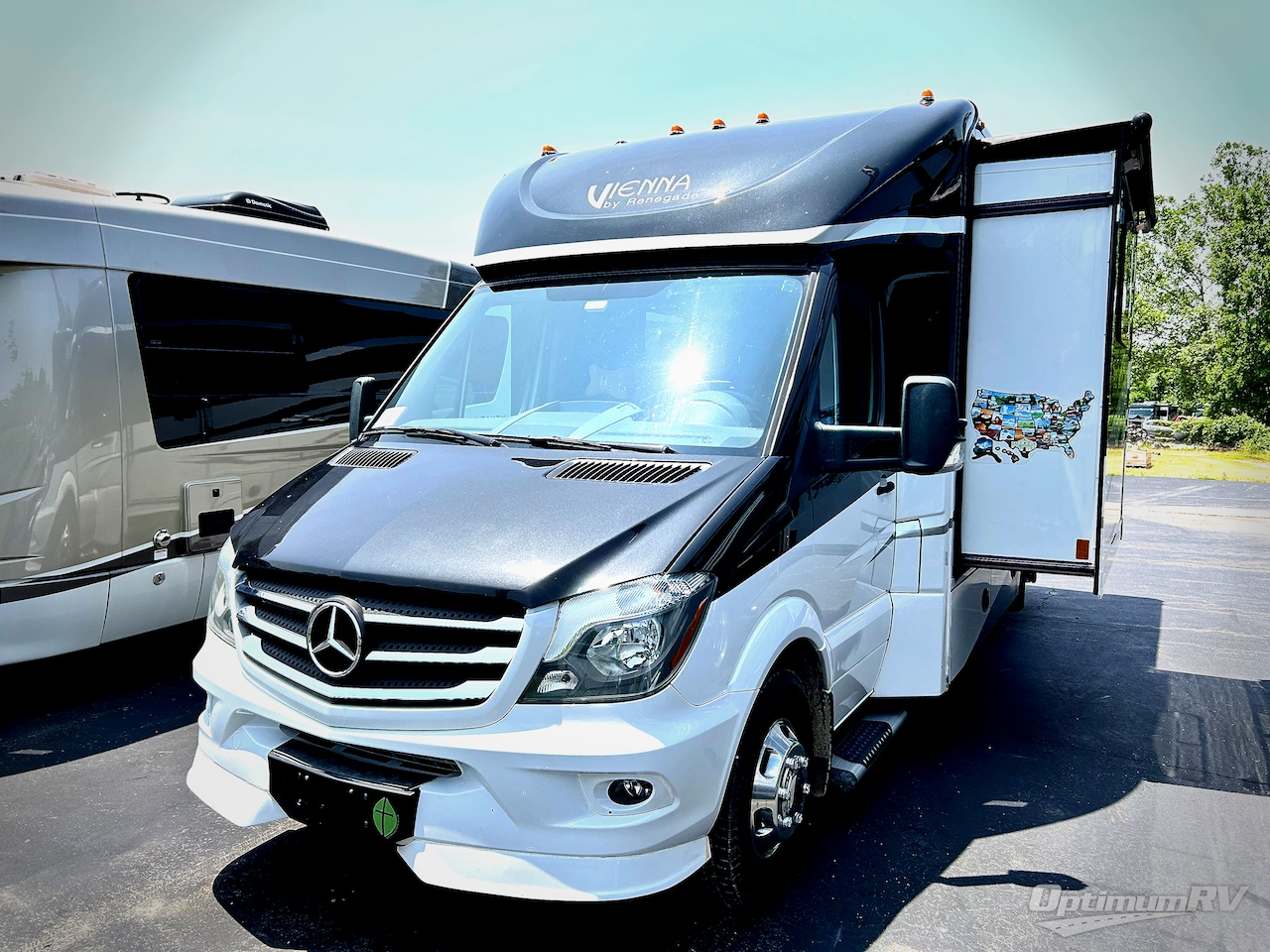 Take the Renegade Vienna on your very next road trip for a feature-packed experience like none other. The Vienna runs on the power of a Mercedes-Benz diesel engine that sits on top of a 3500 Sprinter chassis with a five-speed automatic transmission and adaptive ESP technology. Also included is a color rear vision camera, aerodynamic fiberglass front and rear caps, and a keyless entry door keypad. In the interior, you will enjoy the LED lighting that illuminates and accentuates the solid hardwood cabinetry, the solid surface countertops, and the satin nickel highrise kitchen faucet with pull-out sprayer, and you will love the complete kitchen and bathroom for their stylish decor and upscale amenities, like the hardwood vanity, shower skylight, and satin nickel bath fixtures.