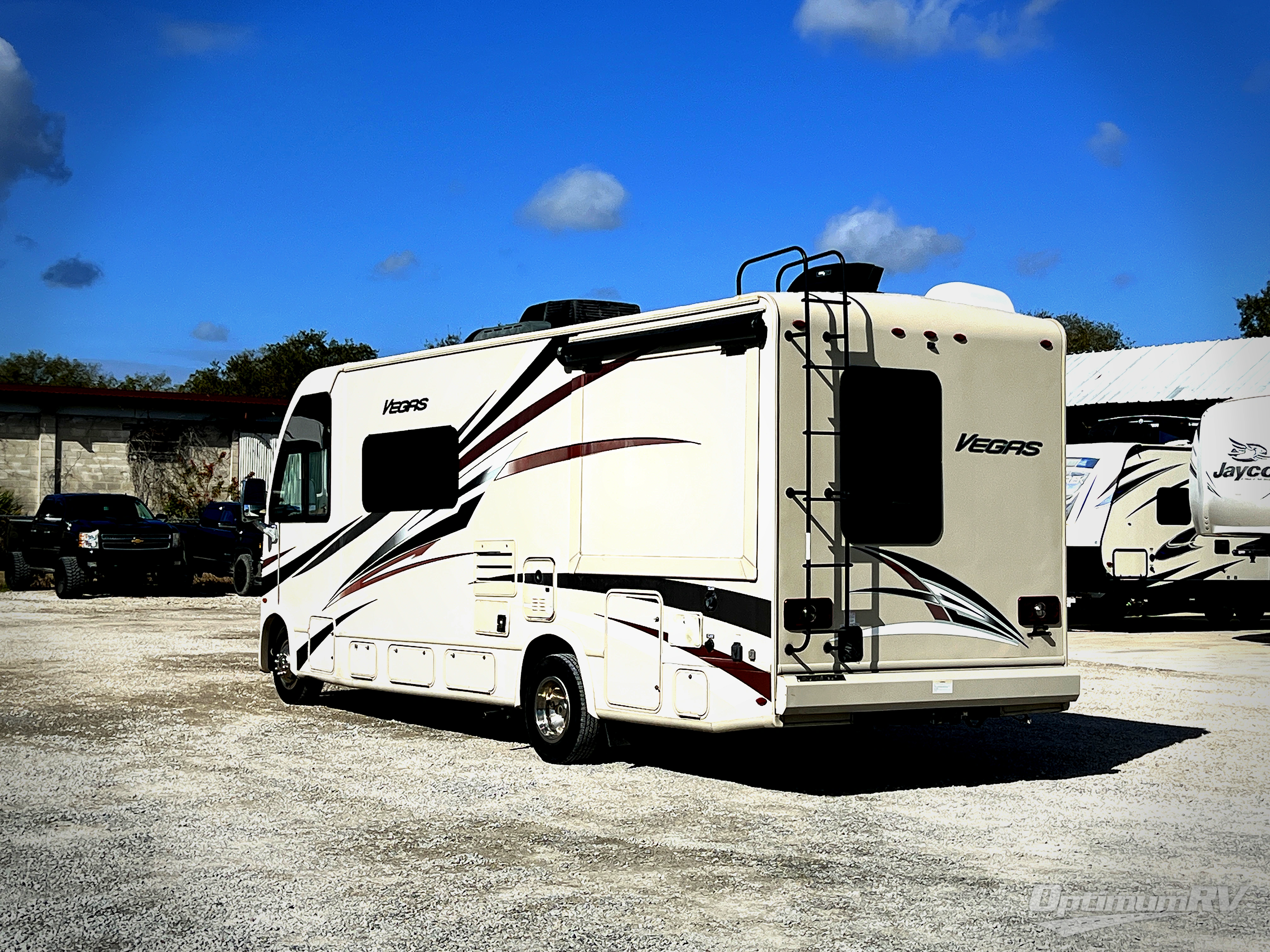 This Thor Motor Coach Vegas RUV model 25.3 class A gas motorhome features a rear bedroom with a flip-up queen bed slide out, a rear corner bath, plus all of the amenities you need to comfortably spend time on the go.