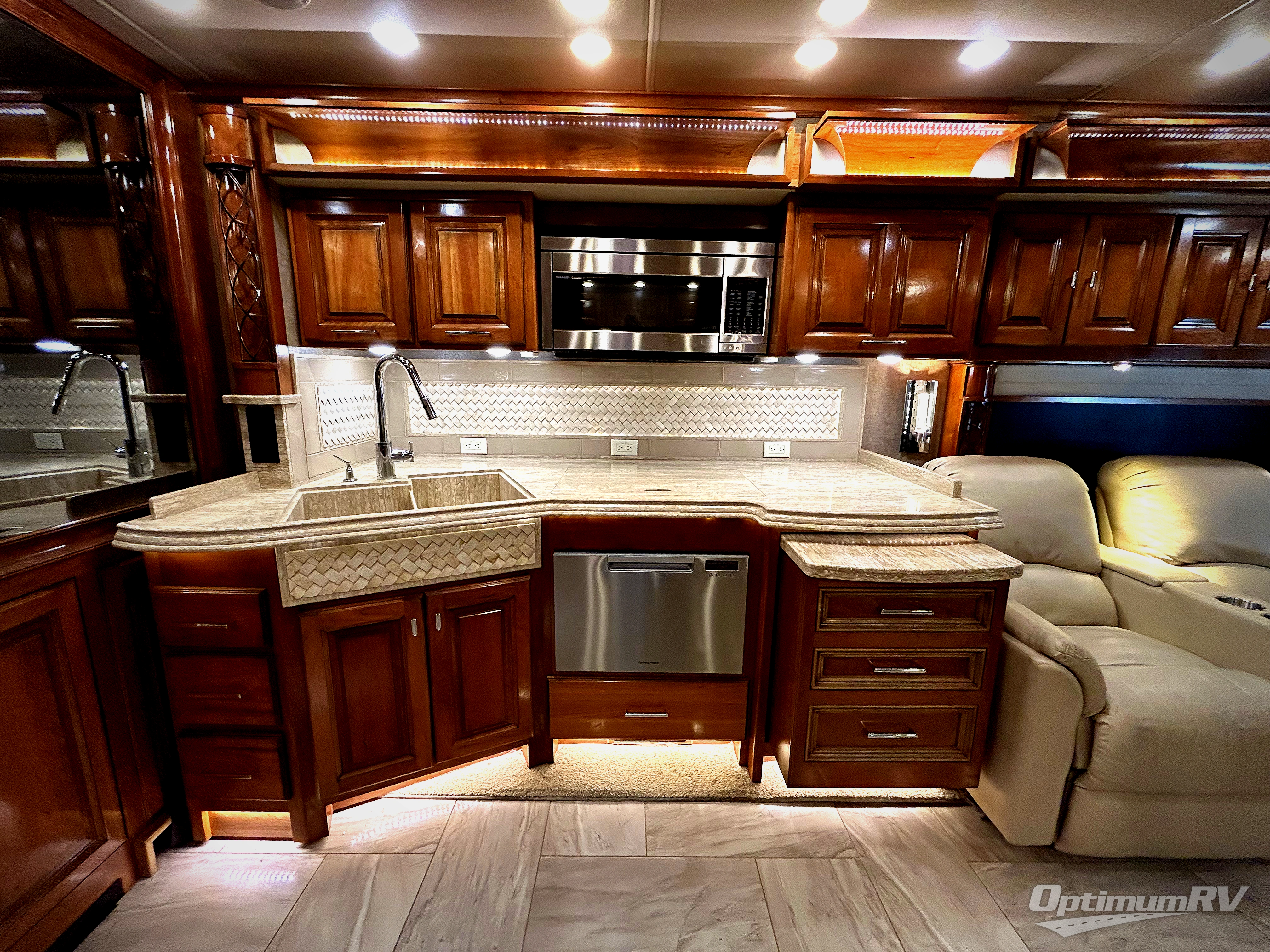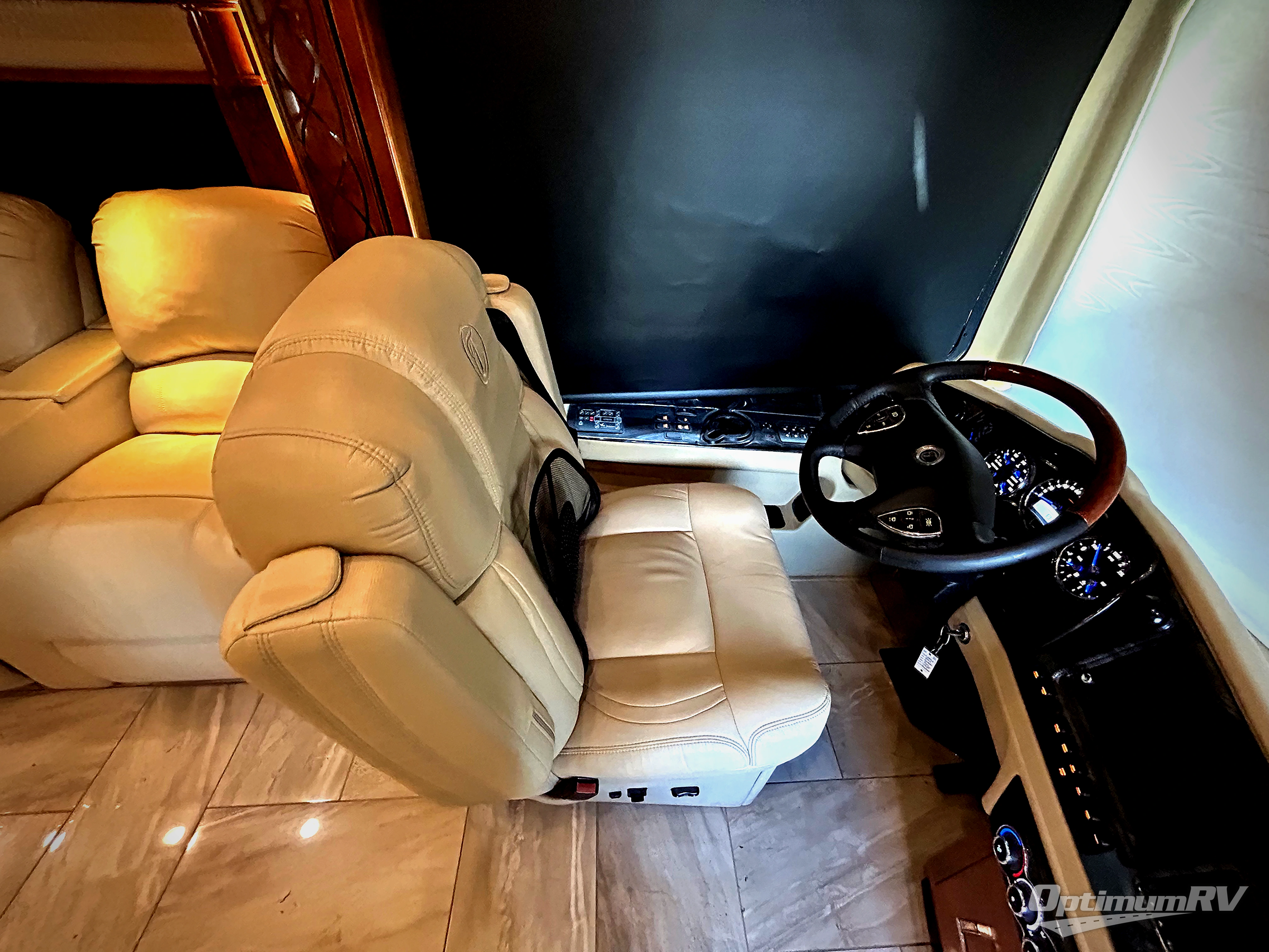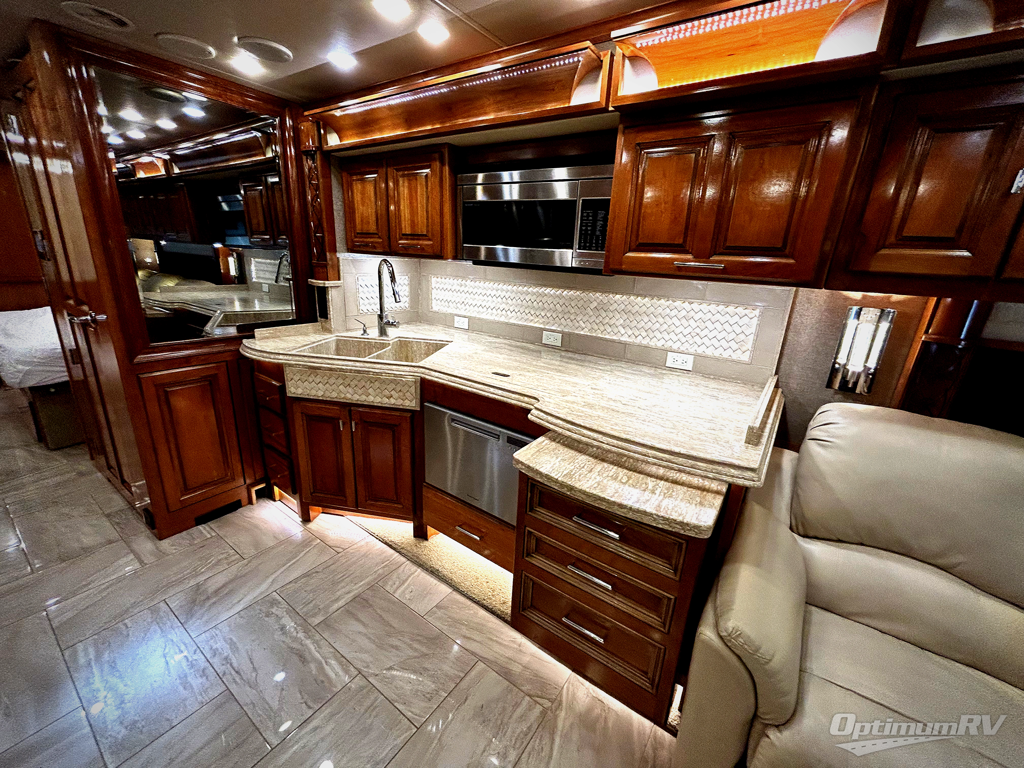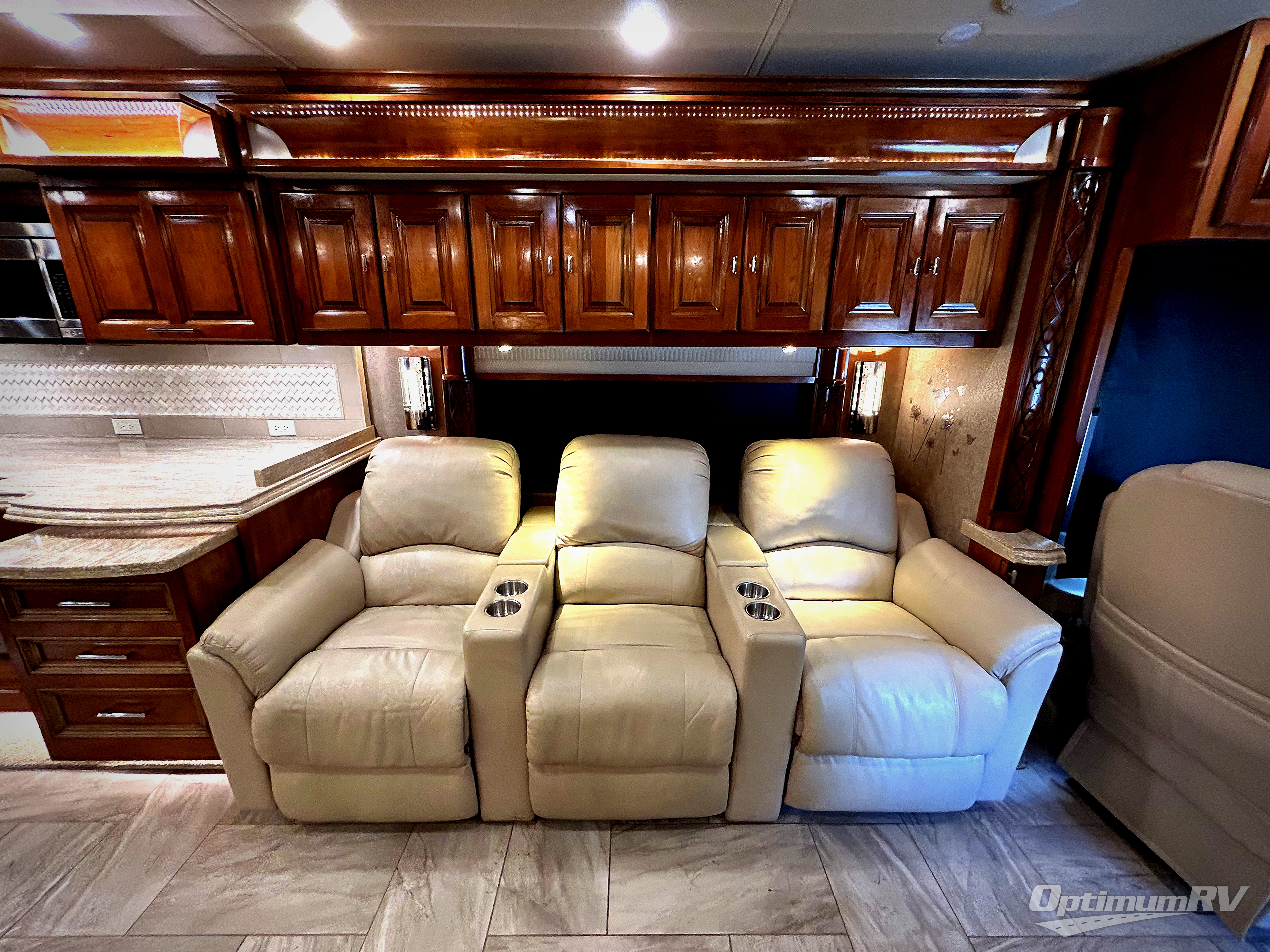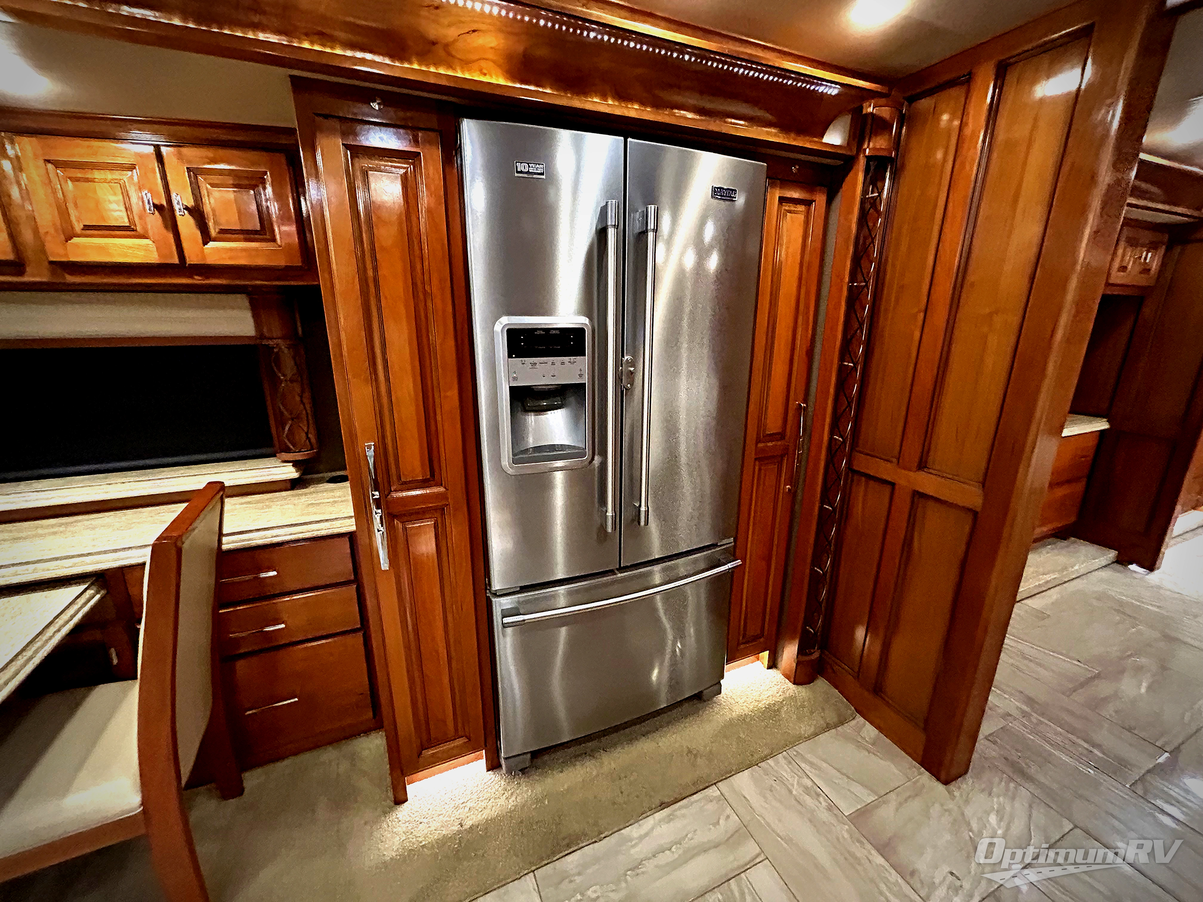 This Tiffin Allegro Bus class A diesel coach model 45 OPP allows you to enjoy your life away from home with the comforts of home. Starting with the 3 interior TVs, the Ultra Leather air coil sofa, and the Ultra Leather DE Sofa with TV cabinet, you can relax, watch the big game, or visit with family and friends just like at home. However, if you need to get some work done the dinette is also a work station with two chairs. The stainless steel residential refrigerator and two pantries allow you plenty of space to take the food items you need to prepare and serve your favorite meals on the polished solid surface countertops. You also have a large full bath with dual sinks including a closet for your wardrobe needs, and a half bath. There is even a wall safe in the bedroom as an added security measure, an exterior TV, plus more! This model is also available with a Freightliner chassis.