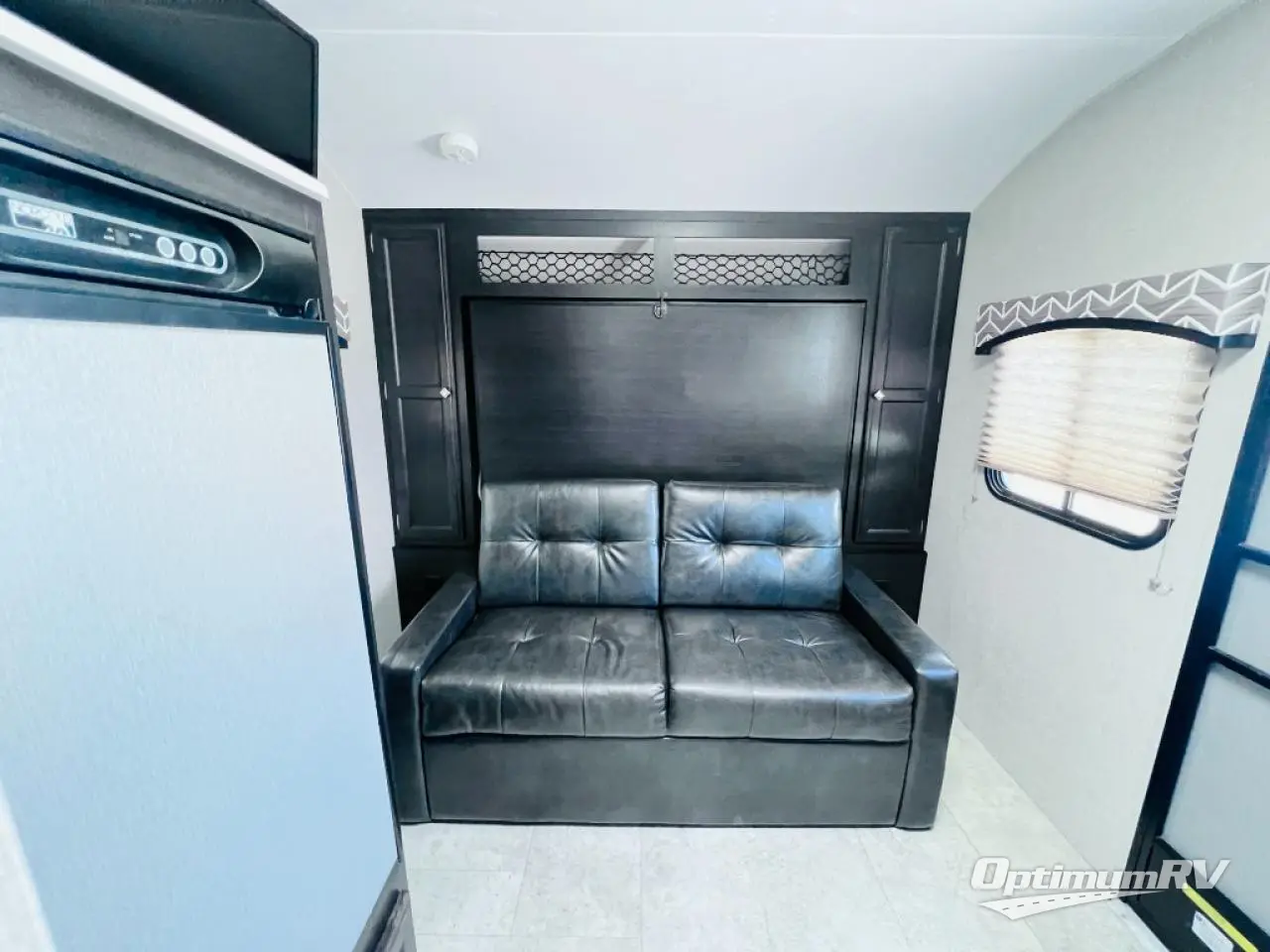 This Sonic Lite is the ideal travel trailer for a family of four for several reasons. Just imagine the kids choosing their favorite bunk, while you relax on the sofa after setting up. You can also dine at the sofa with a free standing table including two fold away chairs for the kids. At night, it's an easy set up to make the Murphy bed for yourself. And you don't have to worry about your bedding every morning, just push the bed back up into its space. The cook can make meals in the full kitchen which also includes a convection microwave. You will find storage inside for your clothing and things, and outside for your larger items either through the Pack-N-Play door in the rear, or pass-through compartment up front. Load up today!