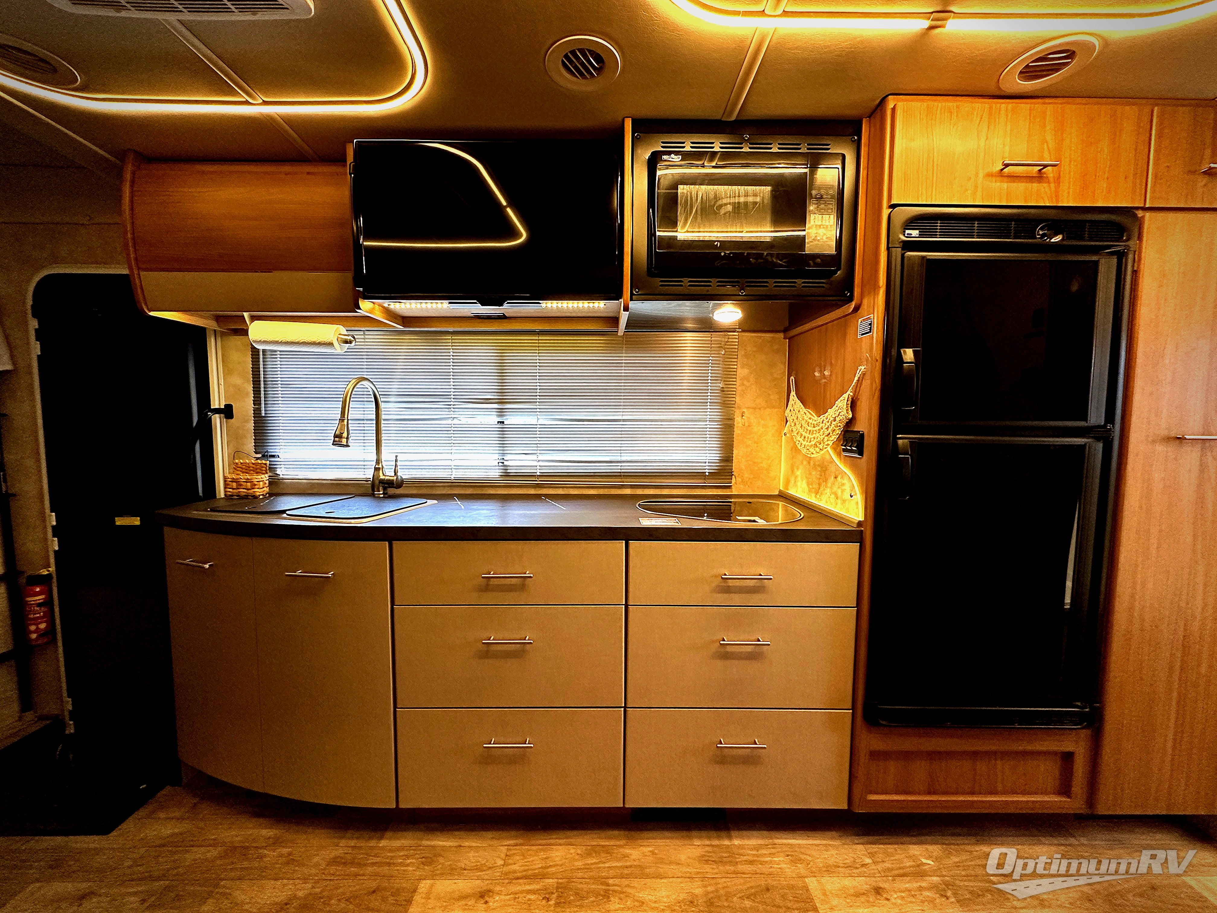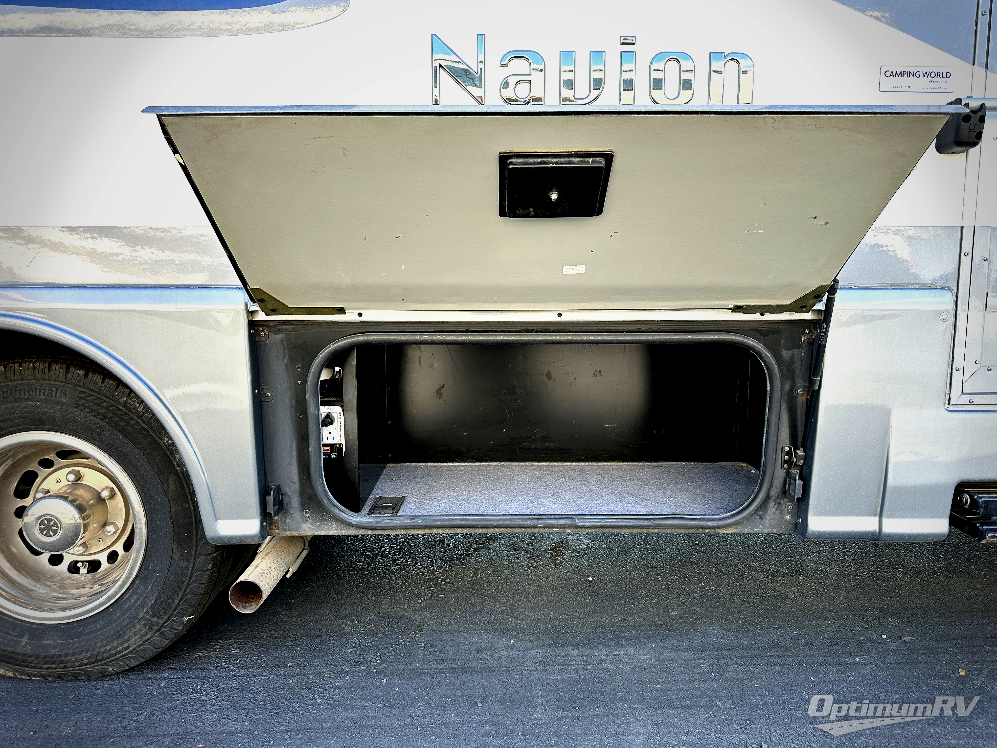 Hit the road knowing that you have all that you need at your fingertips in this Winnebago Navion Class C diesel motorhome. Creating meals and snacks will be easy in the kitchen because of the two-burner range and convection microwave oven, and the Norcold double-door refrigerator/freezer will keep all of your perishable items cold and fresh. You will also find a pantry cupboard near the refrigerator for all of your dry and canned goods, and the overhead cabinets keep your daily dishes and kitchen items easily accessible. You will thoroughly enjoy the convenience of having a rear bathroom in this coach, and the Murphy bed will prove to be a huge asset in providing extra sleeping space at night while still keeping the interior free from clutter during the day.