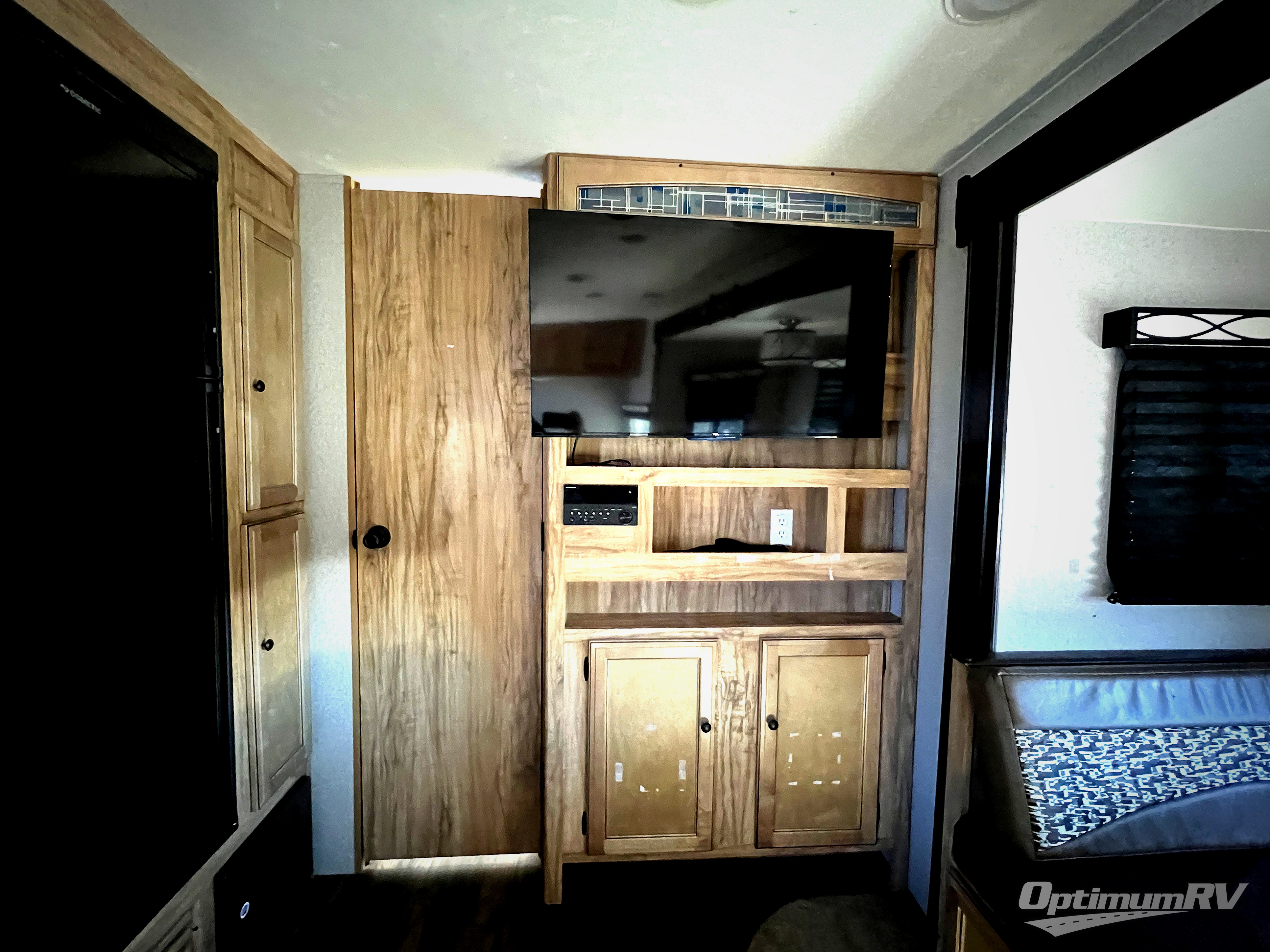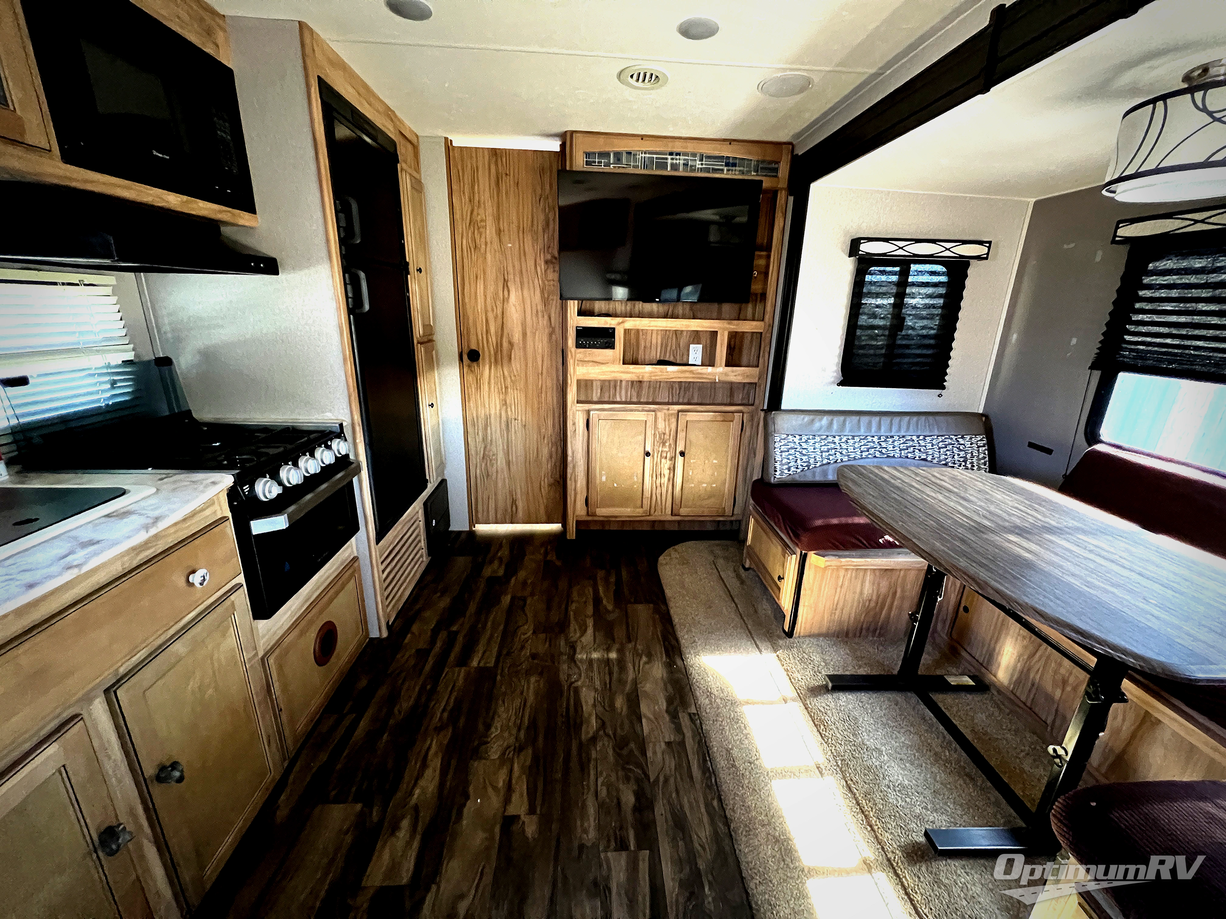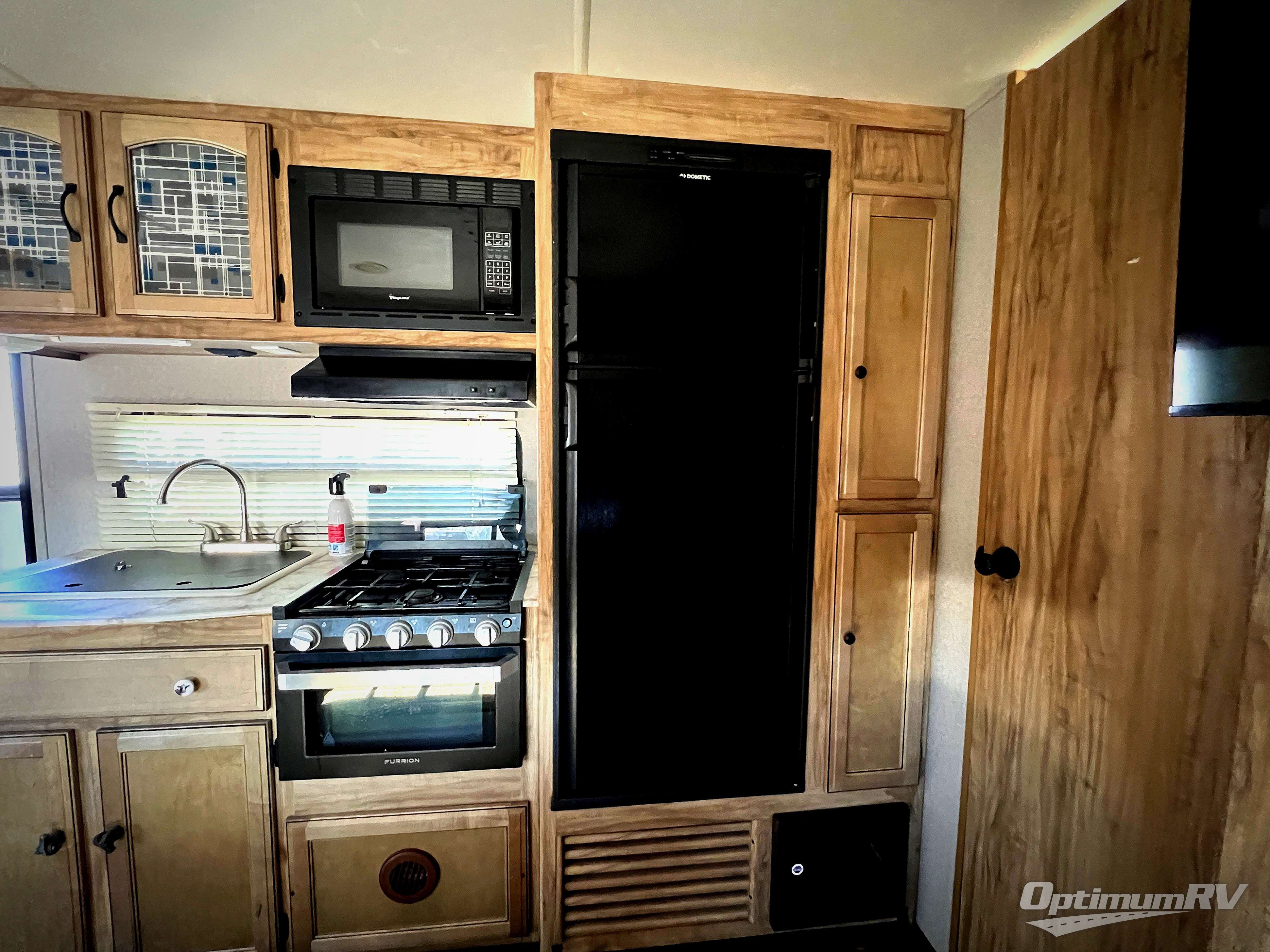 This travel trailer allows you to relax like you do at home with more interior space thanks to the slide out in the living area. You'll appreciate the front private bedroom with a queen bed and wardrobes for your clothes. The kids can make their beds either on the u-shaped dinette or sofa once folded down for the night. This unit features a full rear bath with a radius shower and a linen closet for towels. If you enjoy cooking outdoors, then imagine making dinner for everyone on the camp kitchen!