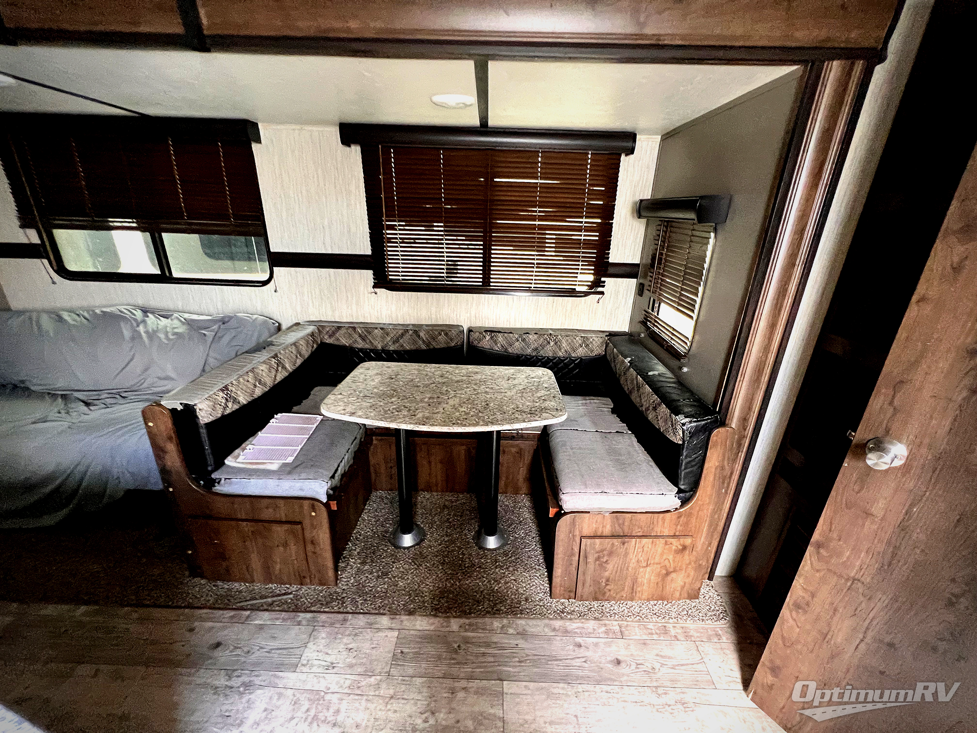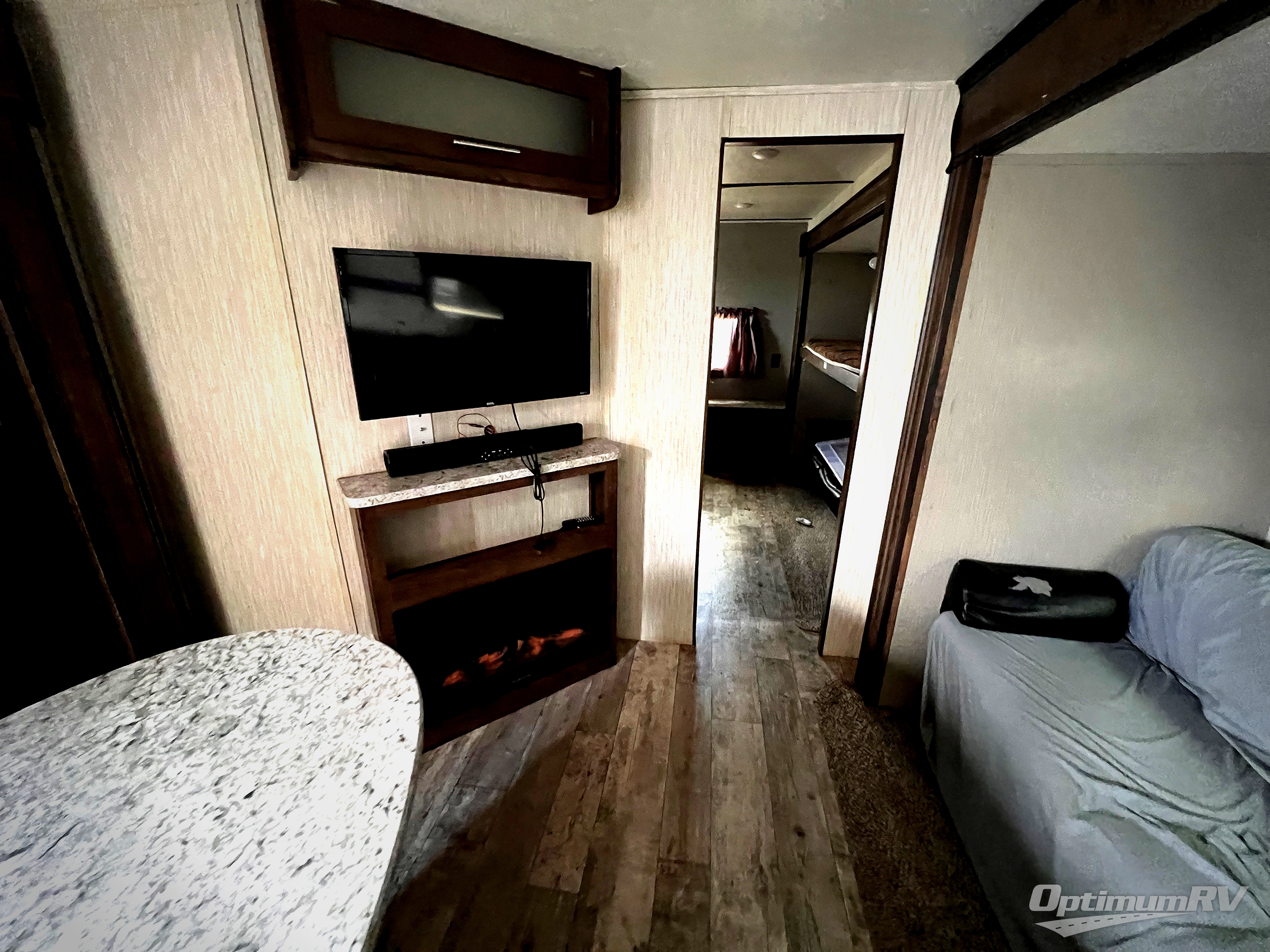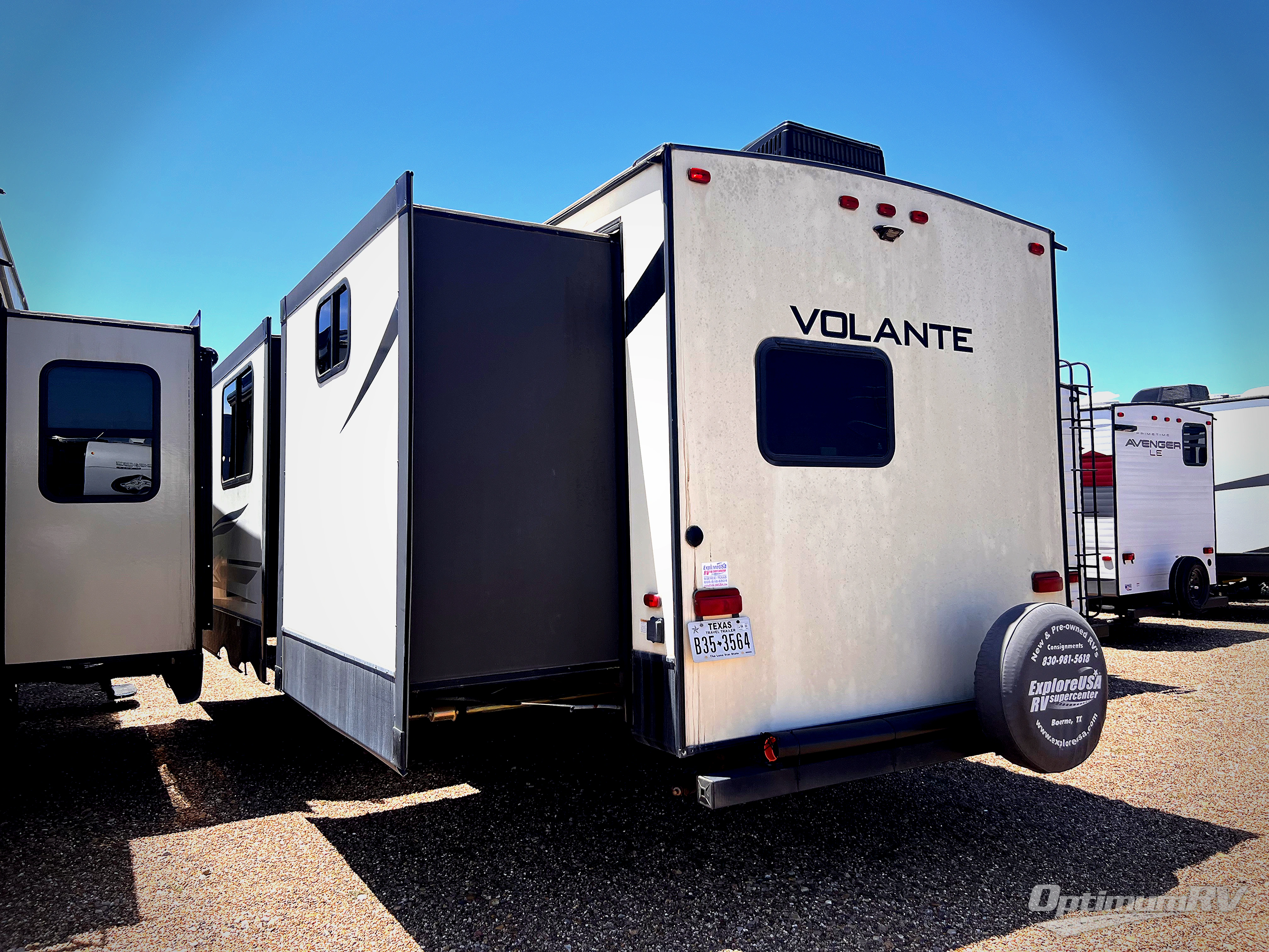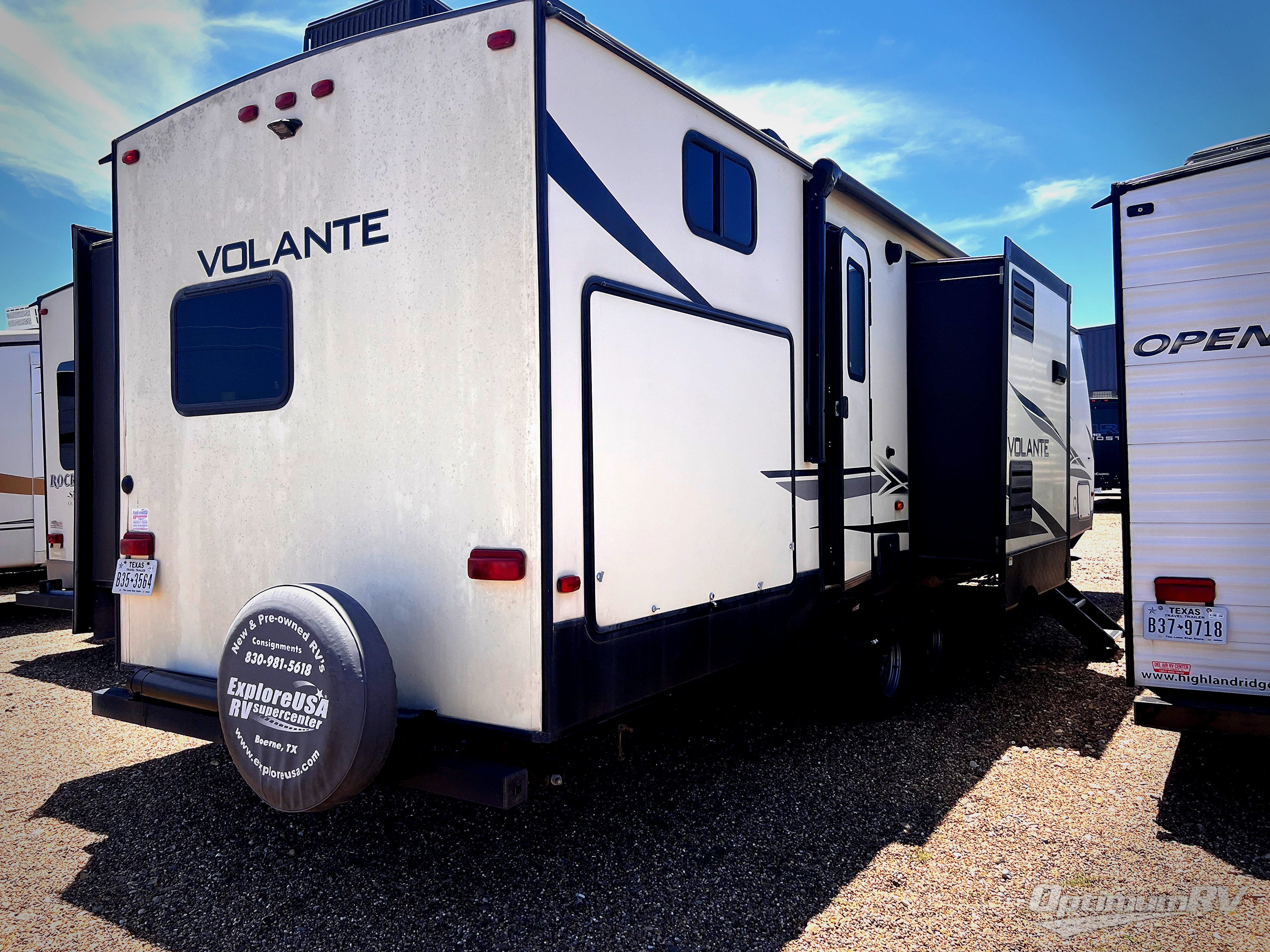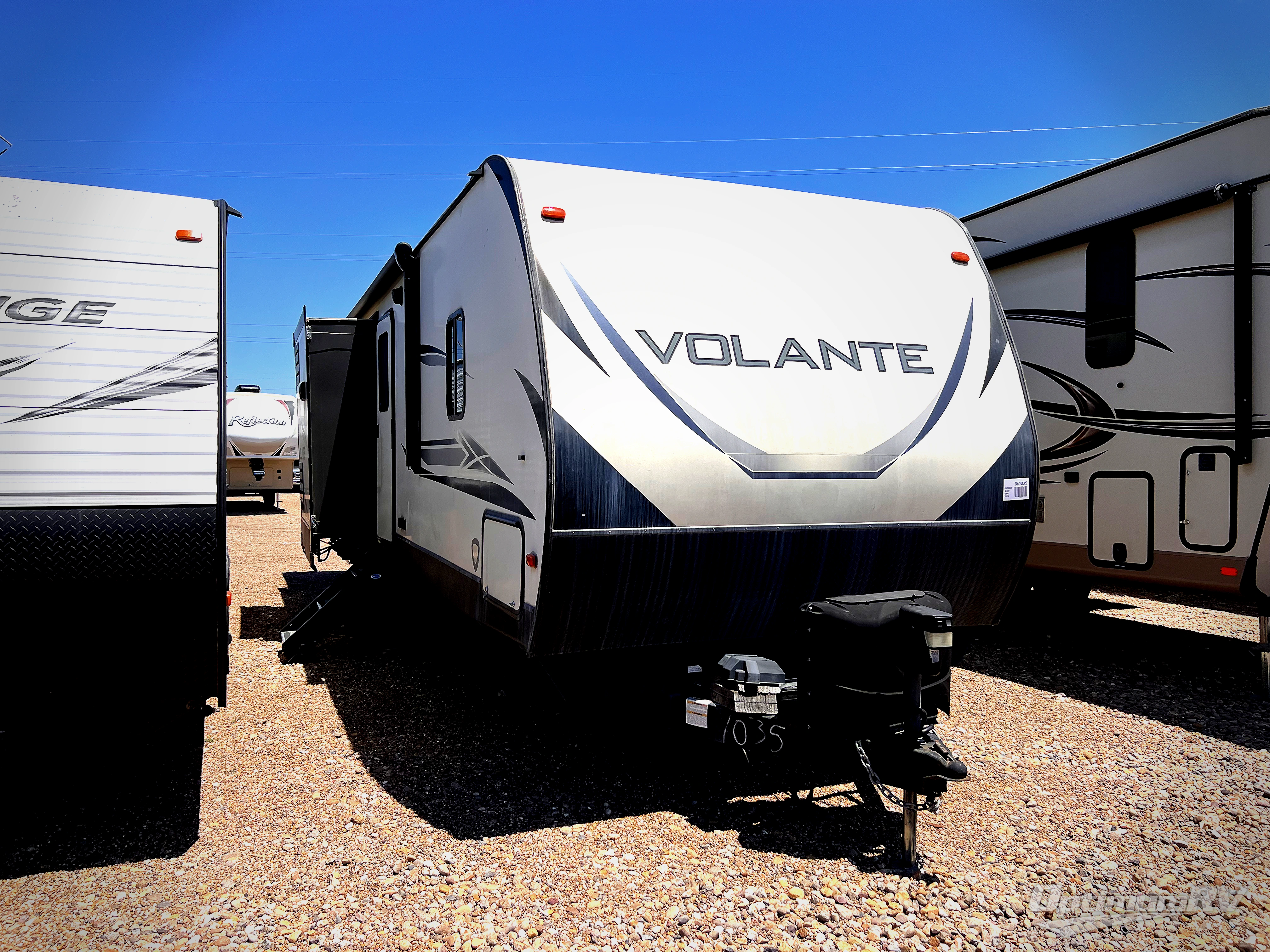 For your next family vacation, choose to go to your favorite campground with your family and this double-slide Volante travel trailer in tow! Your kids will love the rear private bunkhouse and all of the space that it has! Everyone can easily get ready for the day with a bath and a half, and because the half bathroom has its own exterior entrance, you will always be able to quickly enter the bathroom while you are playing outside. The U-shaped dinette and 64" sofa in the central living area are the perfect places to sit down and visit with your family while you enjoy dessert or play a board game together.