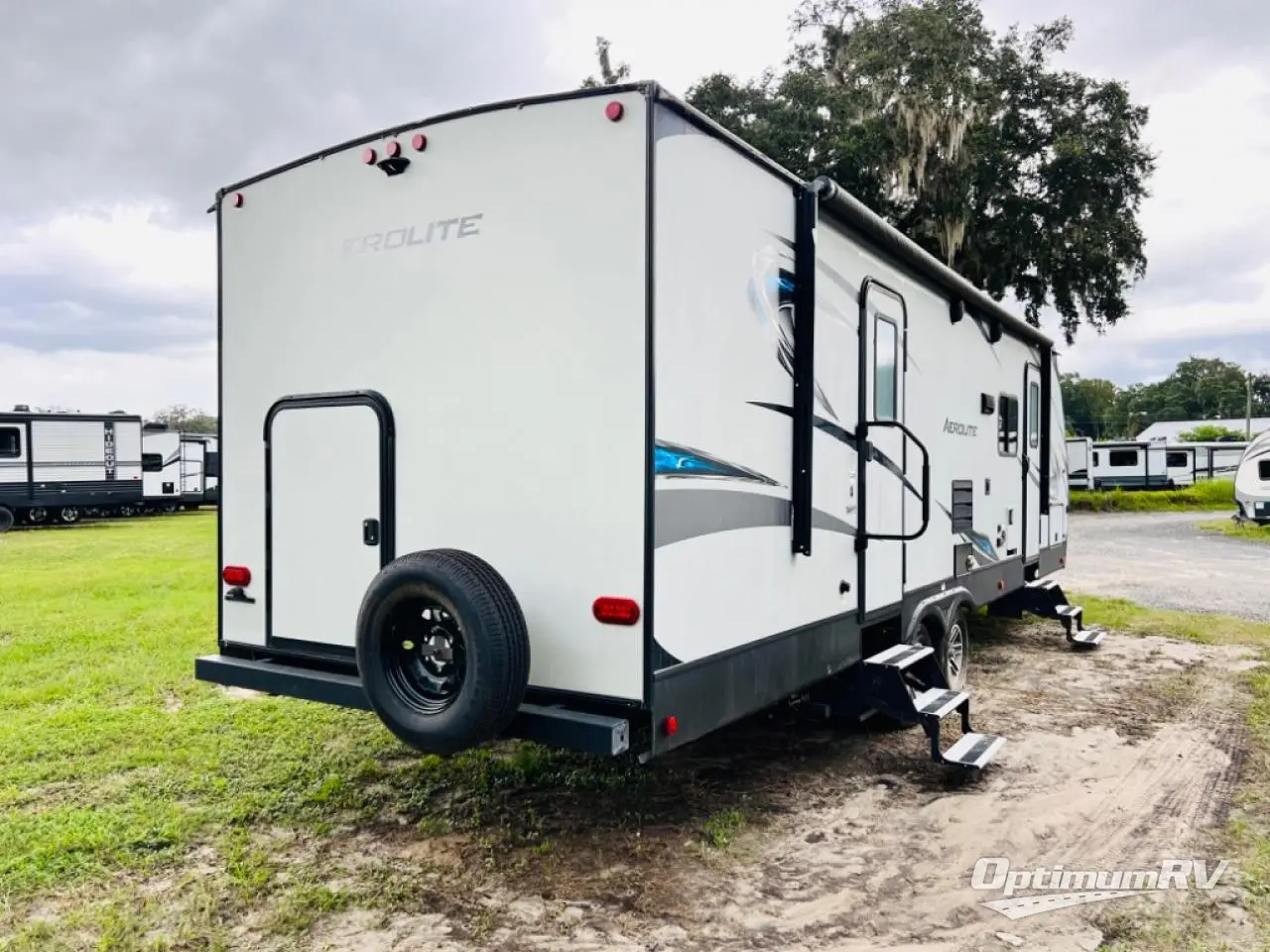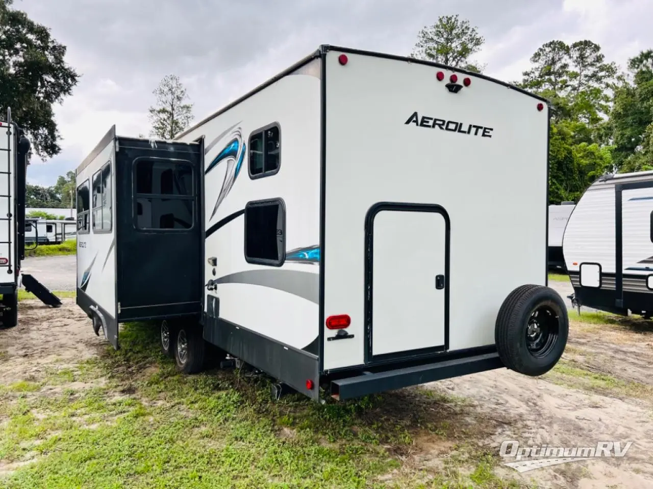 If you are seeking a unit that has sleeping space for nine and two entry doors, then you have found your perfect match with this Aerolite travel trailer. This model provides both of these features, plus so much more! The rear Happi Jac power bunk beds are next to the main entry door and the full bathroom for convenient access for the kids, and the flexibility of cleaning off inside with the tub/shower or outdoors with the exterior shower is a "must have" feature for any active family. The full kitchen offers you plenty of space and amenities to cook up delicious meals each day, and the walk-in closet/pantry allows you to stock up on your favorite snacks and goodies before your next trip.