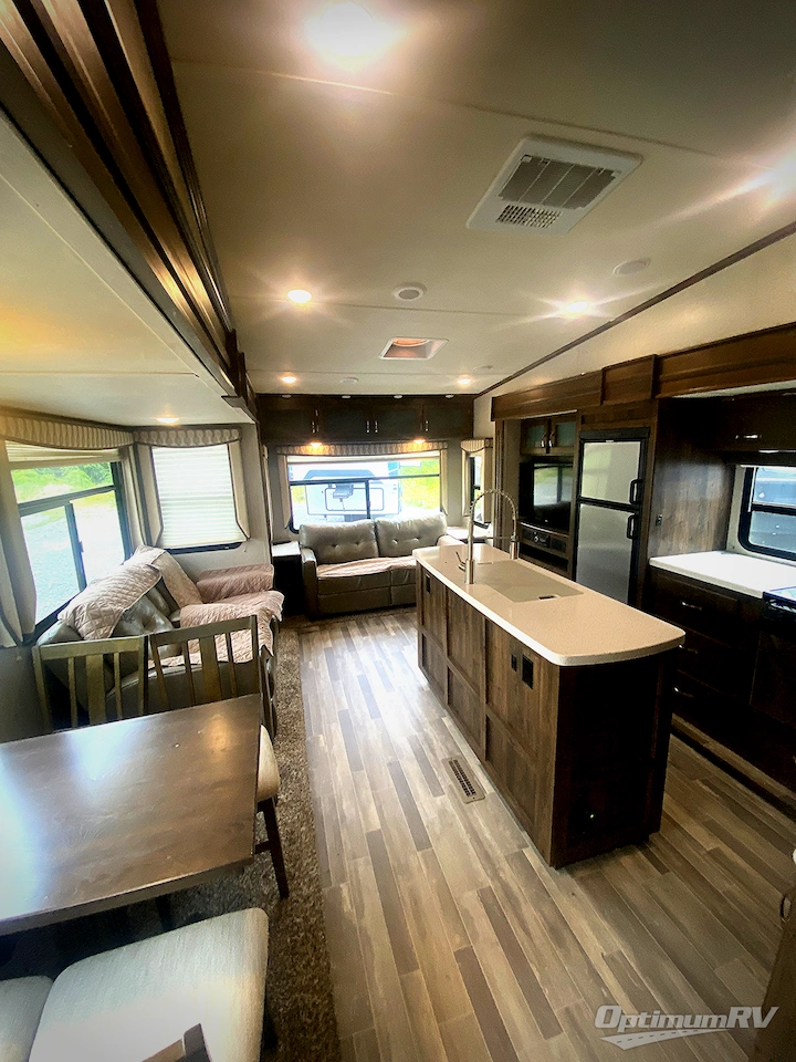 How do four slide outs and a set of bunks bed sound in your next fifth wheel? The centrally located bunkhouse will surely be the kids' favorite room, plus they will have their own wardrobe. You will also find a kitchen island for the cook to prepare and serve meals while visiting with everyone, and the kids can wash the dishes. There are plenty of seating choices including the popular theater seats for two. You can probably imagine all the fun you will have making memories while exploring outdoors, and relaxing inside while playing games or visiting about life. It's time to make your dreams happen, take a look today!