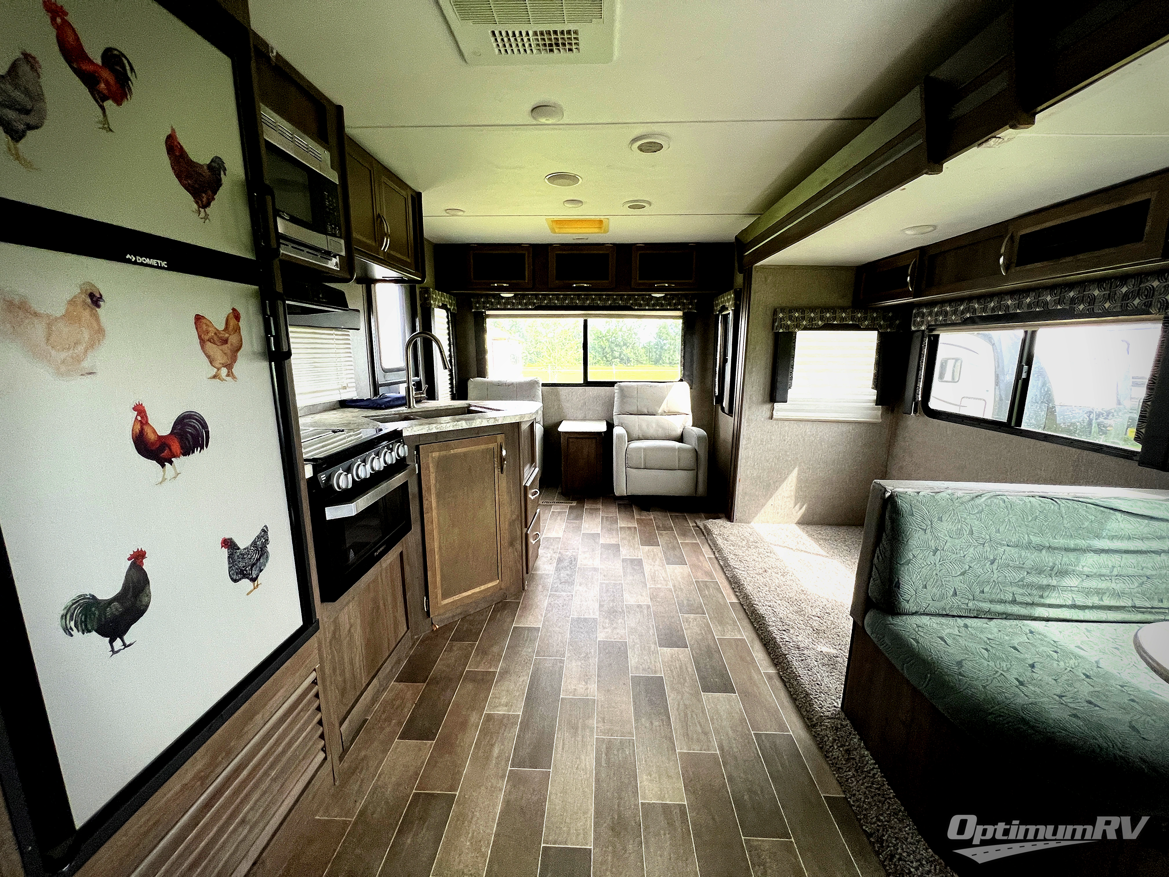 Are looking for your own travel trailer to take to state parks? This unit provides a couple or a family the comforts of home and the ability to travel during any season. You can prepare a meal on the three burner range, and with a double sink, clean-up is a breeze. This model includes two lounge chairs in the rear living area, so after a long day you can relax. There are two entries, allowing you quick access to the main area, or the bedroom and double entry bath. You'll also enjoy a sofa and dinette within the large slide out, and a pantry for all your dry goods.