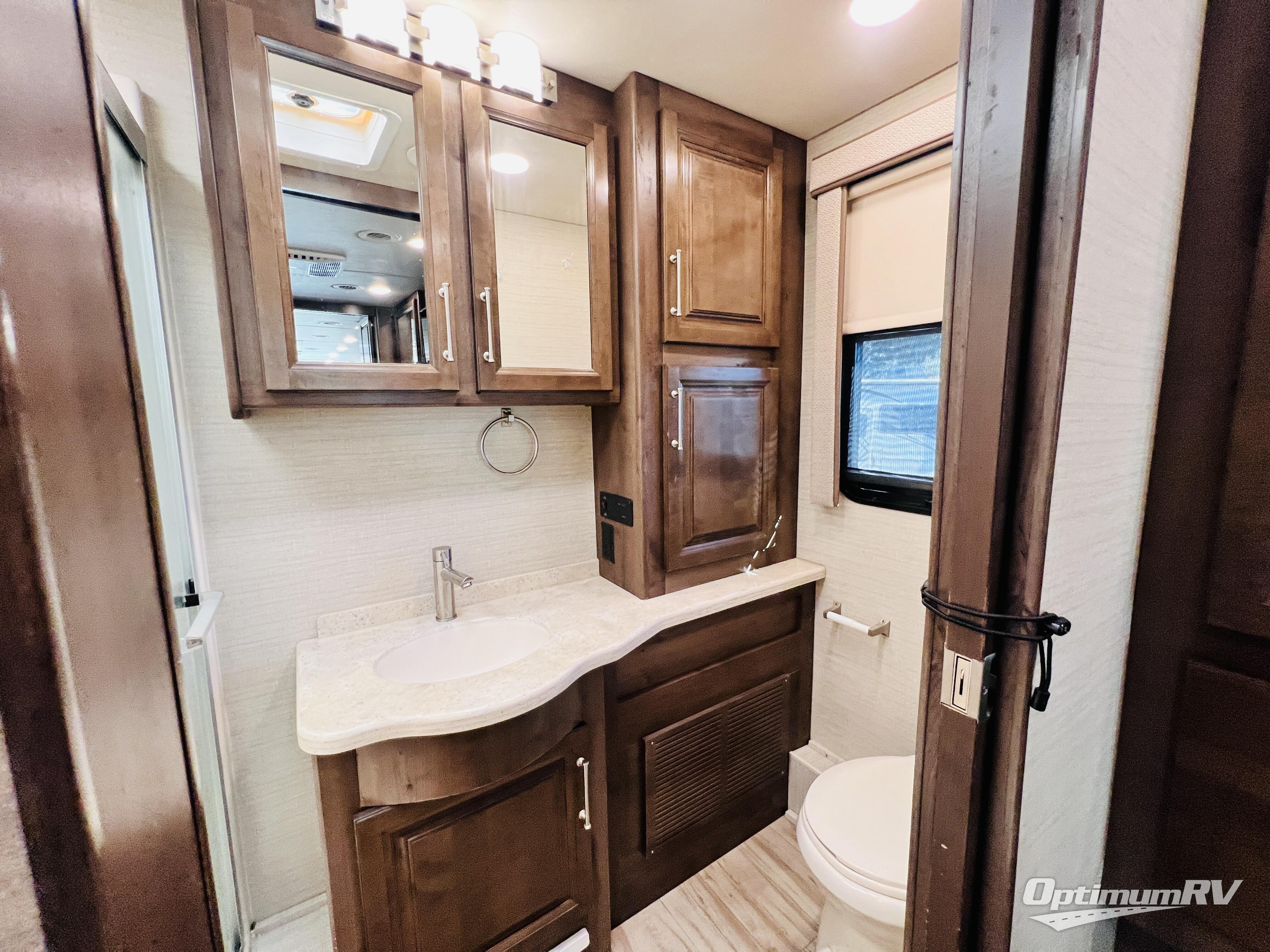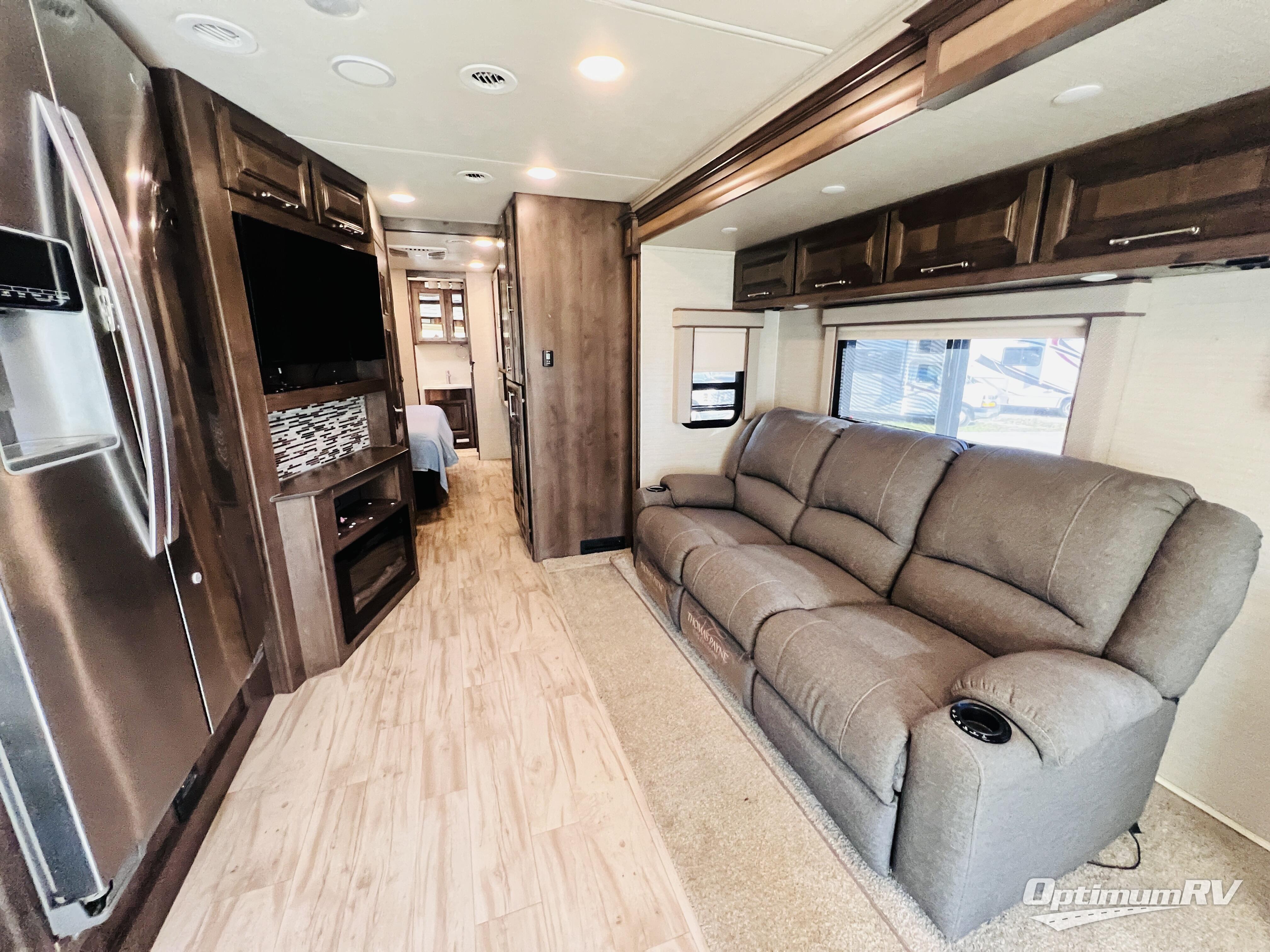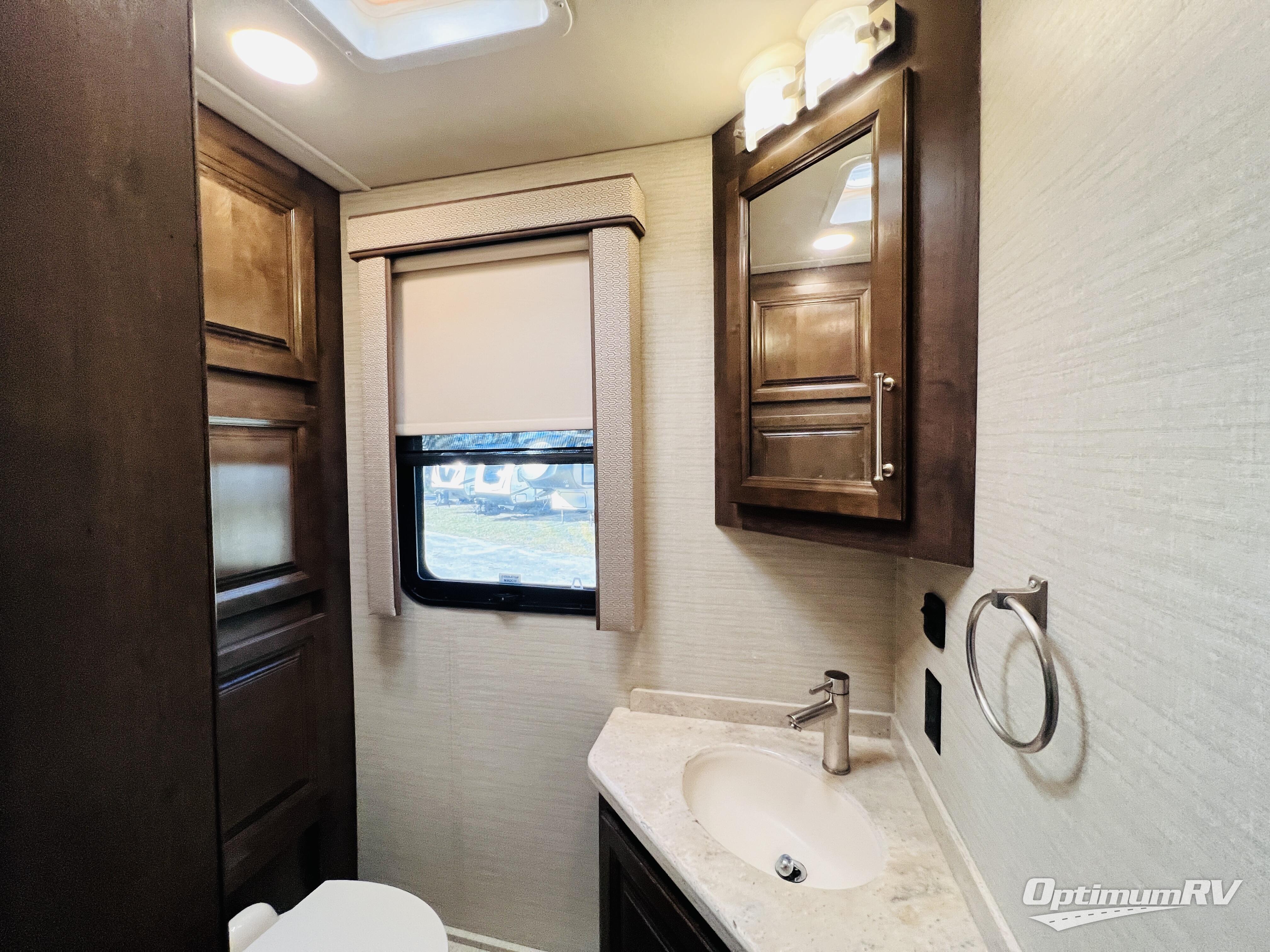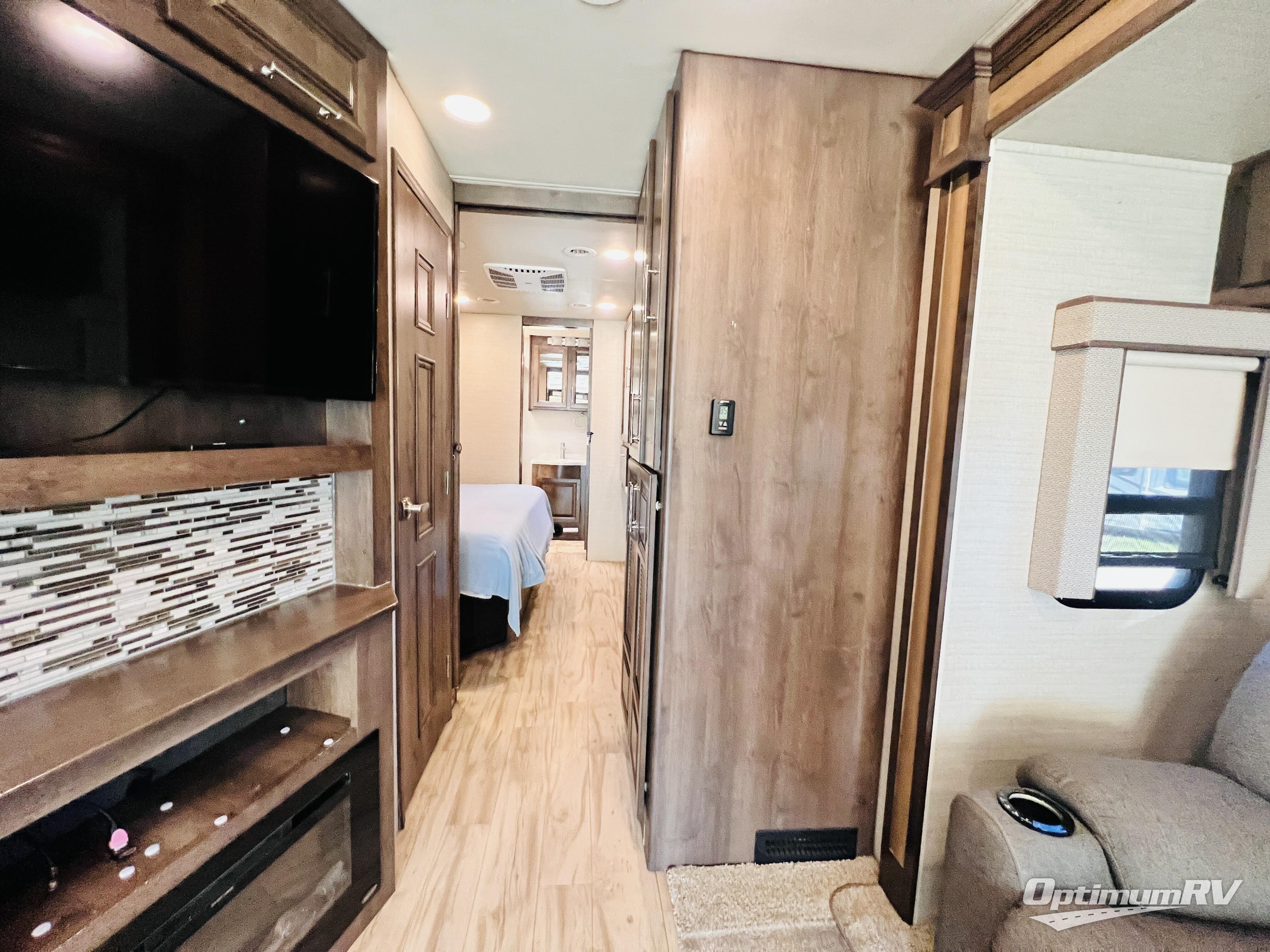 The residential feel of this coach not only promises comforts and conveniences for your entire journey, but the look and feel once you step inside tells you that luxury living is going to be your new way of travel. You are going to enjoy the spacious interior thanks to two nice size slides. Once parked, and the slides are opened up, sink back into the extendable sofa and enjoy a cozy fire in the fireplace as you watch your favorite program on the 39" LED TV provided. All of the residential appliances will make it easy to cook gourmet meals just like home. And, at bedtime, a king bed is waiting to whisk you off to dreamland! The rear bath offers privacy from the main living area up front, and there is also a half bath easily accessible during the day. Outside, you will find tons of storage space with a lockable pass-through compartment that makes packing and storing your outdoor gear easy, and the 17' electric awning with outside entertainment center provides a place to hang out both day and night protected from the elements while enjoying a bit of fresh air. You also have the option of adding a drop-down overhead bunk for added guests that wish to spend the night, plus so much more.