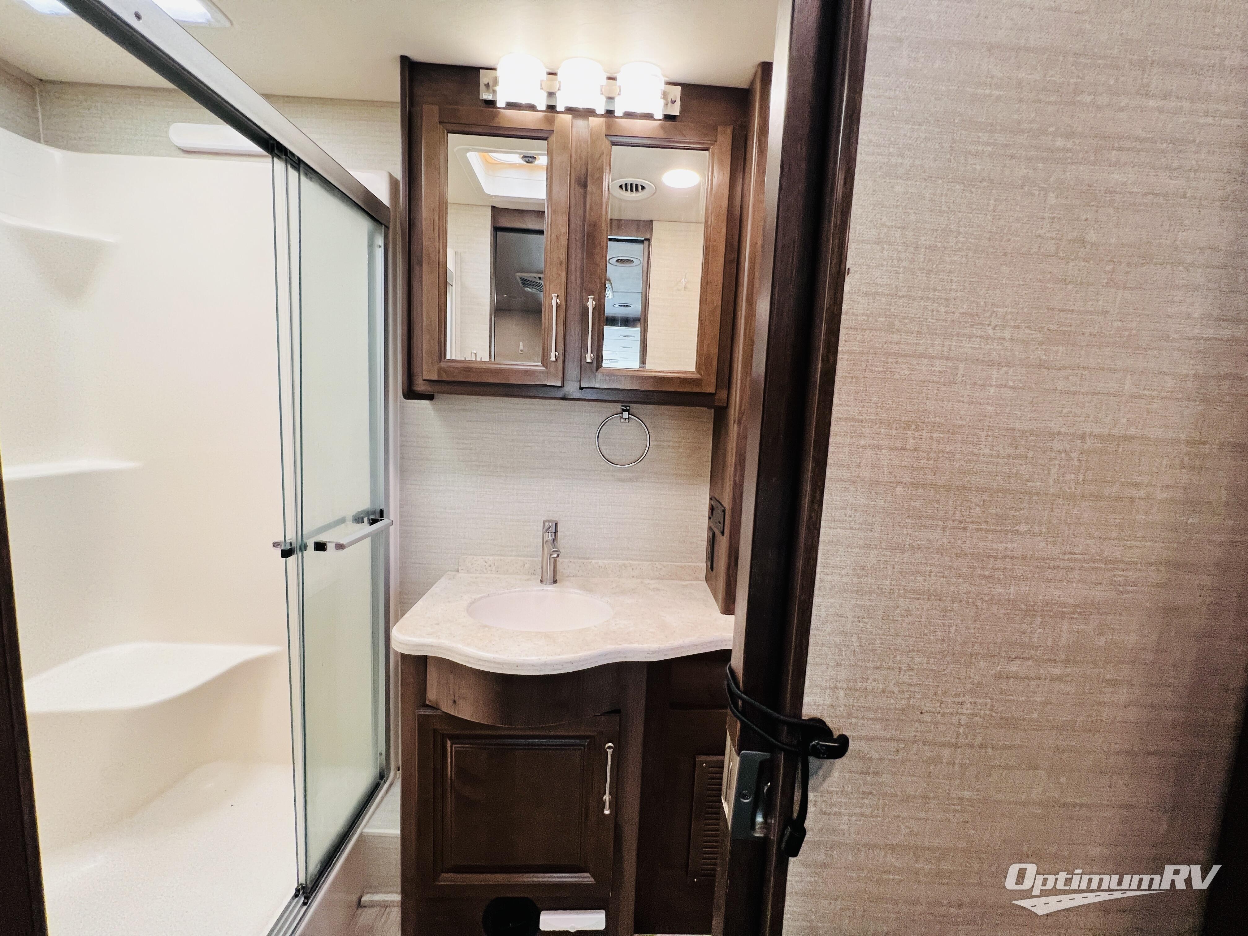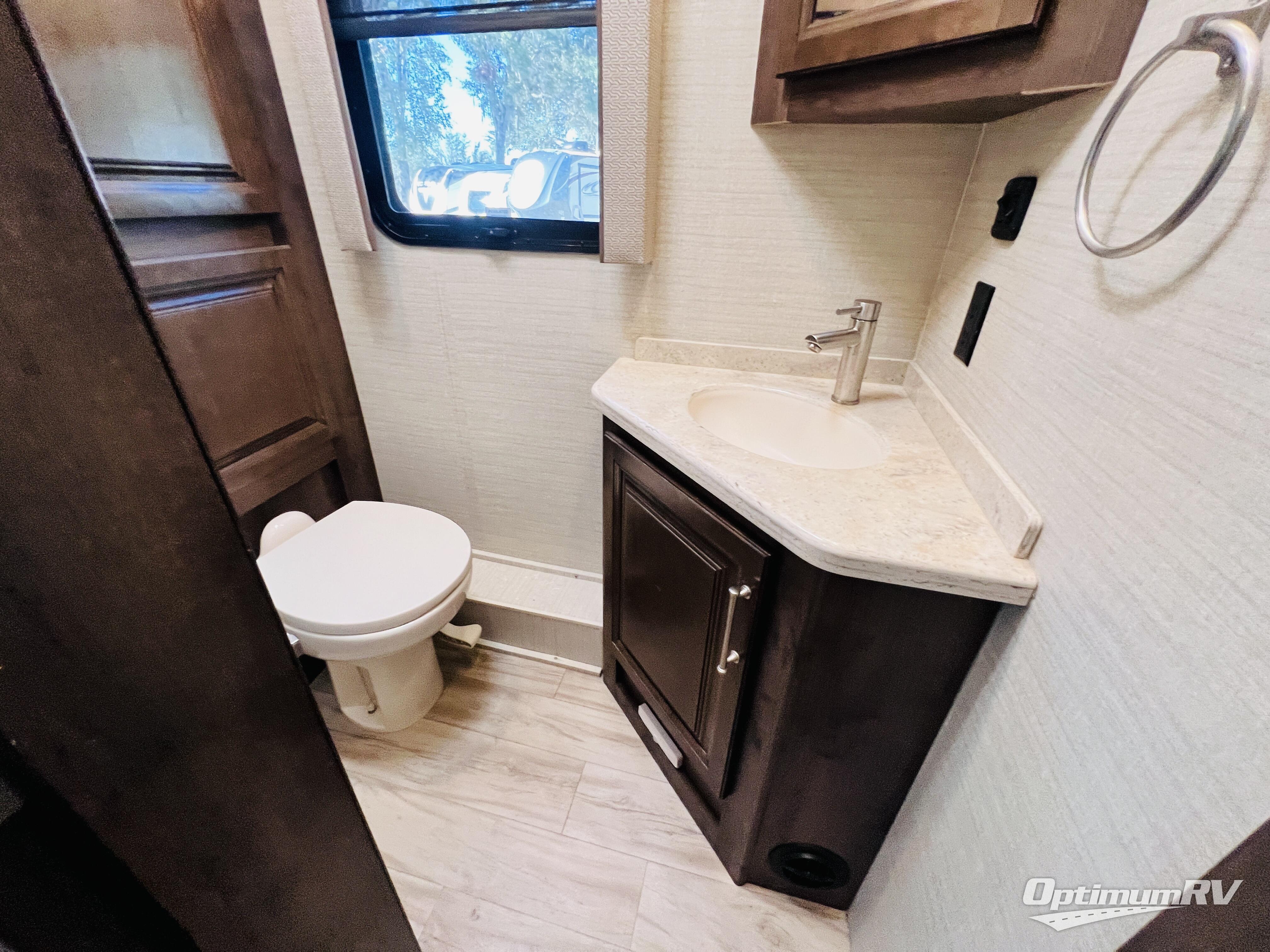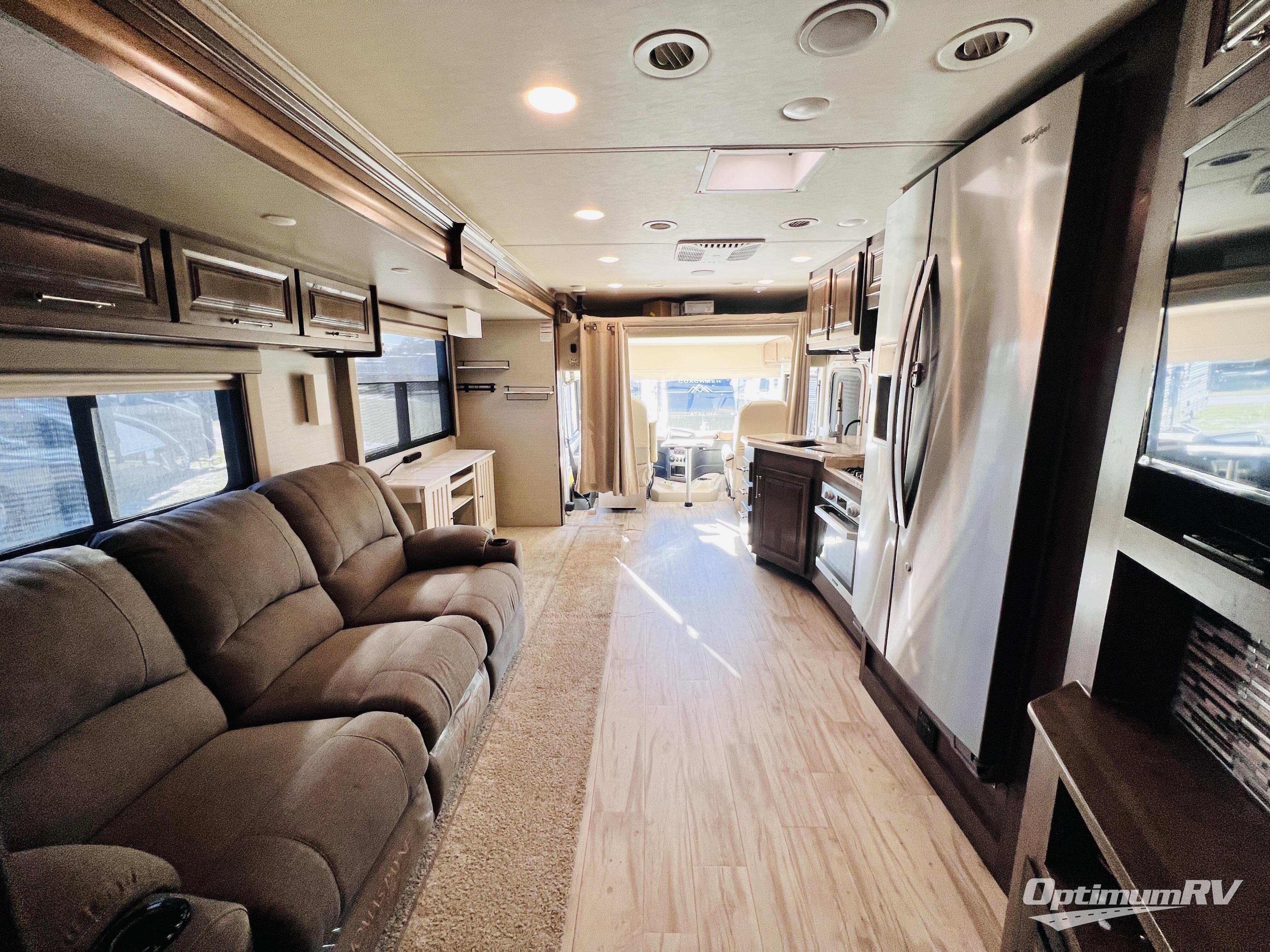 The residential feel of this coach not only promises comforts and conveniences for your entire journey, but the look and feel once you step inside tells you that luxury living is going to be your new way of travel. You are going to enjoy the spacious interior thanks to two nice size slides. Once parked, and the slides are opened up, sink back into the extendable sofa and enjoy a cozy fire in the fireplace as you watch your favorite program on the 39" LED TV provided. All of the residential appliances will make it easy to cook gourmet meals just like home. And, at bedtime, a king bed is waiting to whisk you off to dreamland! The rear bath offers privacy from the main living area up front, and there is also a half bath easily accessible during the day. Outside, you will find tons of storage space with a lockable pass-through compartment that makes packing and storing your outdoor gear easy, and the 17' electric awning with outside entertainment center provides a place to hang out both day and night protected from the elements while enjoying a bit of fresh air. You also have the option of adding a drop-down overhead bunk for added guests that wish to spend the night, plus so much more.