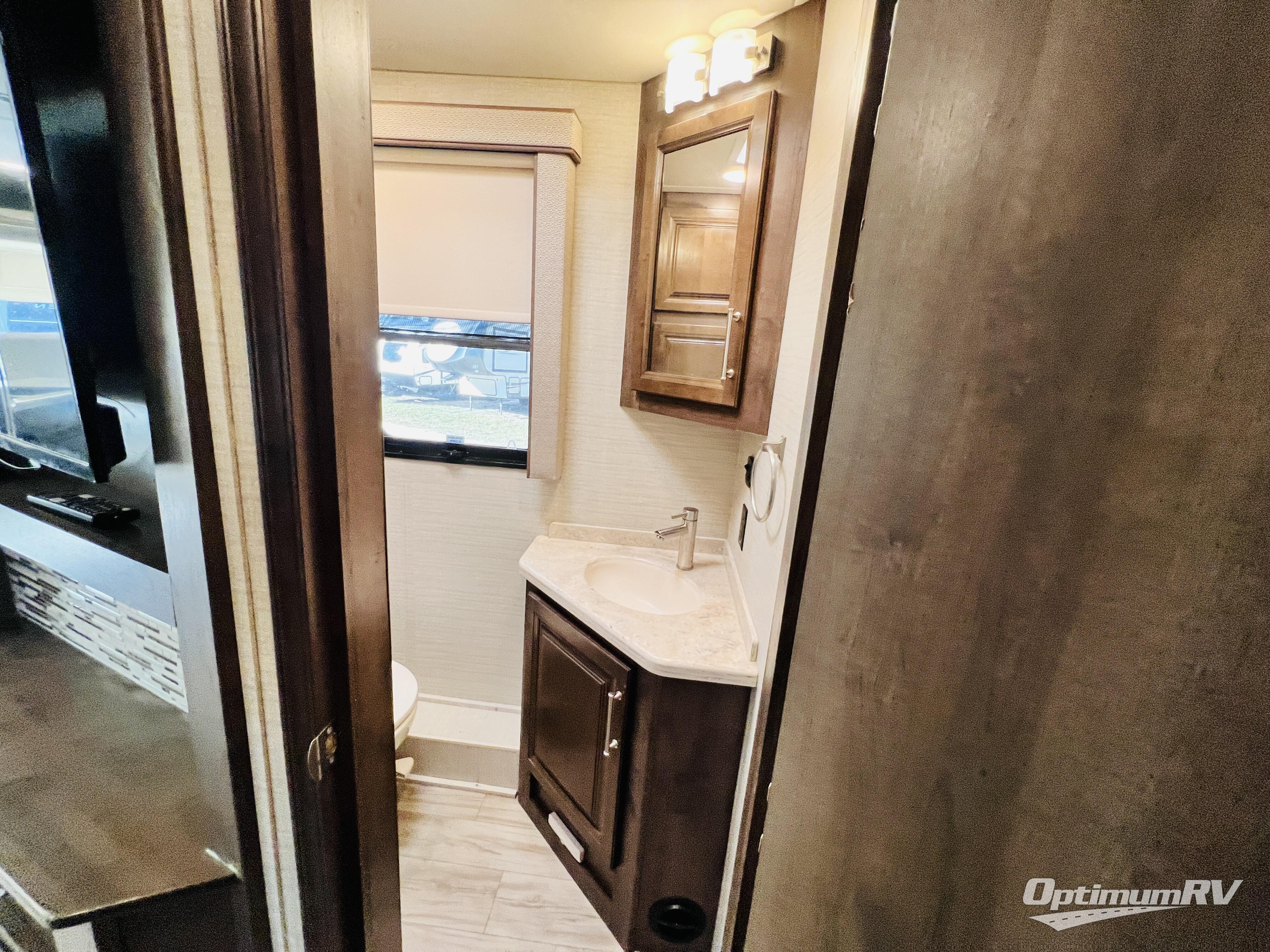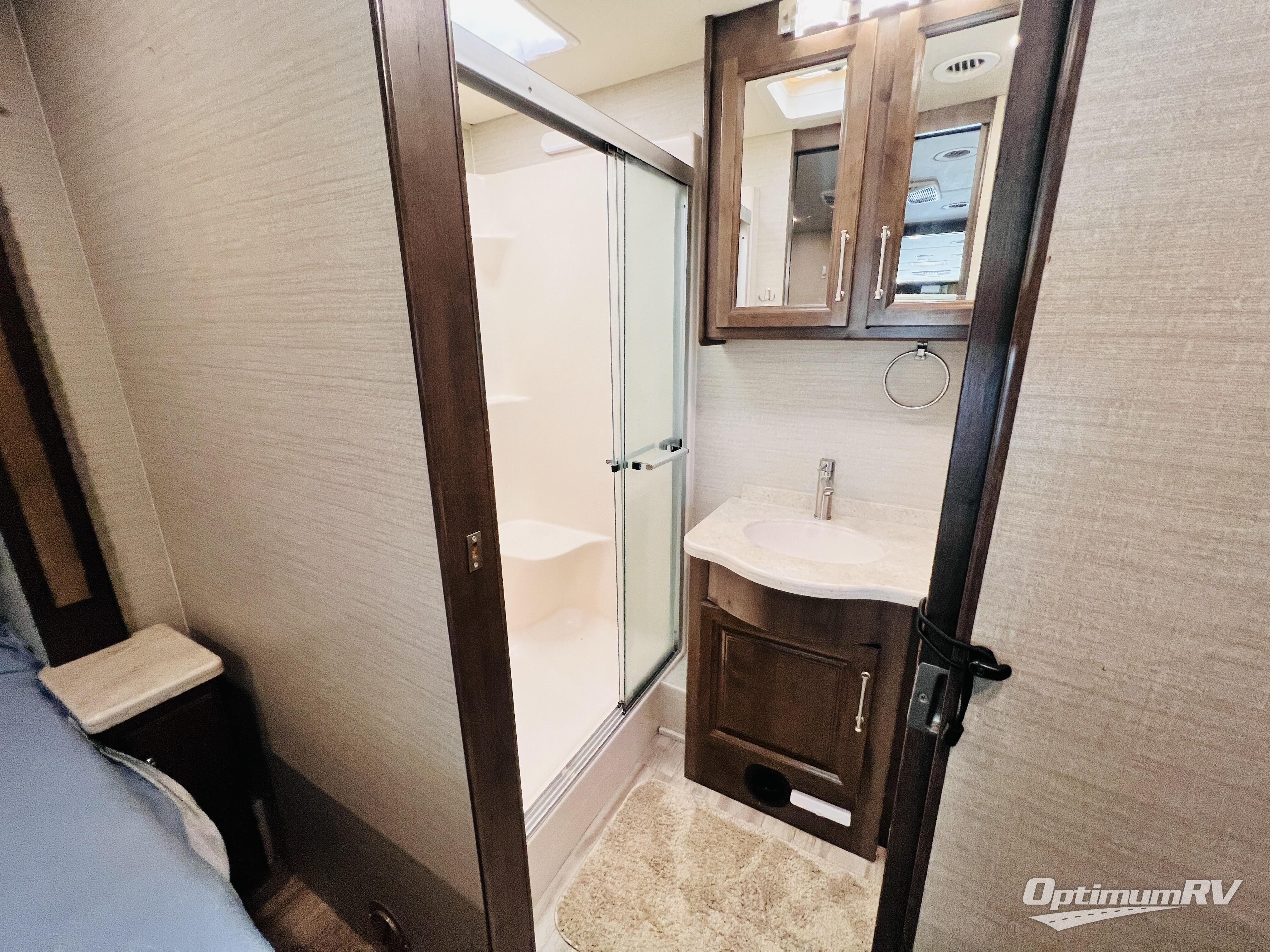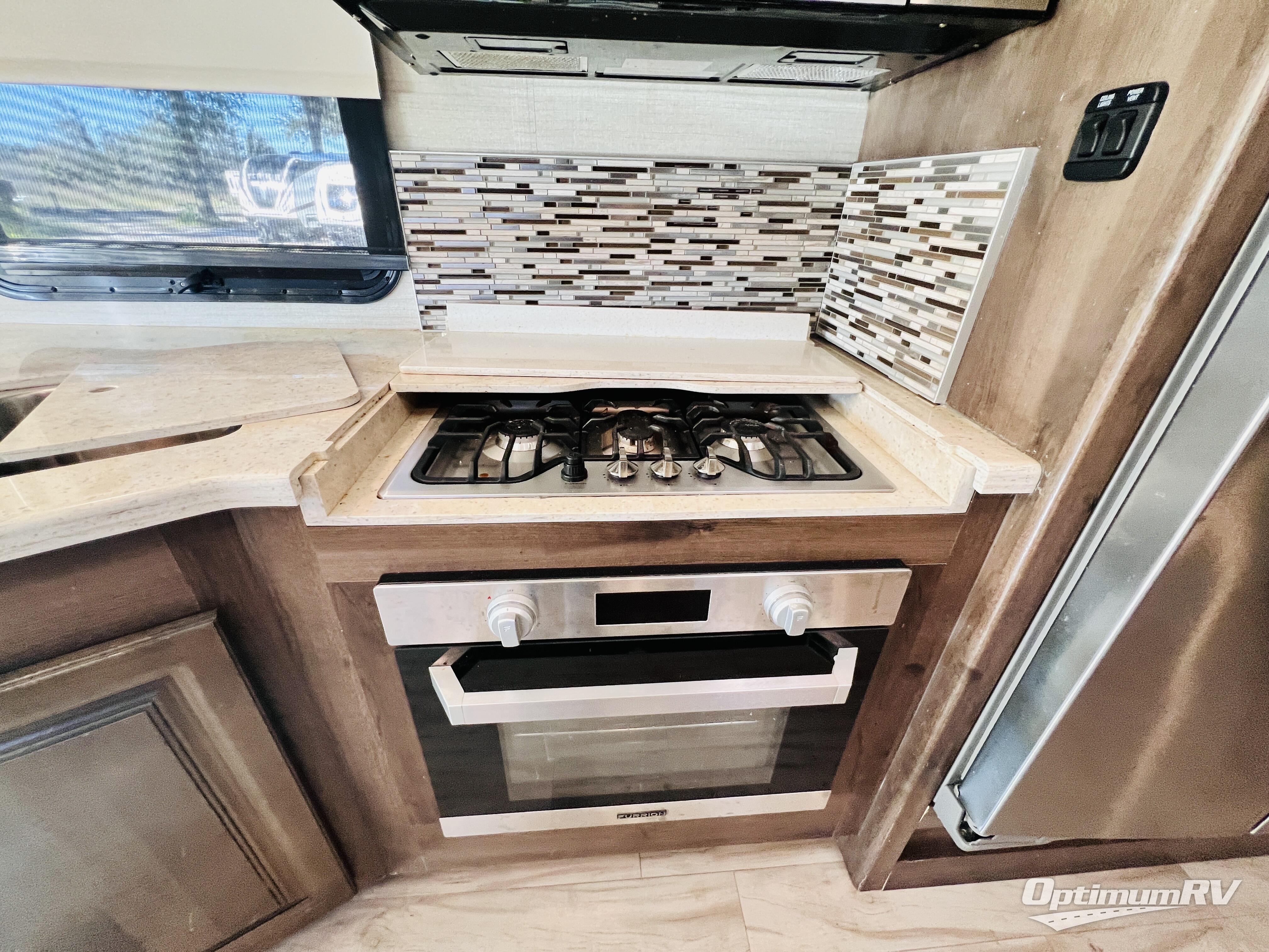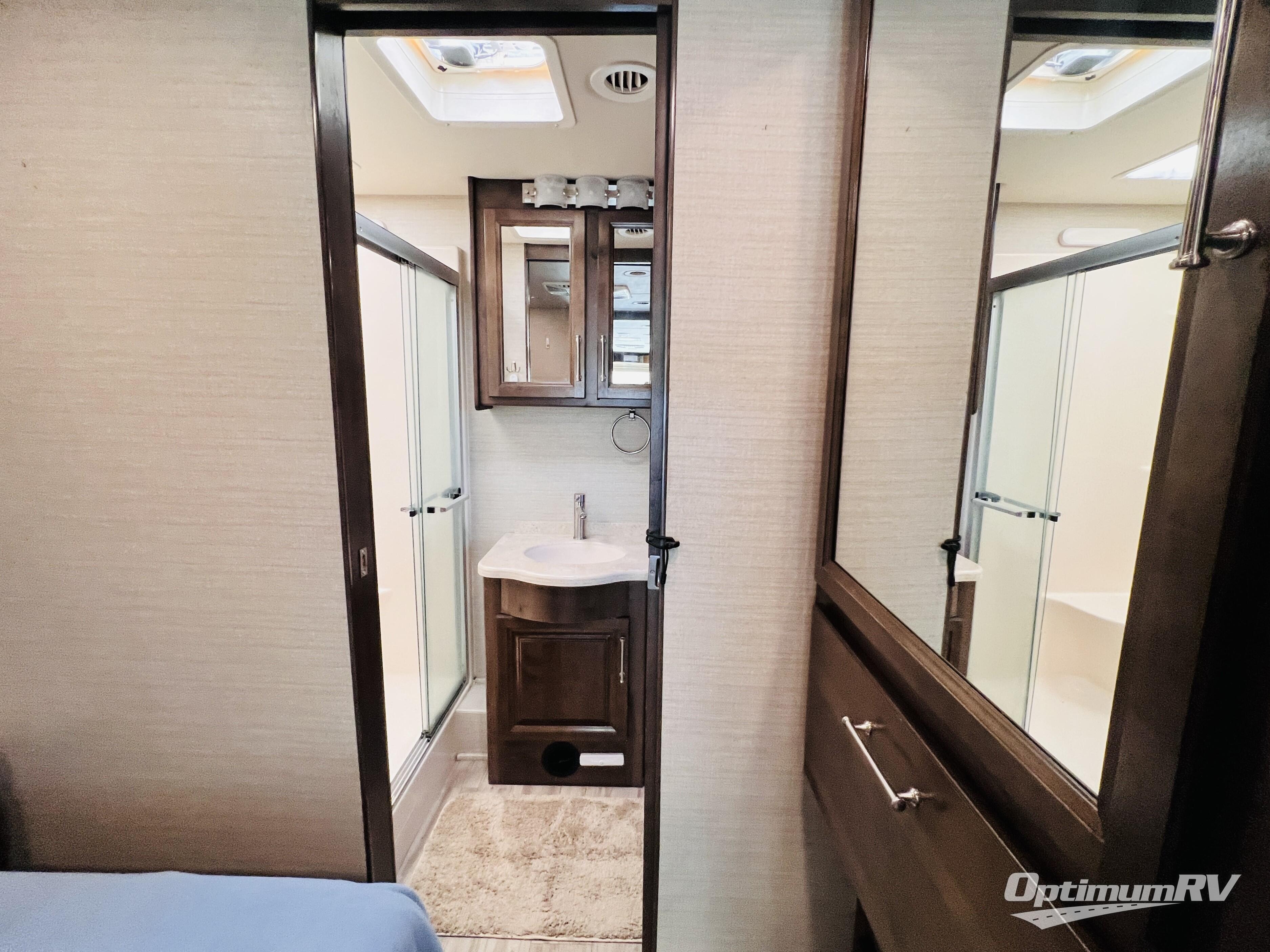 The residential feel of this coach not only promises comforts and conveniences for your entire journey, but the look and feel once you step inside tells you that luxury living is going to be your new way of travel. You are going to enjoy the spacious interior thanks to two nice size slides. Once parked, and the slides are opened up, sink back into the extendable sofa and enjoy a cozy fire in the fireplace as you watch your favorite program on the 39" LED TV provided. All of the residential appliances will make it easy to cook gourmet meals just like home. And, at bedtime, a king bed is waiting to whisk you off to dreamland! The rear bath offers privacy from the main living area up front, and there is also a half bath easily accessible during the day. Outside, you will find tons of storage space with a lockable pass-through compartment that makes packing and storing your outdoor gear easy, and the 17' electric awning with outside entertainment center provides a place to hang out both day and night protected from the elements while enjoying a bit of fresh air. You also have the option of adding a drop-down overhead bunk for added guests that wish to spend the night, plus so much more.