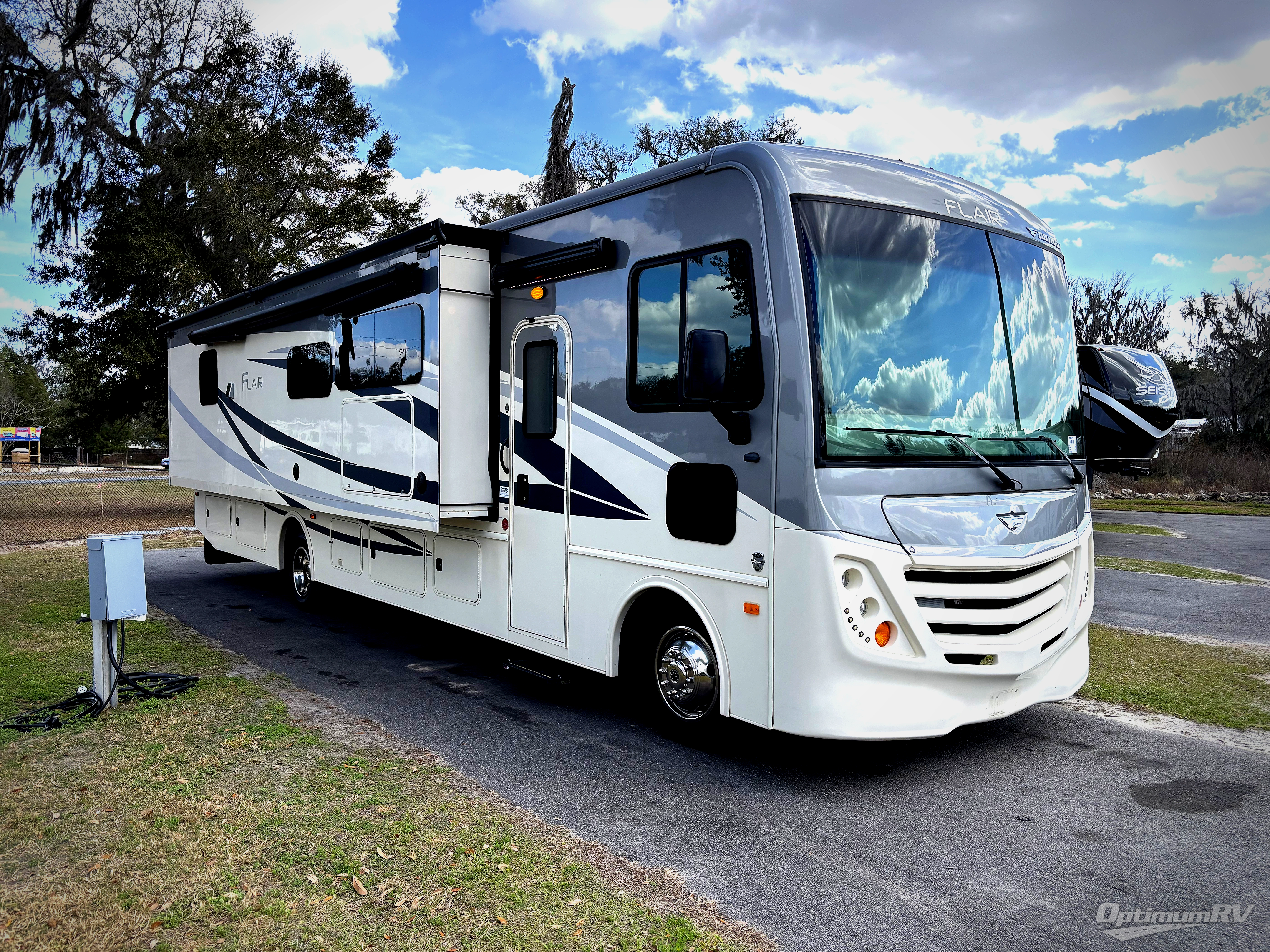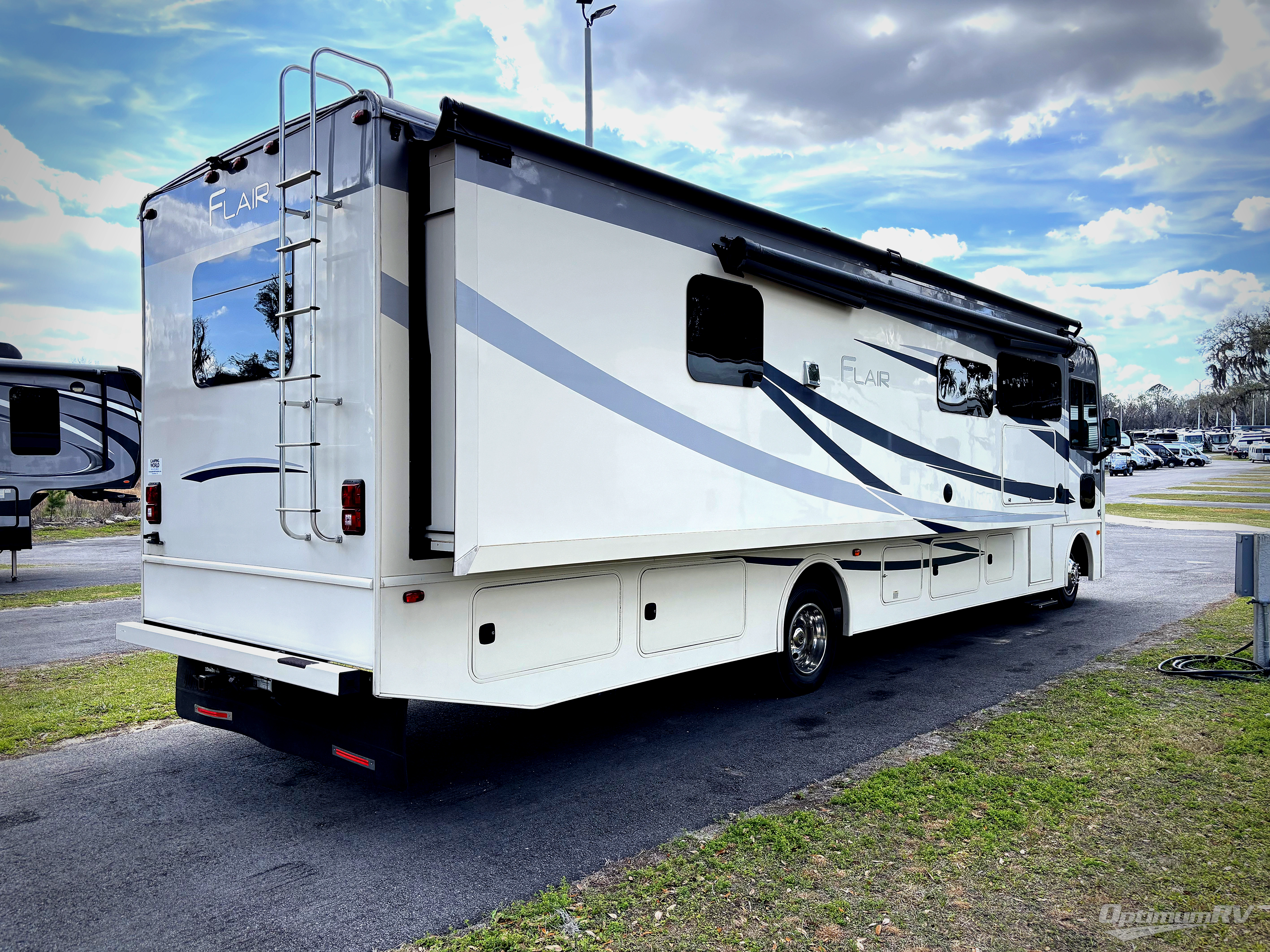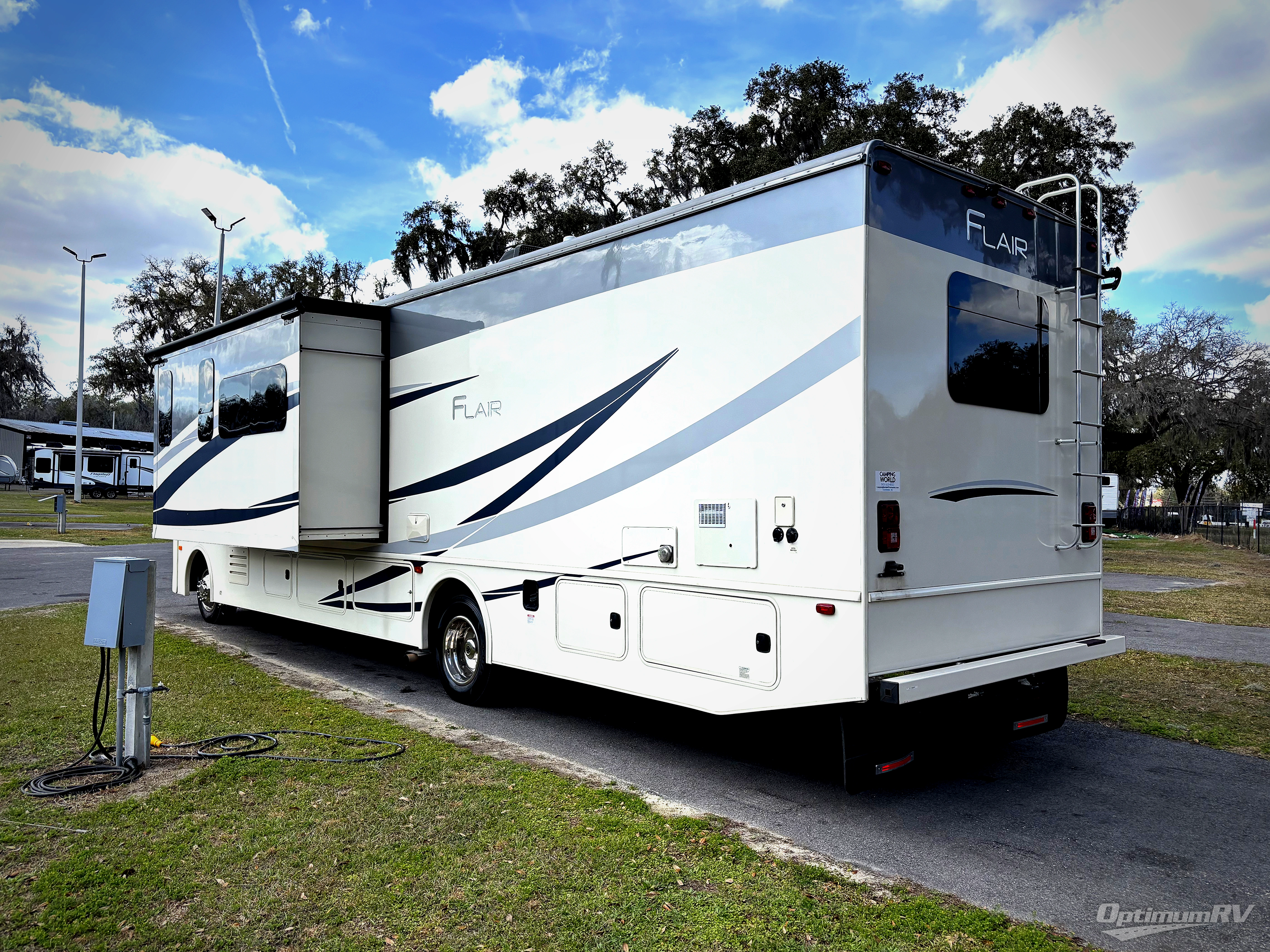 You will love the convenience and the functionality of the Fleetwood Flair. Each model includes a Hide-A-Loft drop down queen bed with a 600 lb. capacity, a residential sofa, and lino flooring. An over the range microwave, kitchen backsplash, and a residential single handle faucet with a pullout sprayer come standard in these motorhomes. In each unit you will be pleased to find a Bluetooth stereo system in the bedroom plus a USB port to charge your devices. Clean up after a day of hiking with family and friends with an exterior shower provided with each motorhome, plus you'll find a pass through storage to hold your larger items. These units have also been constructed with four point fully automatic hydraulic leveling jacks, a full coverage heavy duty undercoating, and a quiet, ducted A/C system. Come treat yourself with one of these Flair motorhomes by Fleetwood RV, you won't regret it!