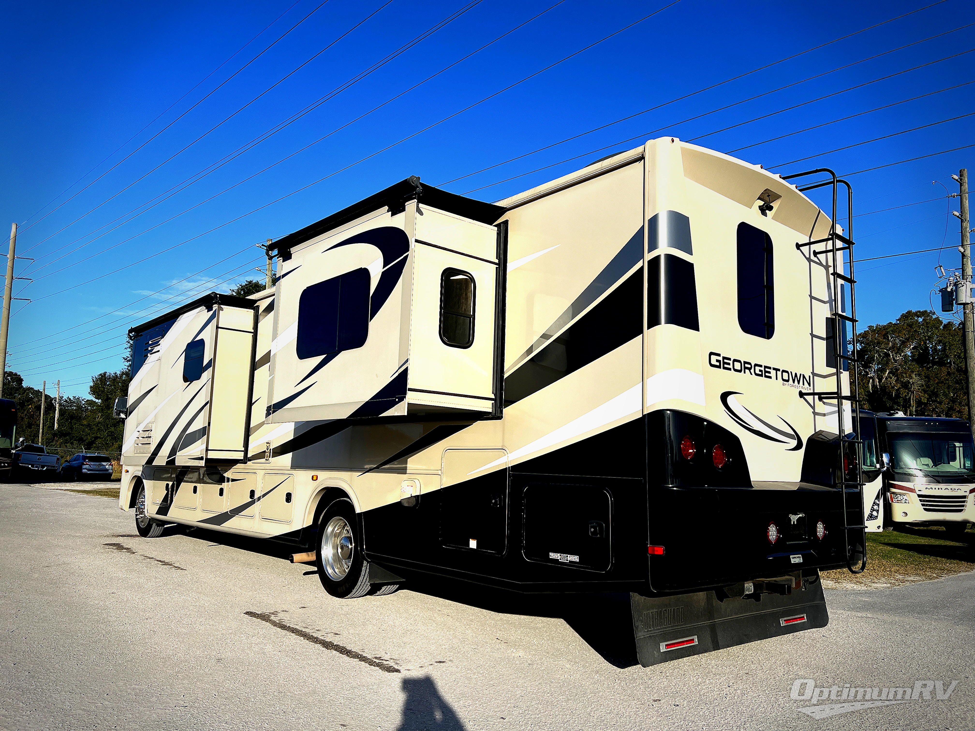 It's time for you to enjoy your road trips in true comfort! Check out this Forest River Georgetown 5 Series 34H5 class A motorhome. You won't be disappointed with all of the features it has to offer like the full and half baths, the passenger work station, the 32" LED bedroom TV, and the 40" LED main TV. Another feature you are sure to love is the rear private bedroom. Here you will find access to your own private bathroom, a king bed with nightstands on either side, and even a wardrobe that is prepped for the optional washer/dryer. The luxurious features don't stop there! There is also a fireplace with theater seating directly across from it, and the seating even has cup holders so that you don't spill your drinks.