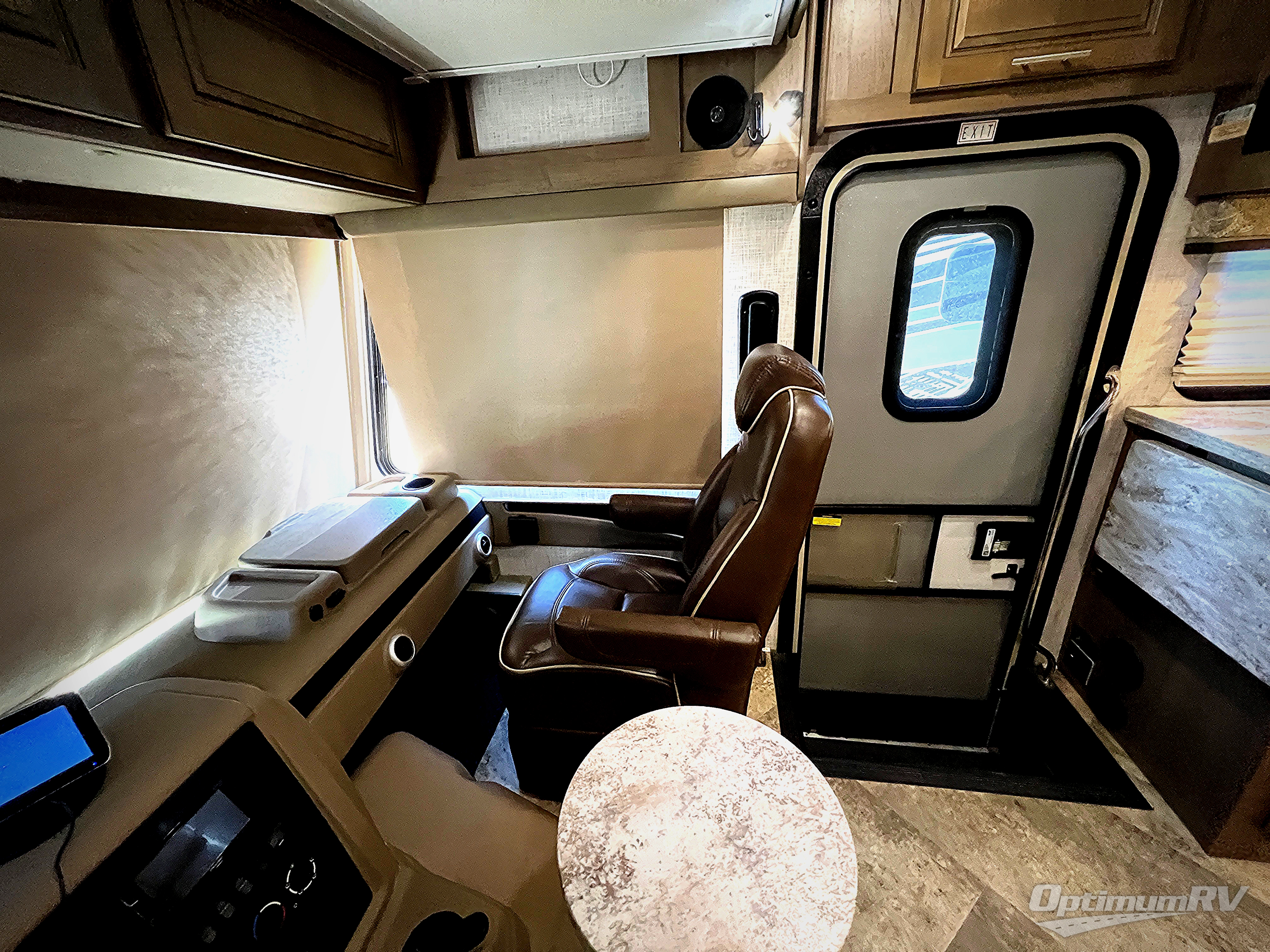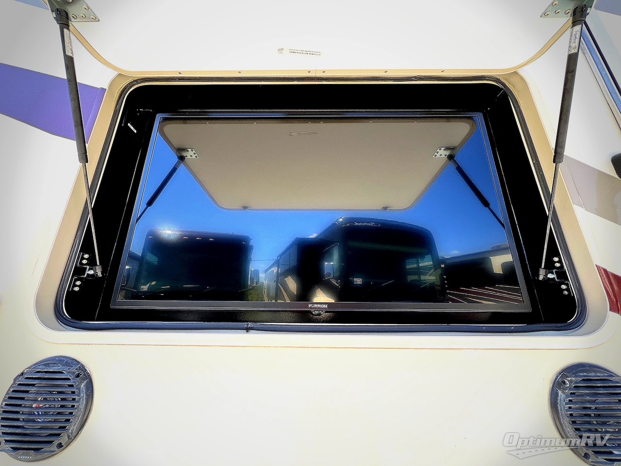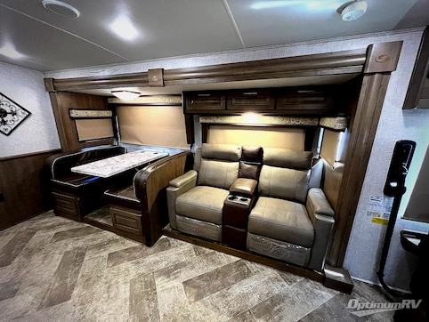 For comfort and style you will want a Forest River Georgetown 5 Series class A gas motorhome. Along the exterior there is a "Super Storage" rear cargo compartment, an outside shower, as well as a stylish fiberglass front cap with a lighted logo, LED accent lights, and an automotive bonded front windshield. As you step inside, be prepared to be wowed with all of the at-home convenient features such as the stainless steel three-burner cooktop with oven, the two LED TVs, and the King Jack™ digital TV antenna with a mount and built-in signal meter. In the cockpit there is a custom dash with ABS side consoles, drink holders, and a 110V outlet/USB. You will also enjoy the convenience of the MyRV touchscreen with wireless technology.