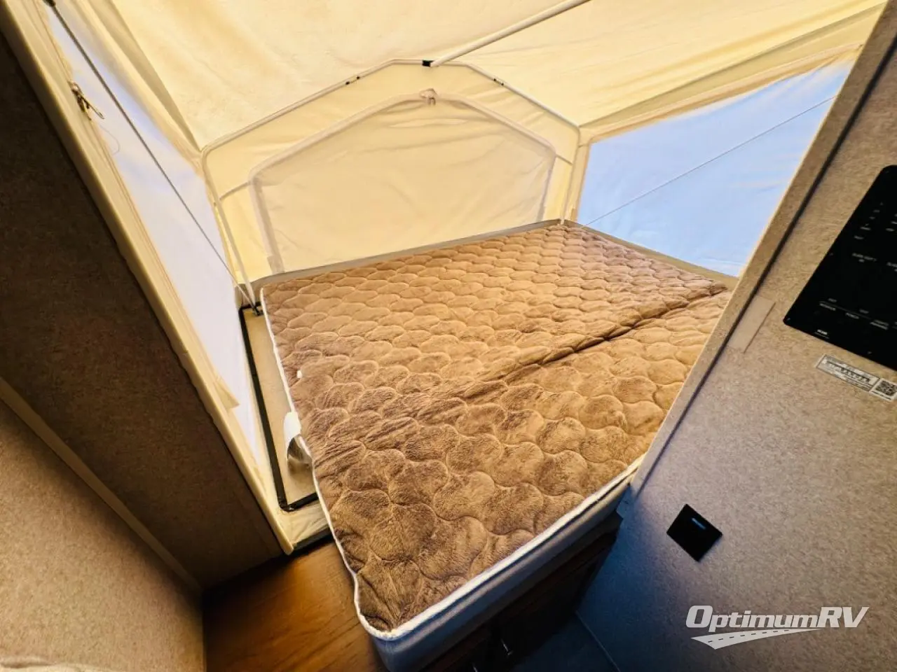 This Rockwood Roo is perfect for a family of five or six individuals. You can easily sleep two on each tent end bed, plus the flip sofa and booth dinette provide extra sleeping space. Once everything is set back up in the morning then head outside to enjoy your coffee under the power awning. You have the convenience of your own full bathroom, and a kitchen that is perfect for making meals for your family. You might even make a meal on the outside gas grill.