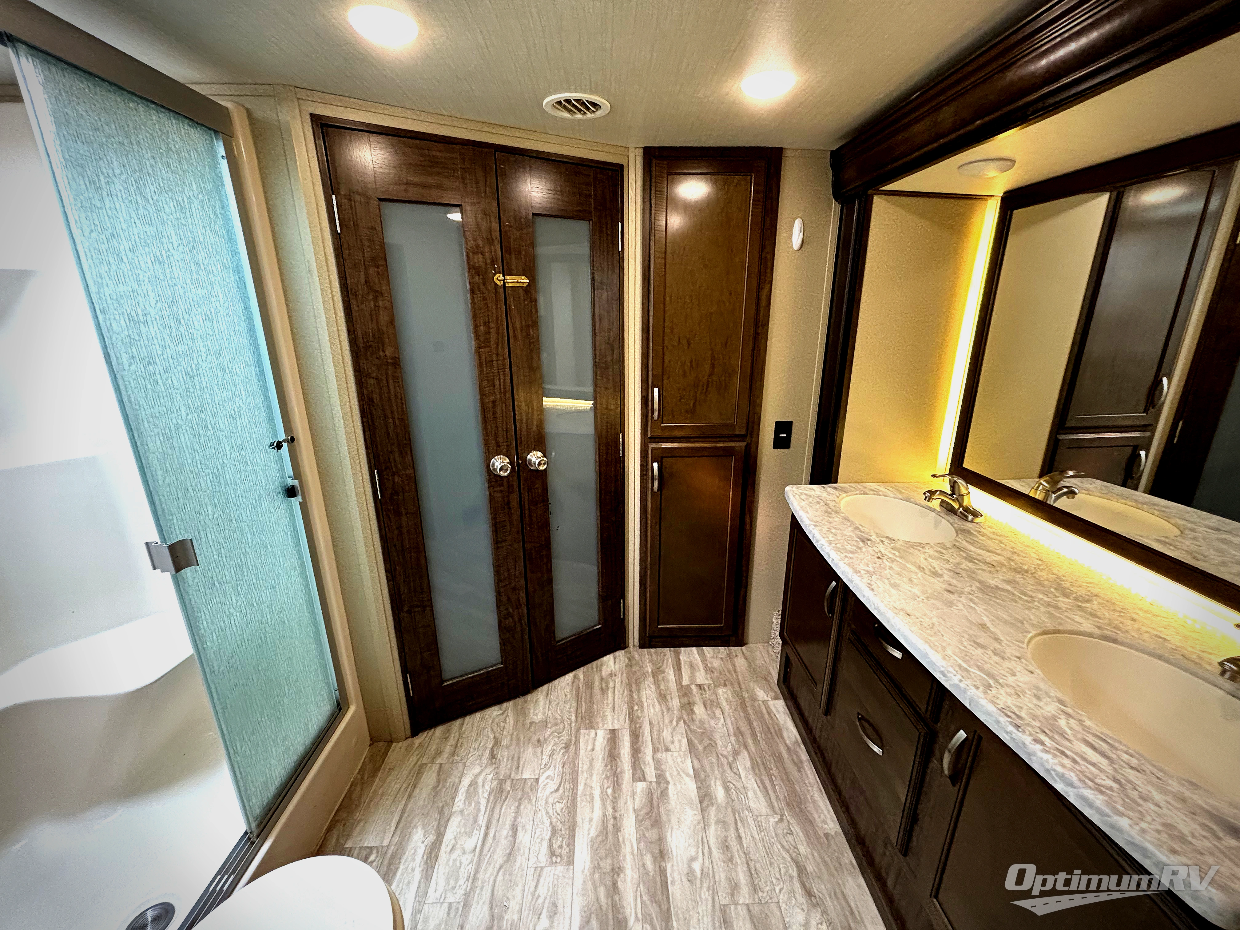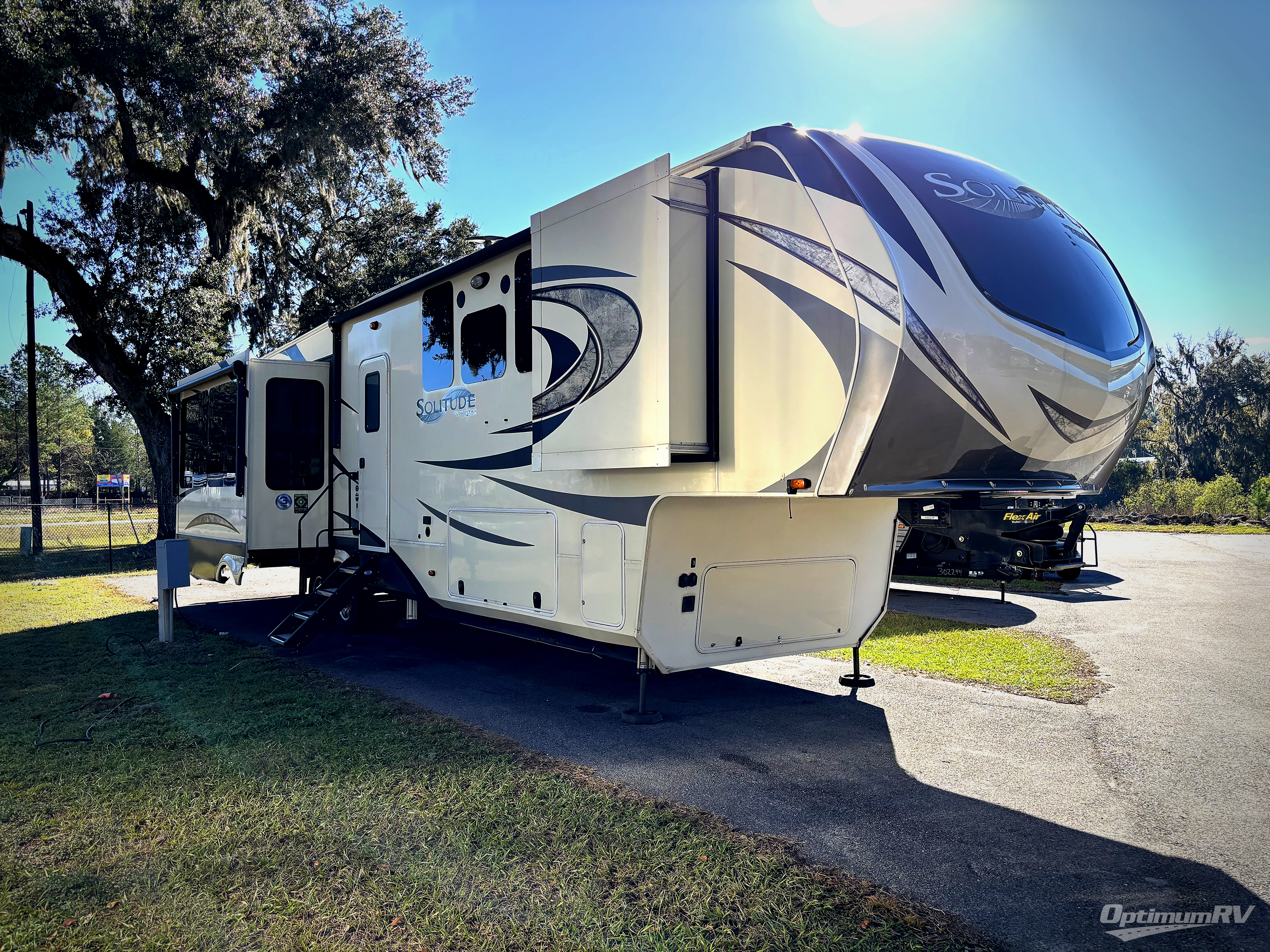 If you are looking for a full-time RV with luxury and comforts like home, this fifth wheel might just be the one. Imagine having a full master bathroom with dual sinks and plenty of storage, plus a washer/dryer if you decided to add those optional appliances to the prepped space. Now start thinking about how you will enjoy the walk-through master bedroom with a flip-top dresser, dual seats, and an LED TV. The cook will have a professional grade stainless steel cooktop, built-in oven and convection microwave to make meals. This model even includes a beverage cooler in the wine bar, dishwasher prep in the kitchen island, a stainless steel 18 cu. ft. four door refrigerator, and a large pantry. You will find plenty of seating to entertain your friends, plus a fireplace to keep everyone cozy on those chilly nights. Come see how this Solitude offers conveniences and comfort throughout, plus plenty of storage for all your things.