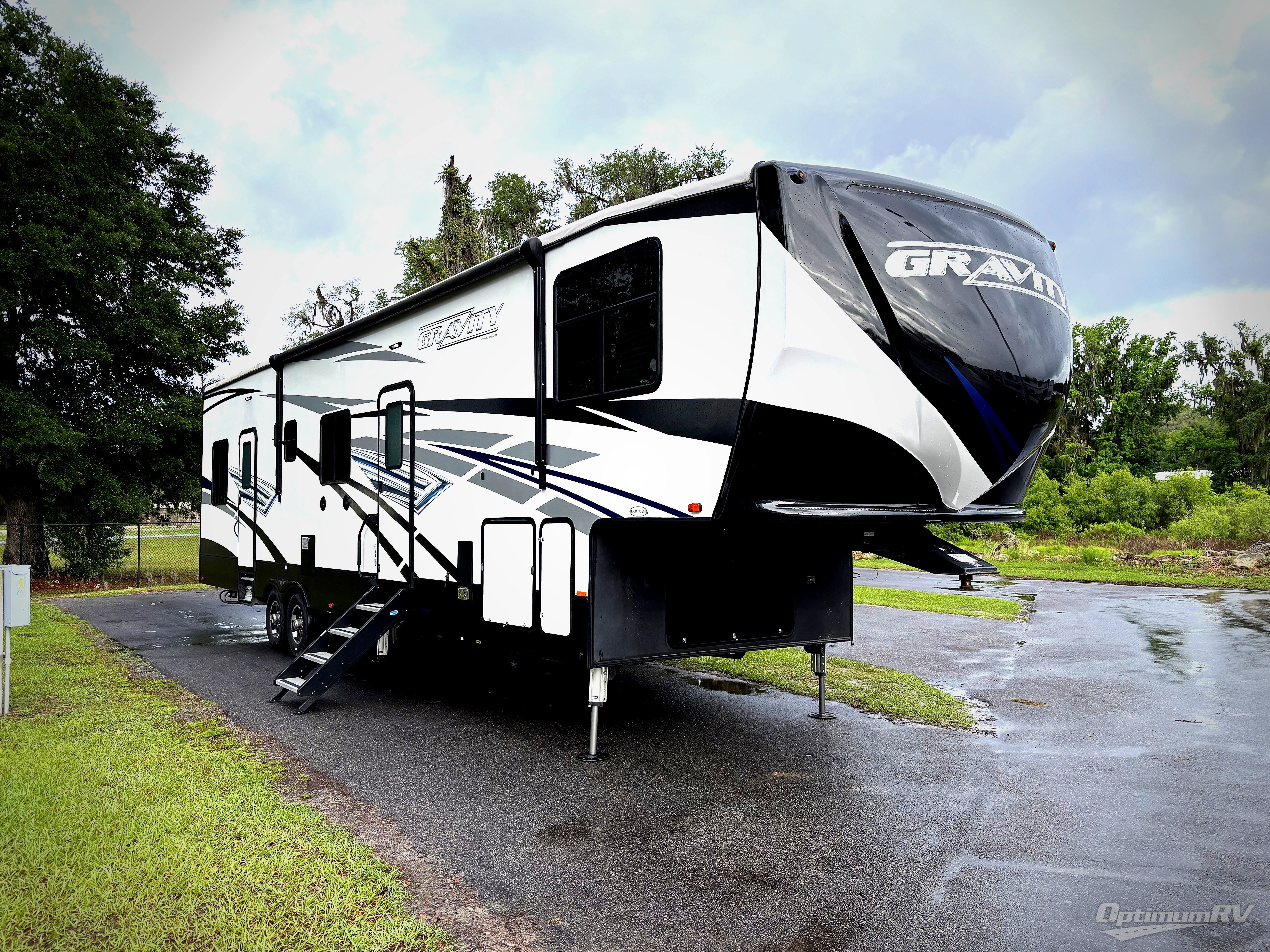 Don't miss out on camping in luxury with this Gravity fifth wheel! You will have 13' of cargo space to load up any of your favorite off-road toys while still having space to sleep up to seven people. Inside the front private bedroom, you can enjoy a good night's rest on the queen bed and access into the dual entry bath, plus there is even a closet that is prepped for you to add the optional washer/dryer. After an adventurous day on the trails, you can pop a bag of popcorn in the 30" microwave, grab your favorite beverage from the 18 cu. ft. stainless steel refrigerator and lay down on the sofa while you watch the fire crackle in the fireplace or watch your favorite movie on the LED TV!