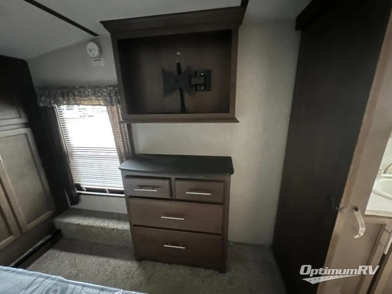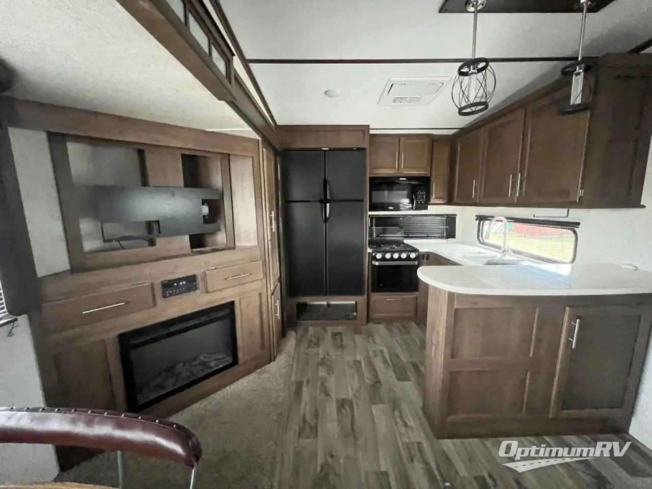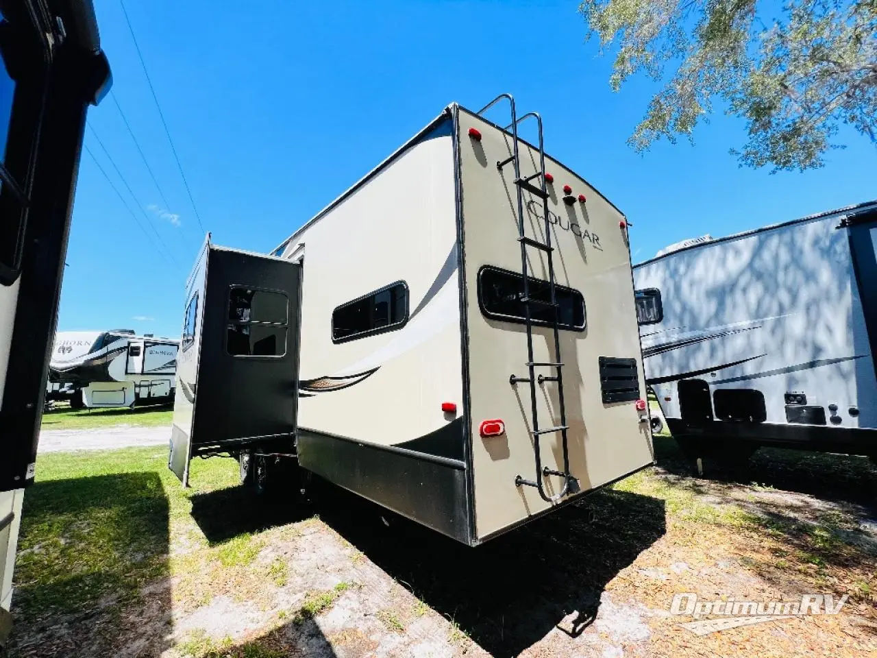 Been searching for a full-time fifth wheel with a rear kitchen layout including a breakfast bar and plenty of space to prepare meals for overnight guests? This Cougar has you covered! You can even watch the 50" LED HDTV with a fireplace below while making meals. The living area offers plenty of seating to relax inside, plus you can dine at the free standing dinette. The master bedroom's queen bed allows you to rest comfortably unless you both decided to get the optional king size bed for more sleeping area. Be sure to add the washer and dryer option to the prepped space in the closet, these appliances make full-time RVing so much easier. This is the one!