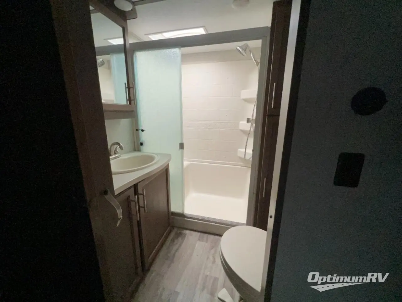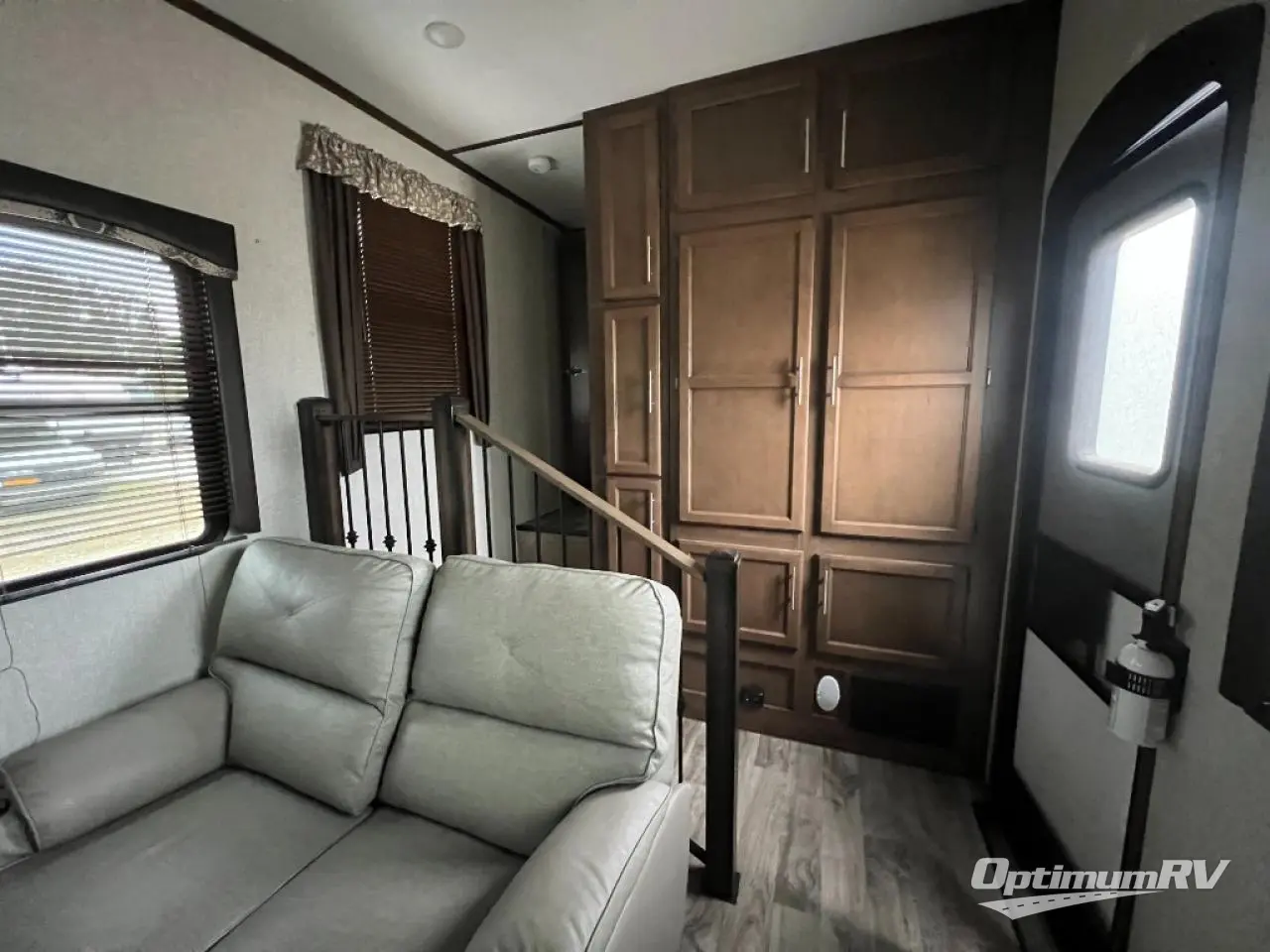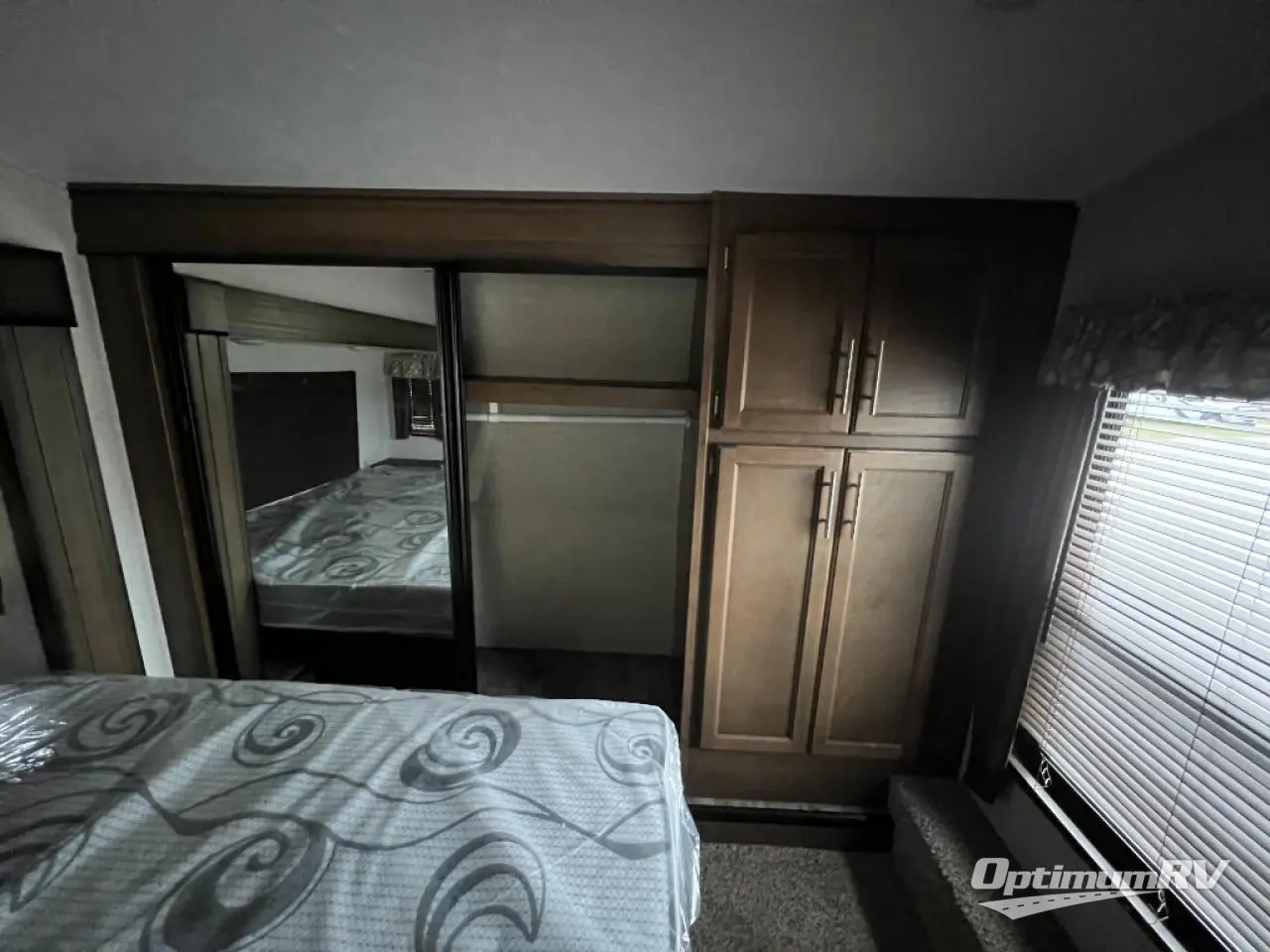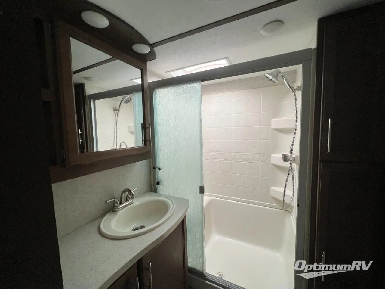 Been searching for a full-time fifth wheel with a rear kitchen layout including a breakfast bar and plenty of space to prepare meals for overnight guests? This Cougar has you covered! You can even watch the 50" LED HDTV with a fireplace below while making meals. The living area offers plenty of seating to relax inside, plus you can dine at the free standing dinette. The master bedroom's queen bed allows you to rest comfortably unless you both decided to get the optional king size bed for more sleeping area. Be sure to add the washer and dryer option to the prepped space in the closet, these appliances make full-time RVing so much easier. This is the one!