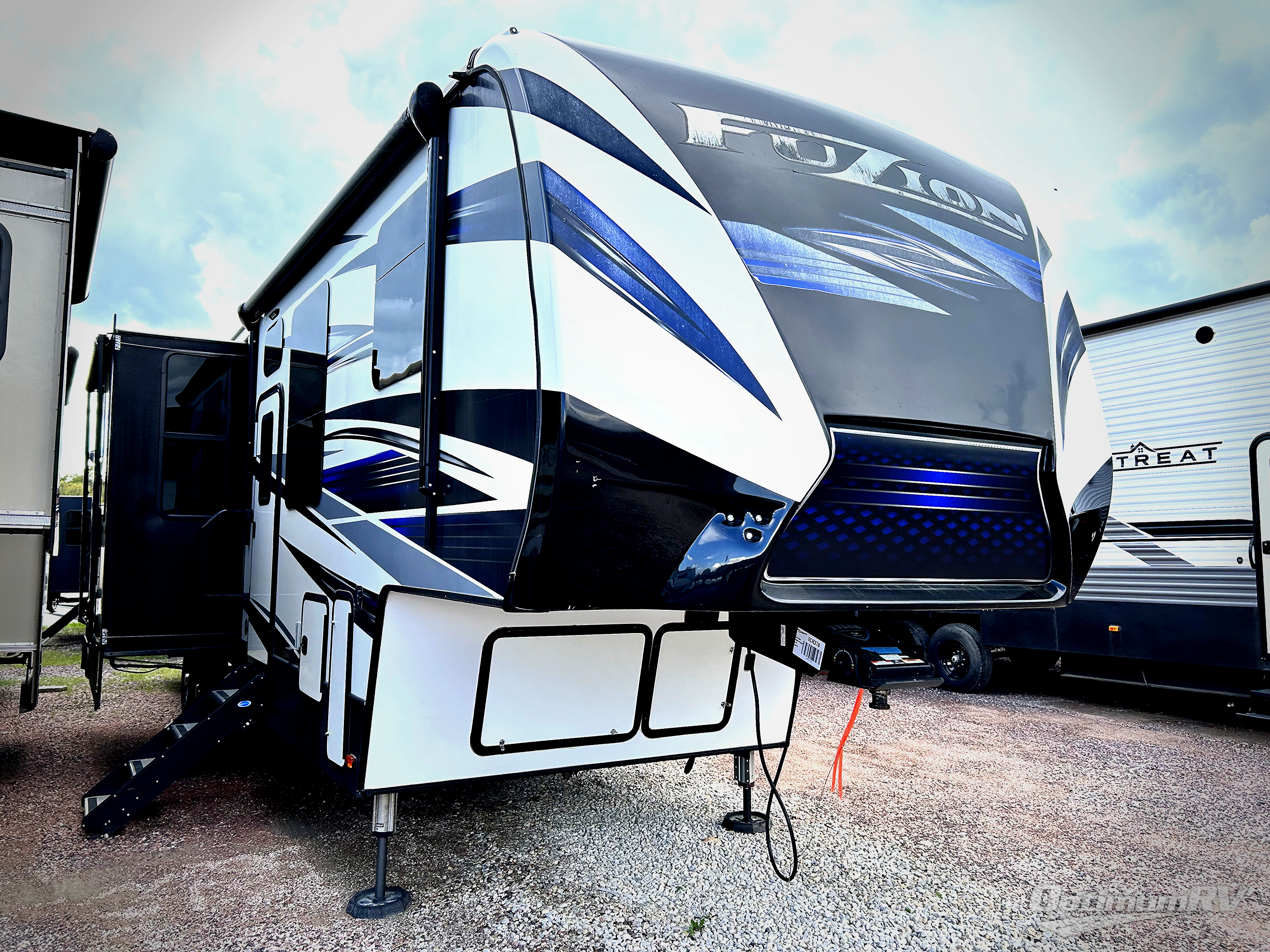 The Fuzion toy hauler fifth wheels are more than just a garage: they are a luxurious getaway experience! The Fuzion gives you a place to store your toys while you are traveling, yet delivers the comforts of home at the same time. What sets the Fuzion apart from the rest of the crowd are the exclusive swing-out stools that make it easy to indulge in a quick snack at the counter and the hidden pantry that keeps the interior looking clutter free. The iN-Command control system is also something you don’t want to miss out on. This system controls all the lights, tanks, thermostat, and awnings all within an app on your phone. And for those who pack everything but the kitchen sink, you will certainly appreciate the Fuzion-exclusive Super Storage compartment in the garage that will allow you to bring along everything you need for a successful adventure with the family!