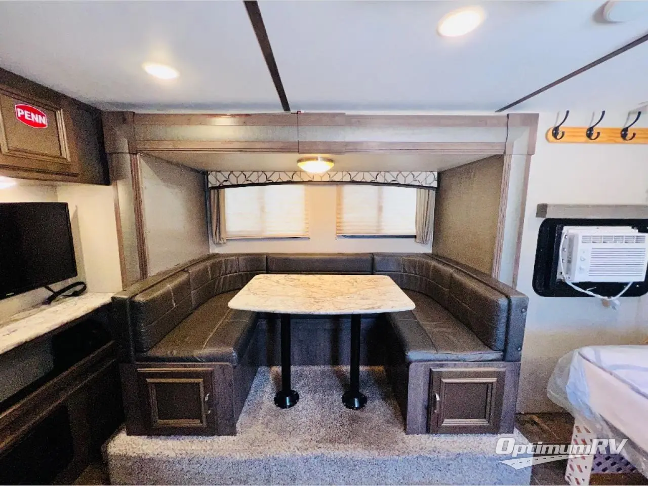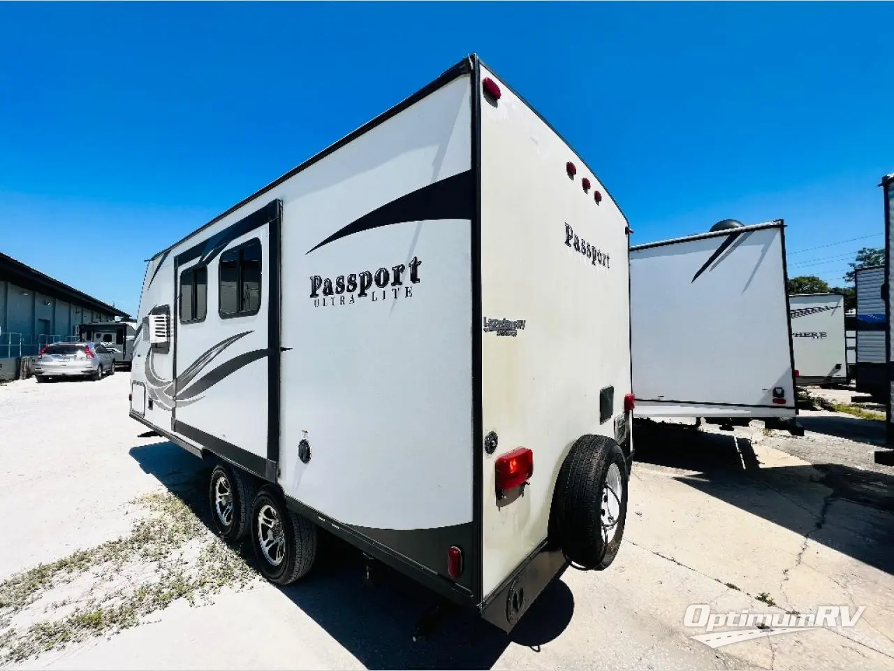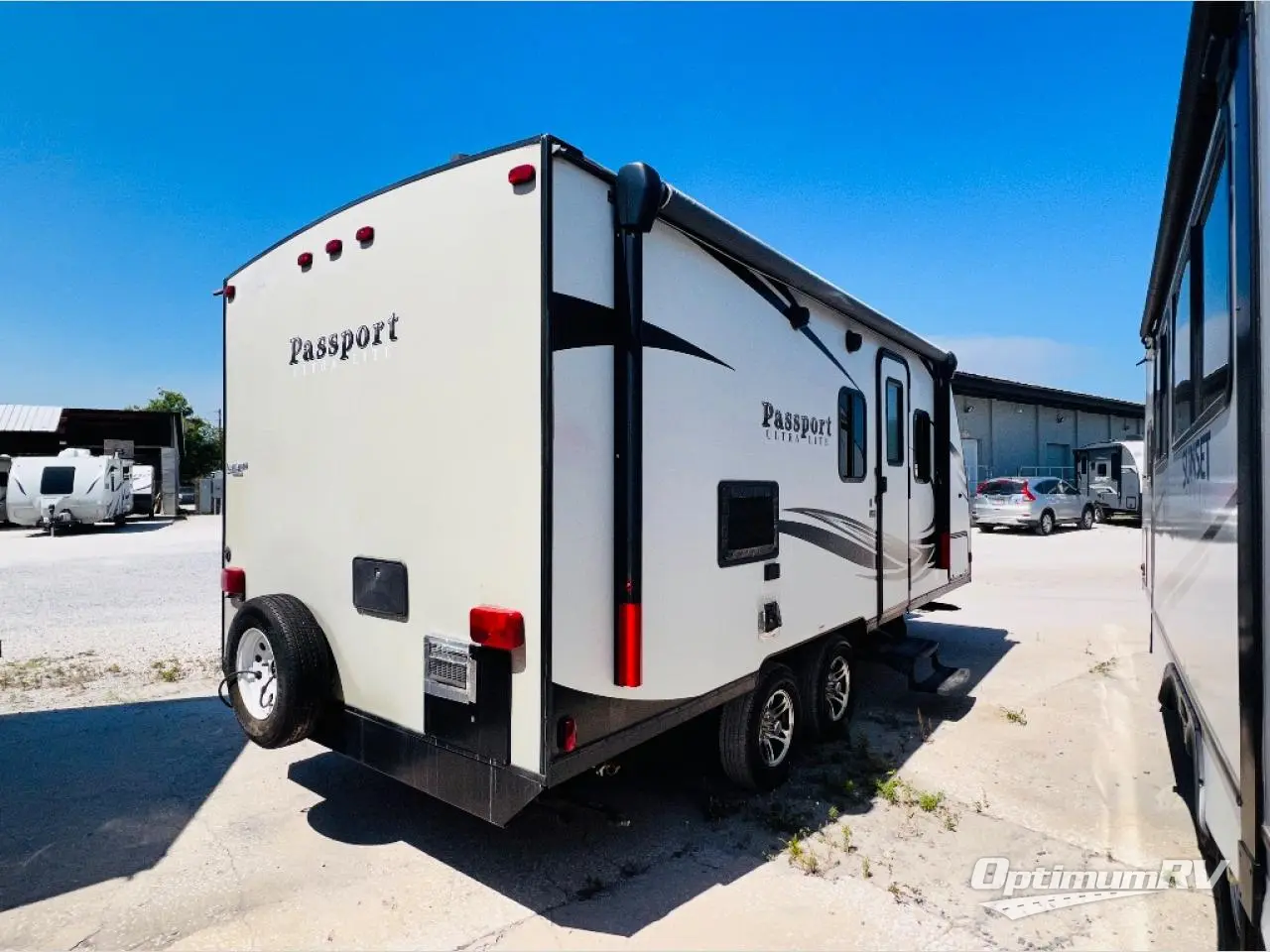 Envision relaxing on the sofa while the family plays a board game at the U-shaped dinette slide out while it's raining outside. This Passport travel trailer provides seating and sleeping arrangements for four people, plus a full bathroom. You can enjoy a front living area during the daytime, and a Murphy bed at night. No more looking at your unmade bed while camping. The full bathroom in the rear allows you to skip the public facilities and store extra clothing in the wardrobe, the kitchen amenities provide the necessary appliances to make your favorite meals, and you will find storage for all your things inside, and outside in the pass-through compartment. Comfort, relaxation, and fun are what you will get every time you take this model out.