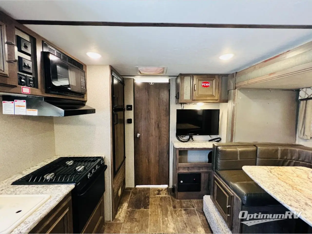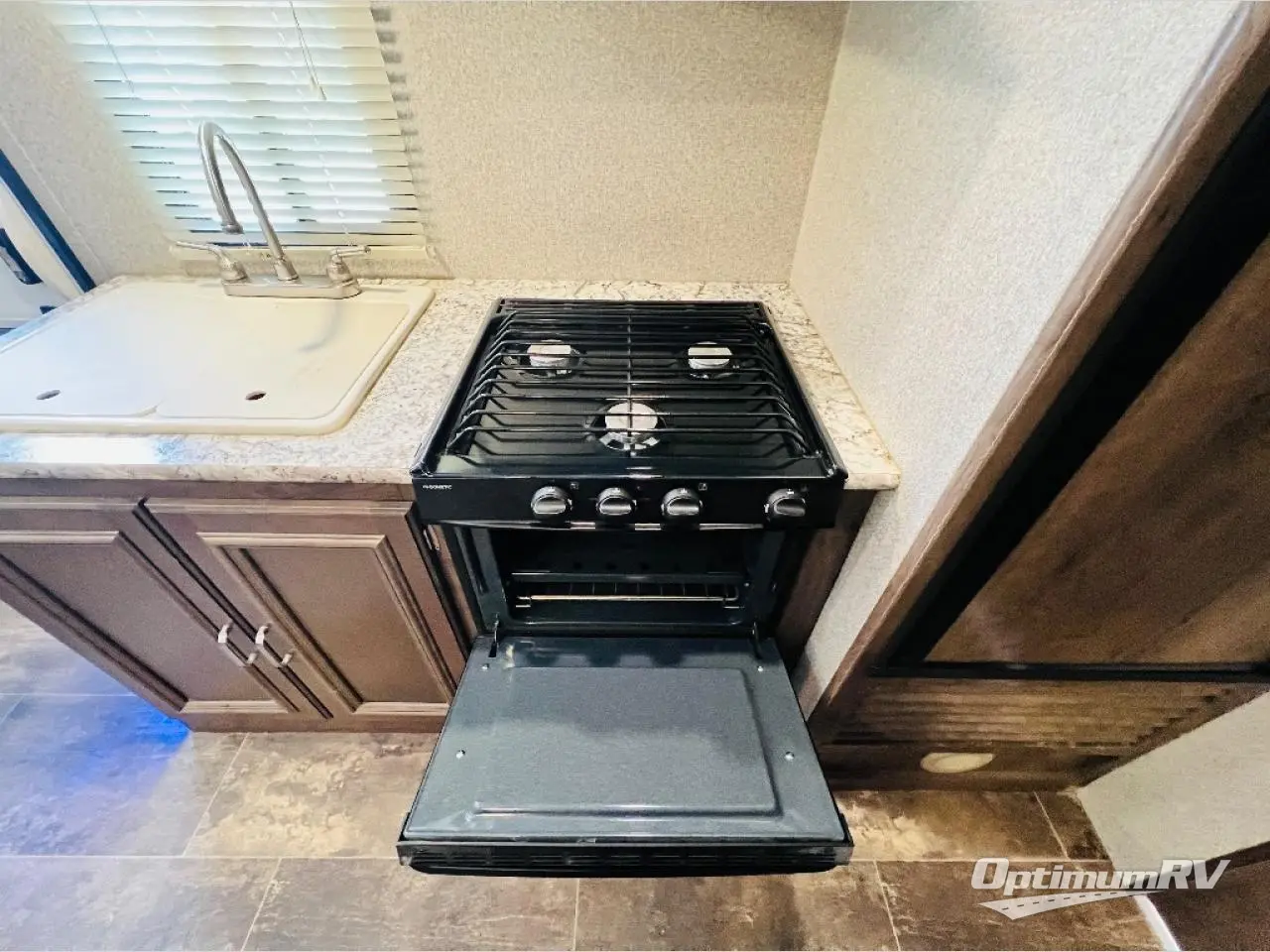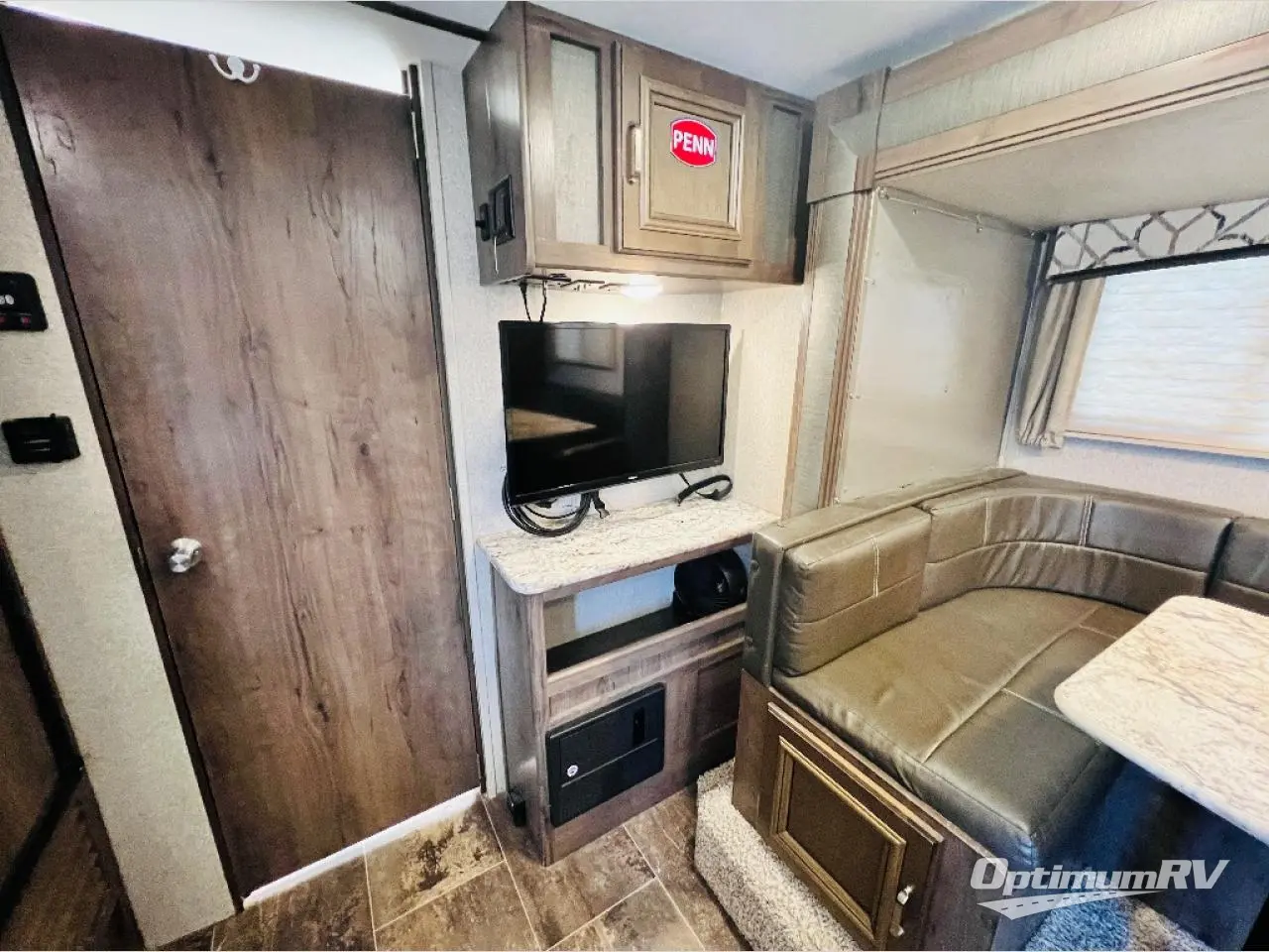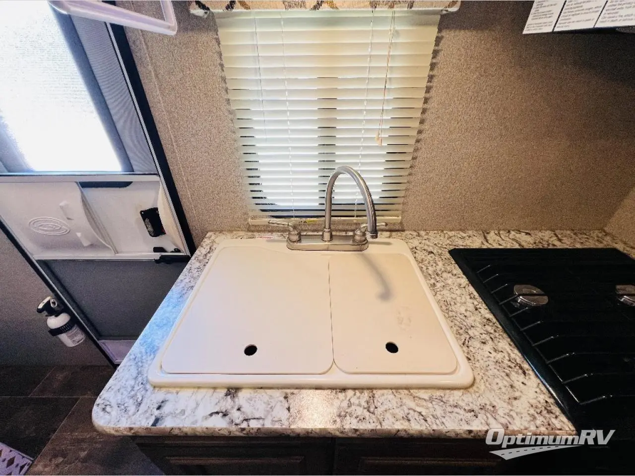 Envision relaxing on the sofa while the family plays a board game at the U-shaped dinette slide out while it's raining outside. This Passport travel trailer provides seating and sleeping arrangements for four people, plus a full bathroom. You can enjoy a front living area during the daytime, and a Murphy bed at night. No more looking at your unmade bed while camping. The full bathroom in the rear allows you to skip the public facilities and store extra clothing in the wardrobe, the kitchen amenities provide the necessary appliances to make your favorite meals, and you will find storage for all your things inside, and outside in the pass-through compartment. Comfort, relaxation, and fun are what you will get every time you take this model out.
