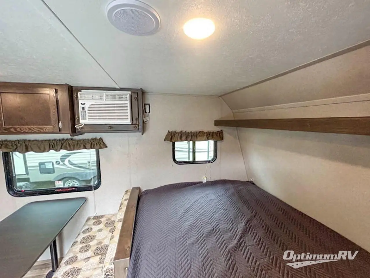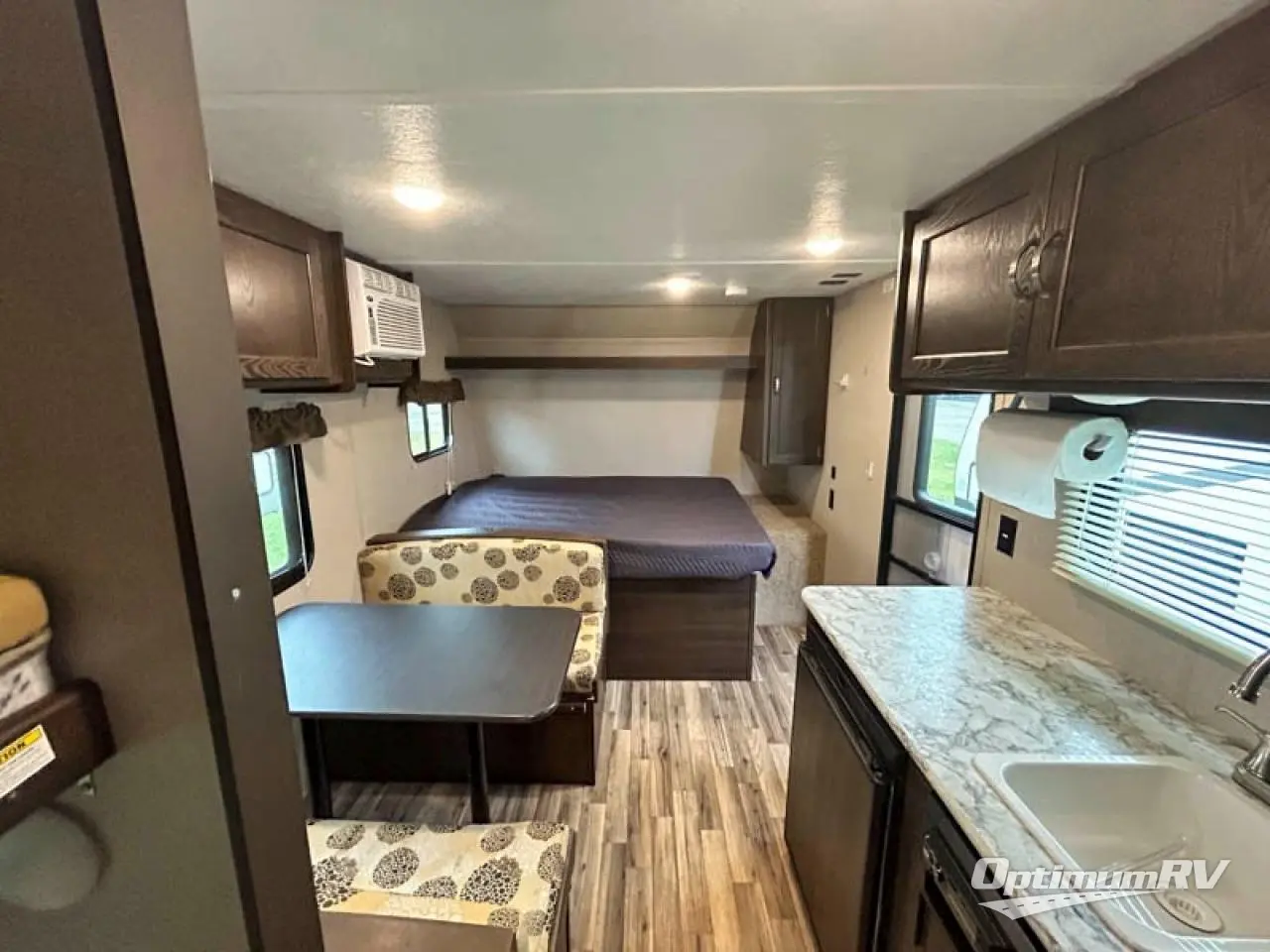 For a lightweight travel trailer that can easily accommodate your family you will want this Springdale Mini 1800BH! Your kids will enjoy their own space with the rear set of 32" x 75" bunk beds. Mom and dad can get a good night's rest on the front queen bed and if needed the booth dinette can easily sleep a person or two small children. In the rear left corner of this model is the rear bathroom with an exhaust fan to eliminate the steam as you take a relaxing hot shower. You will not be lacking in storage with all of the overhead cabinets plus the exterior pass through storage big enough to hold your outdoor gear!