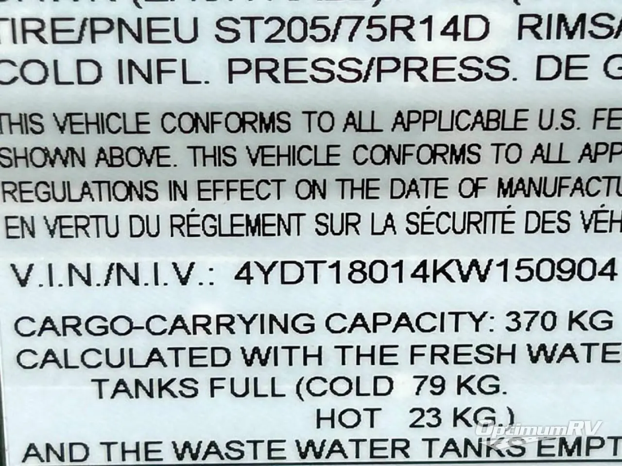 - VIN 4YDT18014KW150904