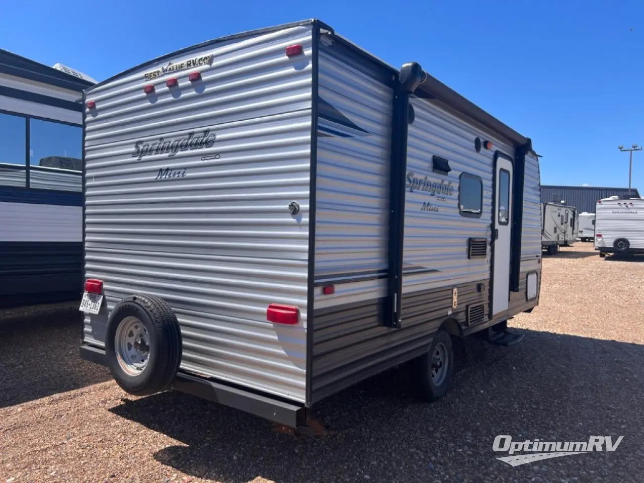 Get ready for any camping trip whether near or far! You will want an easy to tow, lightweight Keystone Springdale Mini travel trailer. These models have tinted safety glass windows, a mega exterior pass through storage area, E-coated corrosion-resistant wheels for a smoother ride, plus a Furrion backup camera/observation prep to eliminate any accidents. Inside you will enjoy plenty of features such as the cable TV hookup with a booster, the Furrion oven with glass top, and the hidden laundry chute in most models, plus there is LED lighting so that you can see clearly whether day or night. There is also a DVD/CD/MP3/Bluetooth stereoCD/Bluetooth radio and a reversible bedspread, plus so much more! So don't waste anymore time, come choose today the Keystone Springdale Mini travel trailer that best suits you!