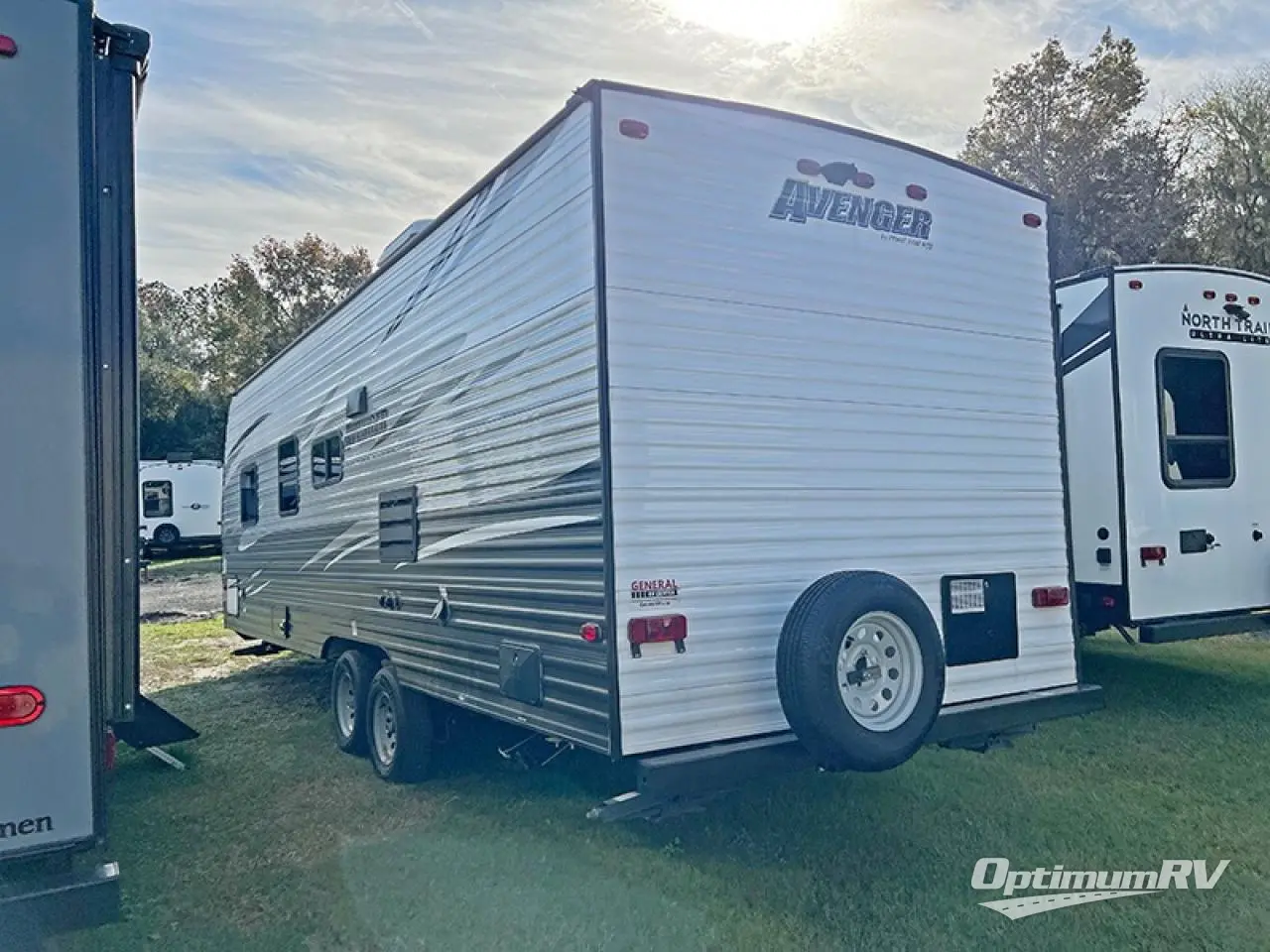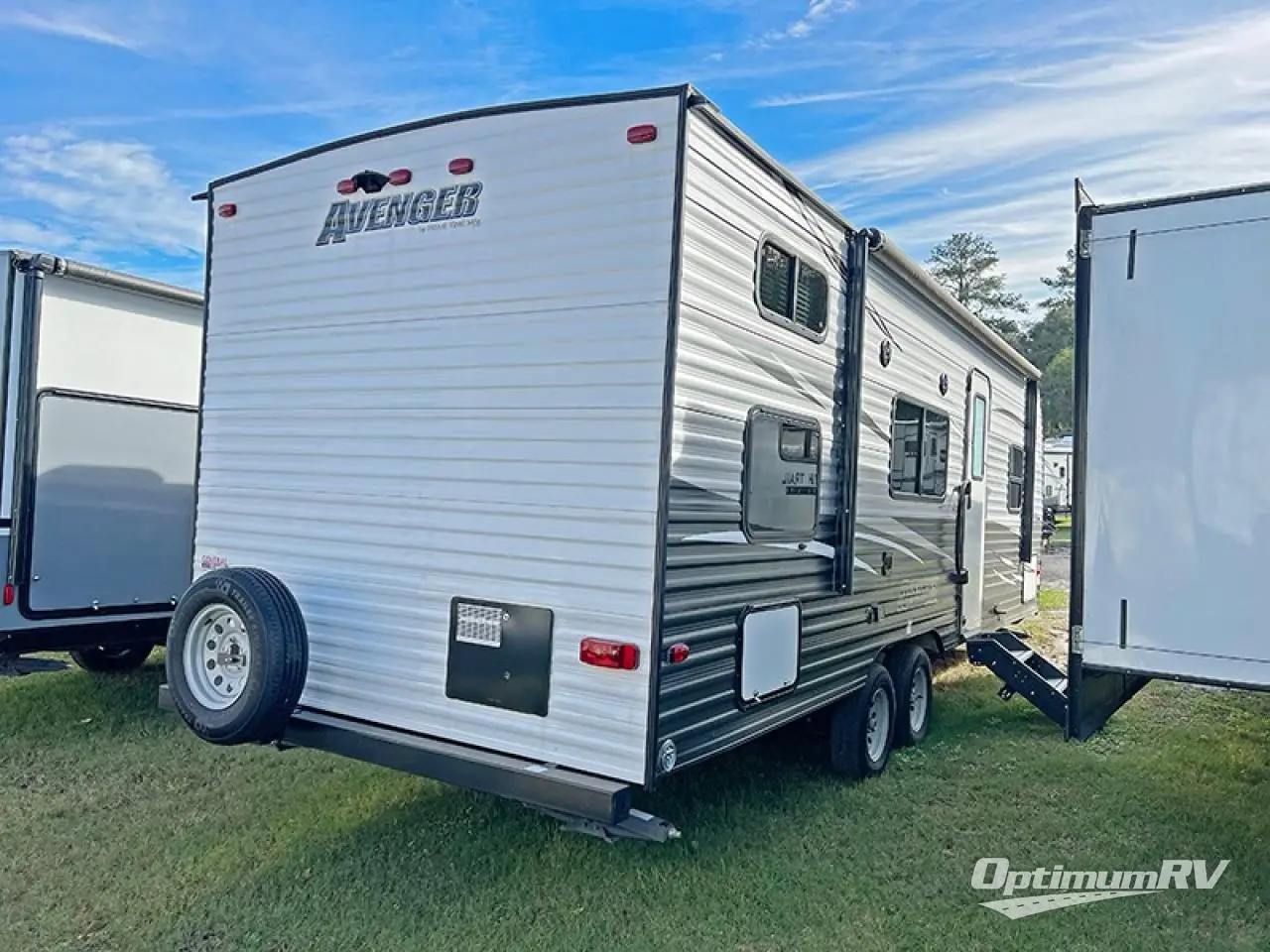 With any Avenger travel trailer you will feel secure knowing the EVERLAST Construction provides 2" wall construction on 16" centers, and cross banded construction. You will appreciate the outside shower providing an extra place to clean off, as well as the marine grade outdoor speakers, allowing you to enjoy being with family and friends outdoors. Each unit features a fully enclosed underbelly, and the extra large exterior grab handle provides safe entrance. The mandatory Advantage Package includes additional features that you will find useful such as a restaurant style kitchen faucet, LED interior lighting, a large double door refrigerator, and a flush mount glass range cover. It's time to take your next journey in an Avenger travel trailer by Prime Time RV!
