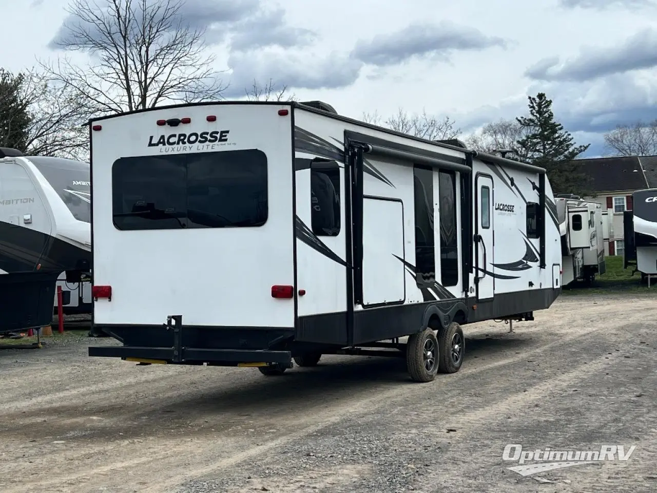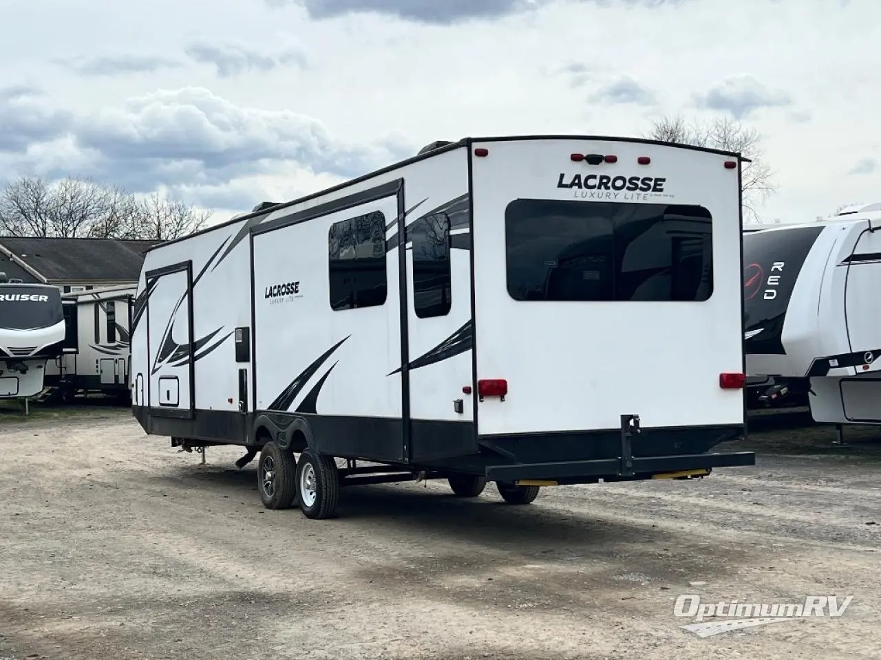 Wherever your camping adventures lead you, you will want a luxury LaCrosse travel trailer. Throughout each model you will find attention to detail from the shaker style cabinet doors, single bowl stainless steel sink, and residential J-spout kitchen faucet to the "One Touch" electric awning. You will find upgraded residential carpet with a pad, and in the living room there is an exclusive oversized MAX slide out offering nearly 40 cu. ft. of additional living space. MAX protection is found in the exclusive ETERNABOND construction which includes an enclosed and heated underbelly plus heated holding tanks and more. The mandatory Advantage Package includes the following - Universal Docking Center, electric tongue jack, a Furrion residential cooktop, solid surface countertops, a large stainless steel refrigerator, and so much more!