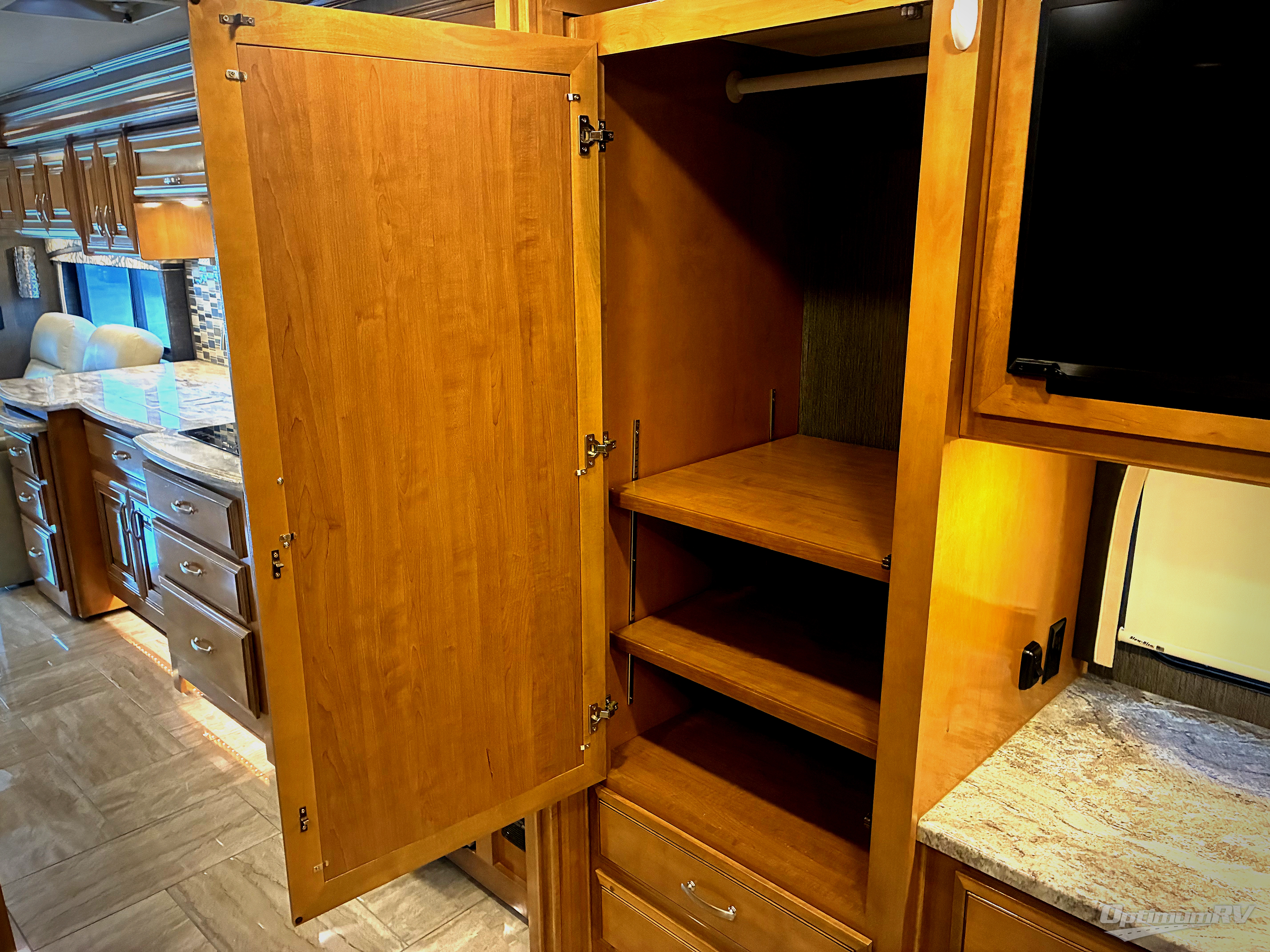 With any Aria class A diesel motorhome by Thor Motor Coach you will be impressed with the 100W solar charging system. The system helps maintain the coach batteries while the Bluetooth App allows for quick control of the charger right from your cell phone or tablet. There is a Onan RV QD 8000 diesel generator as well. You will find a lateral arm awning which allows you more room underneath without having to duck under the arms to get to the entry. Inside you will be able to relax and sleep on the Denver Mattress king size bed with Tilt-A-View inclining bed mechanism while reading a book or watching the 32" LED TV. You can even charge your electronics with the USB ports in the nightstands. Come choose your favorite coach today!