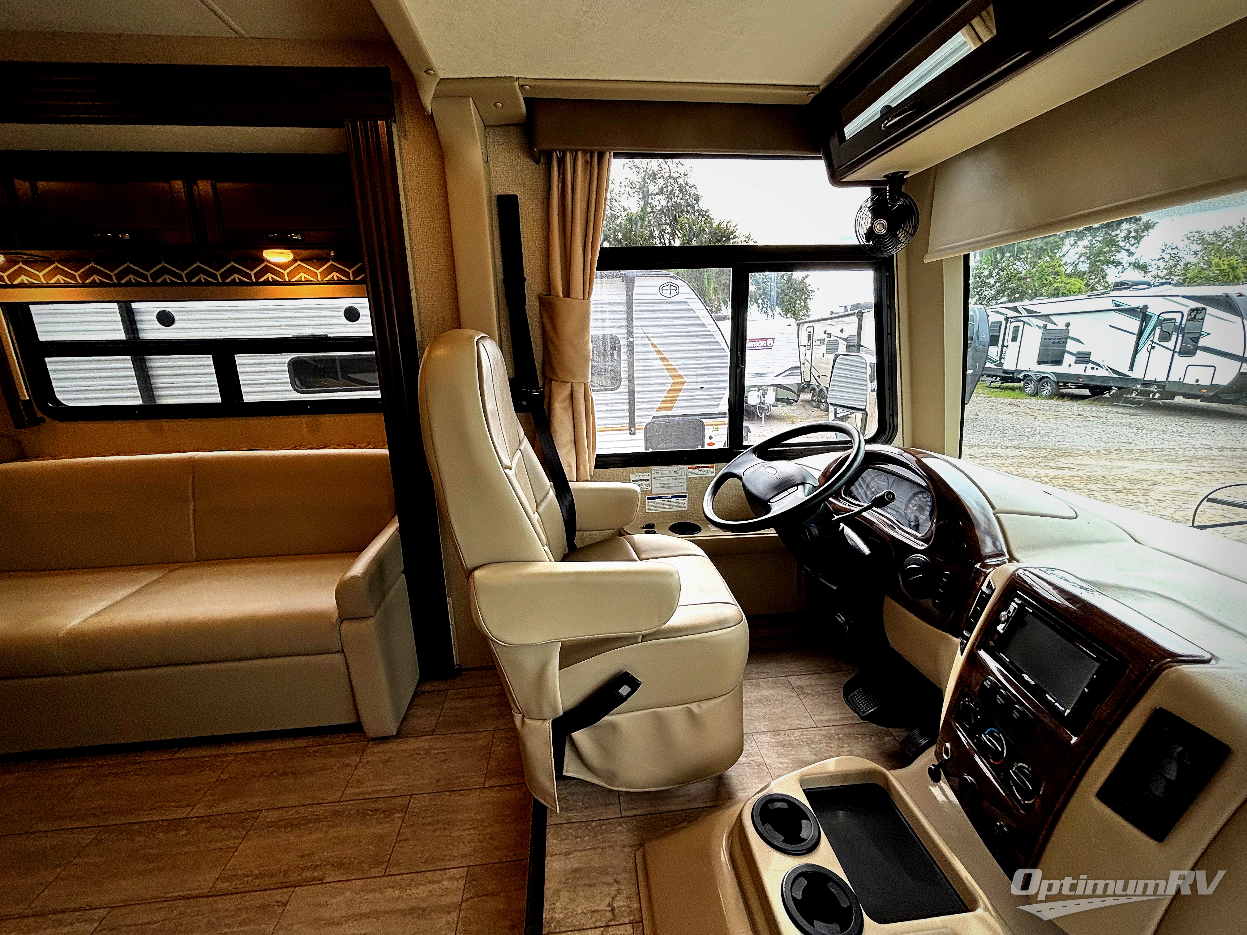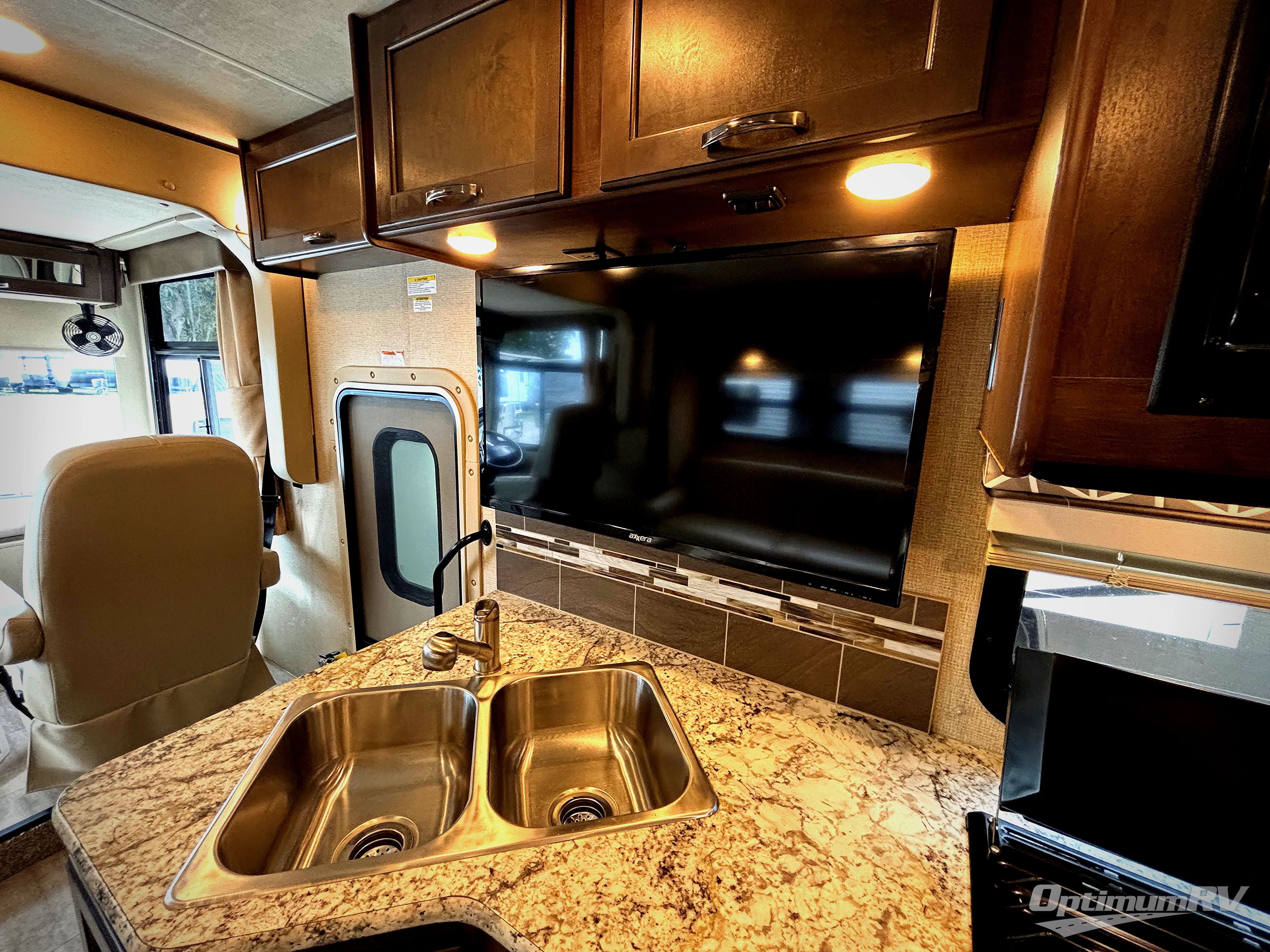 If you don't want anything holding you back while you see the country, then you need this Freedom Traveler Class A gas motorhome! You'll feel completely confident as you sit in the cab and use the back-up monitor to park at the campsite, and the reclining/swivel captain's chairs are not only helpful while you travel, but they are also great for relaxing once you've set up camp. The decorative backsplash and laminate countertops in the kitchen create a beautiful environment in which to cook dinner, and the stainless steel double-bowl sink with pull-down sprayer is extremely handy for cleaning up the mess from dinner.