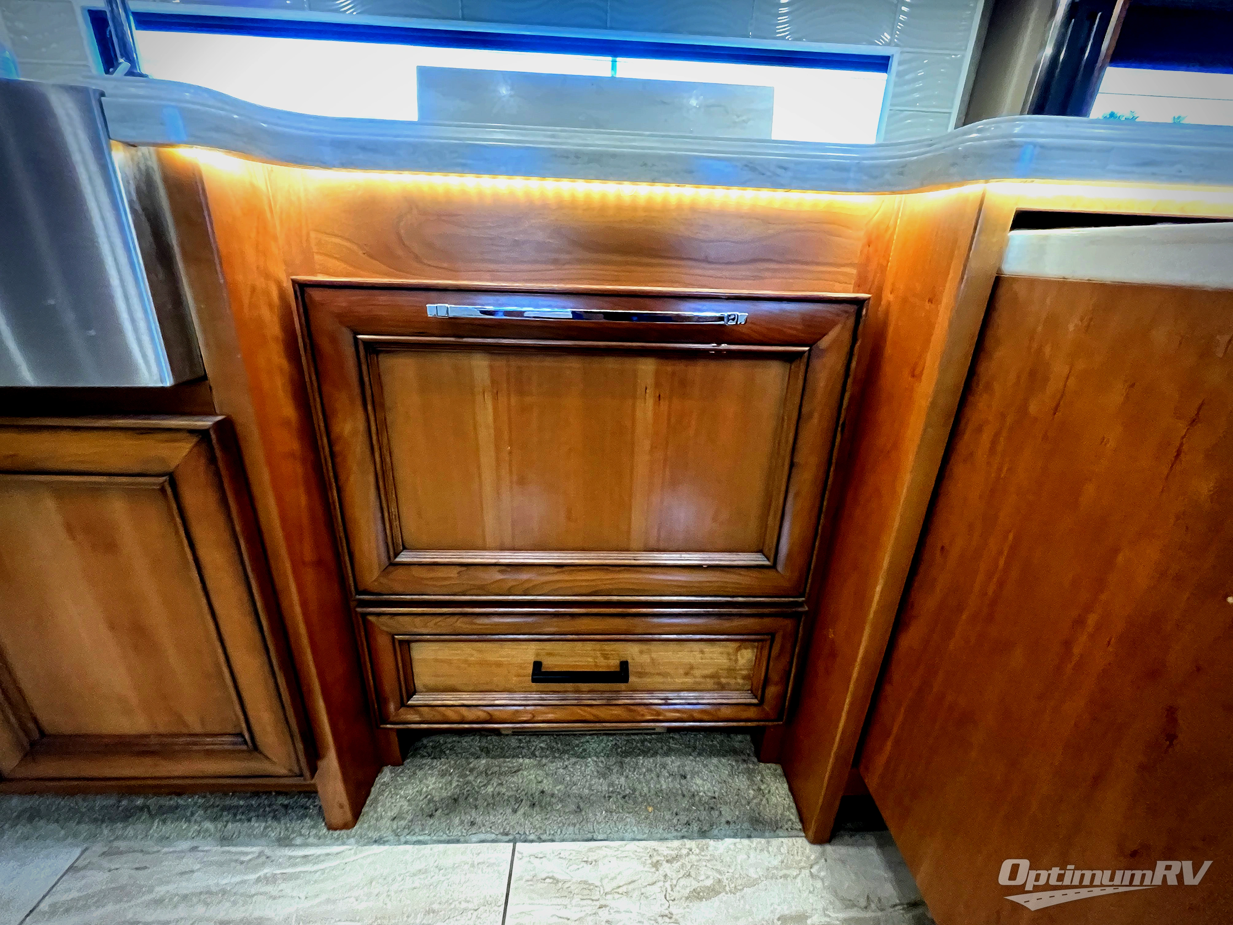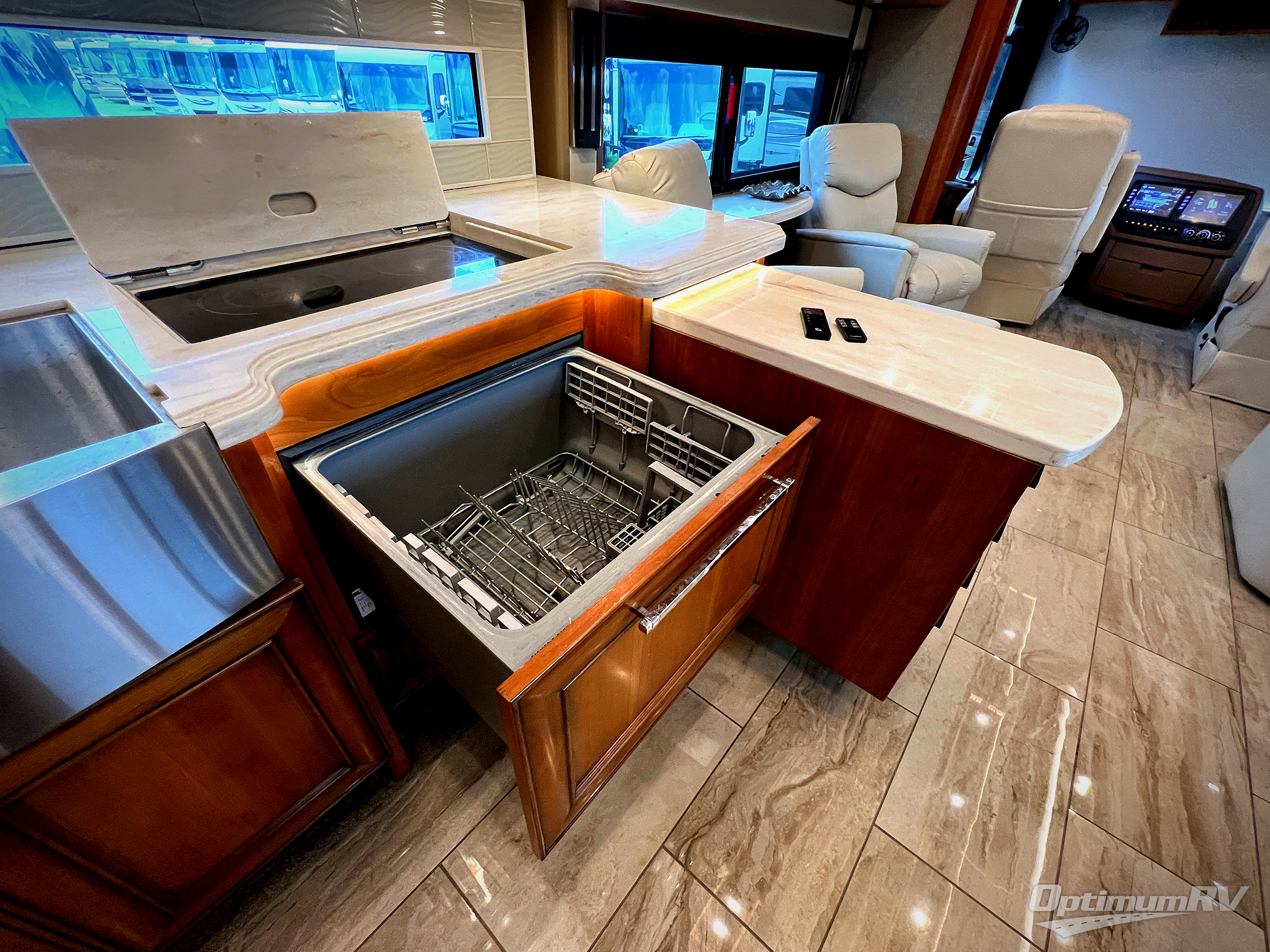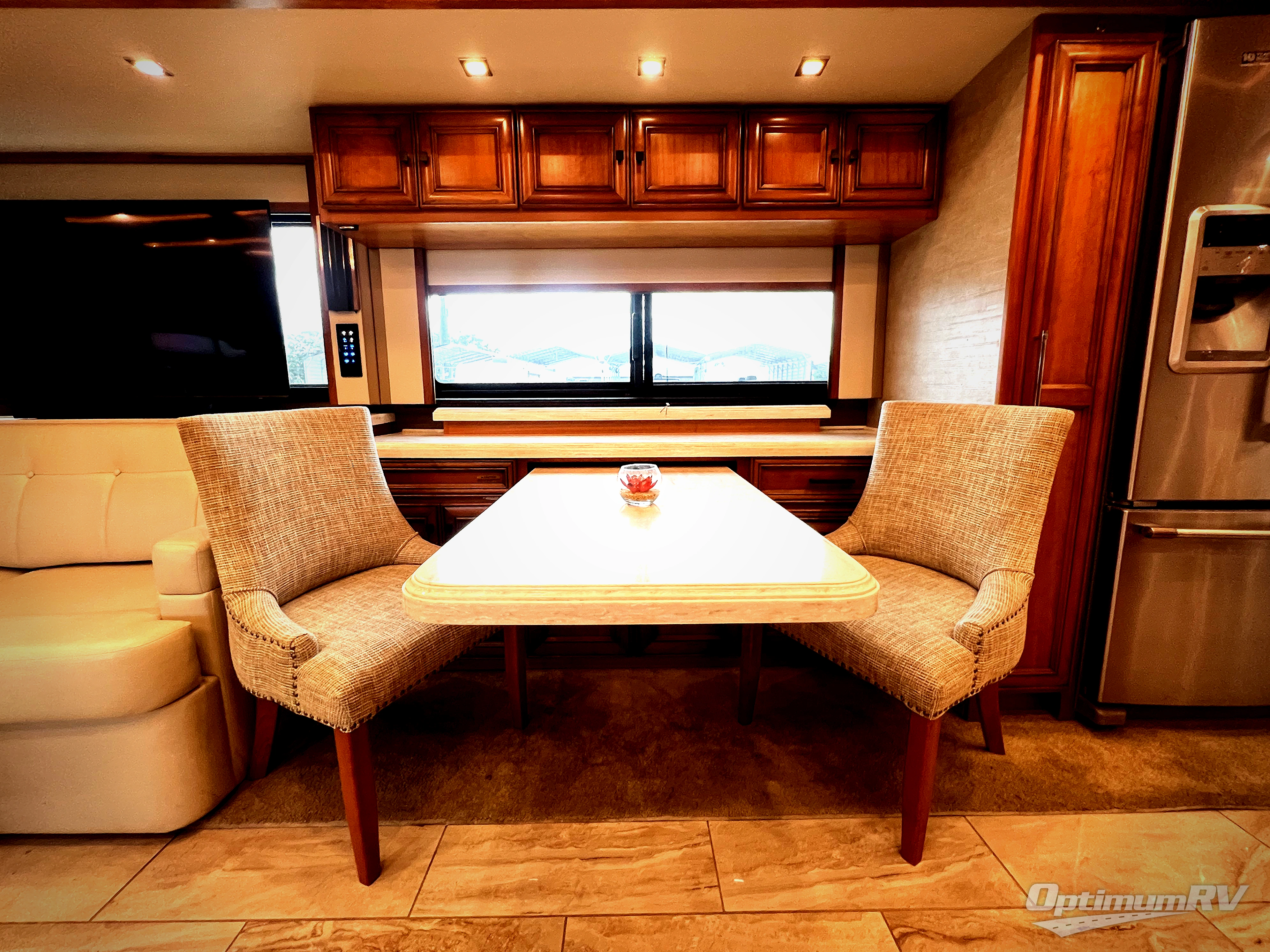 The Allegro Bus class A diesel motorhome allows you to enjoy luxury at any given campground, RV spot, or on the open road. From the low maintenance of the porcelain tile floors offering durability and elegance to the raised panel hardwood cabinet doors, the coaches provide beauty everywhere you look. The surround sound speakers, the central vacuum cleaner, and the full size pantry provide entertainment, quick clean up, and more space for non-perishables. A few key exterior features include ground effects lighting, dual pane tinted windows, a keyless entry door system for easy entrance, plus chrome heated power mirrors with remote adjustments and so much more!