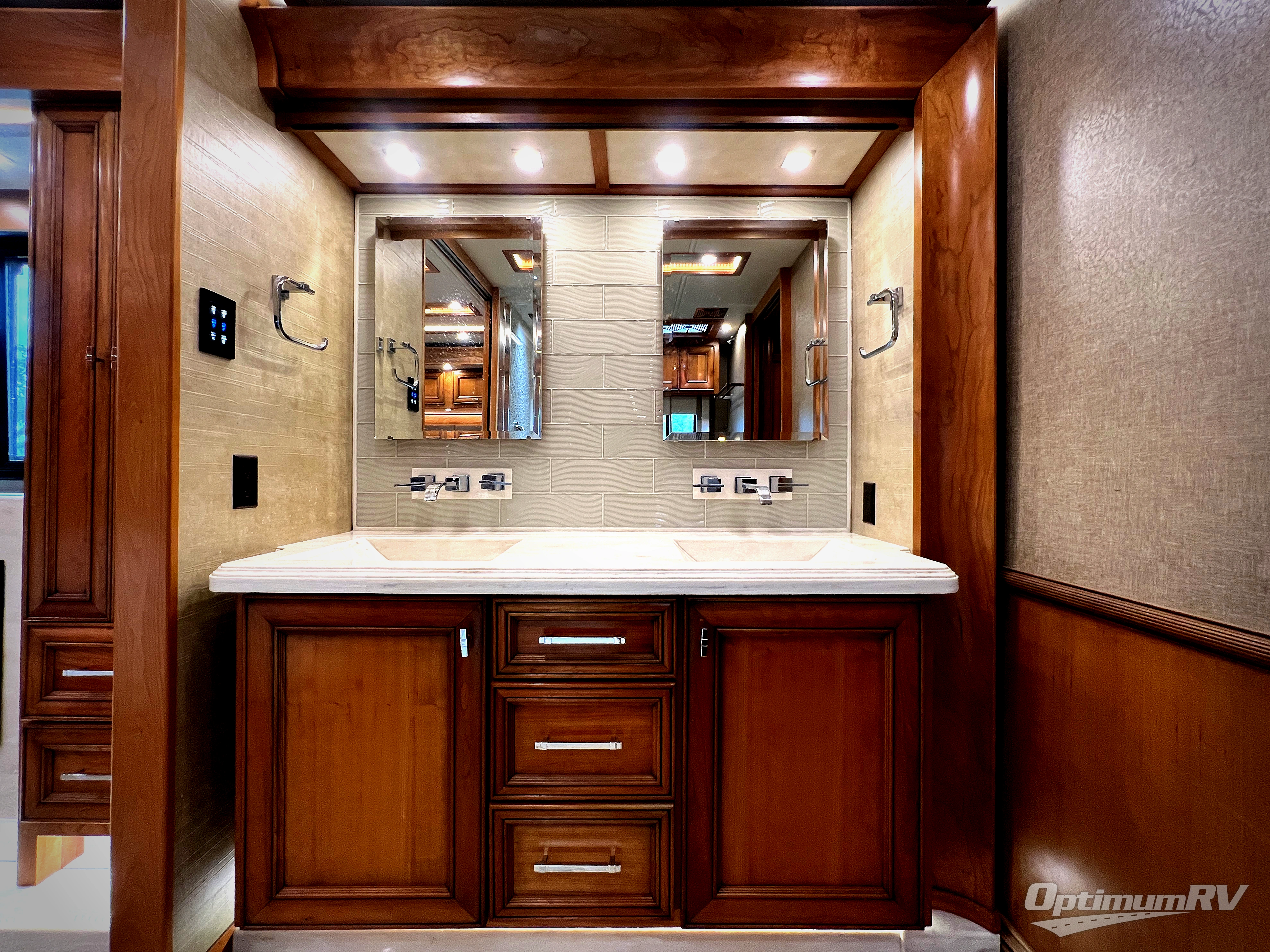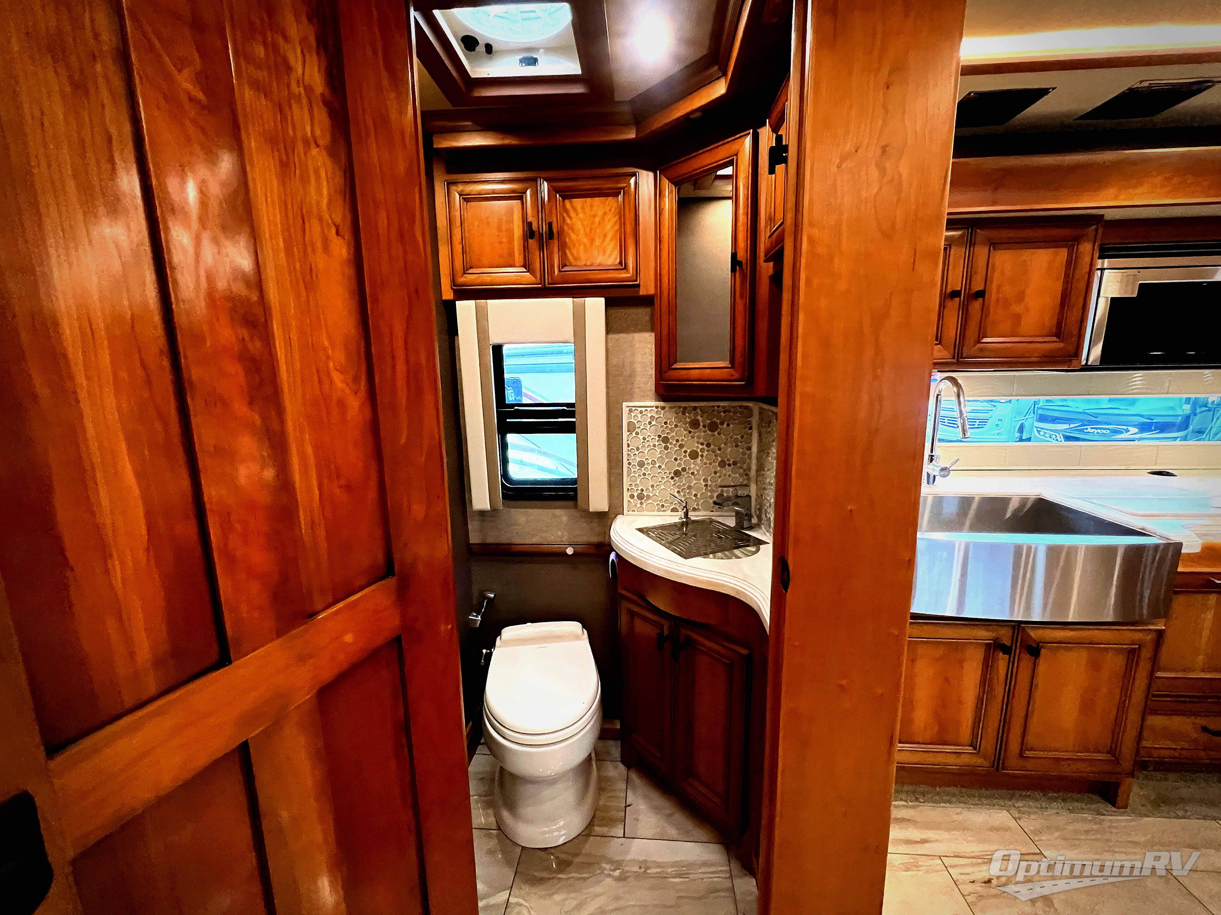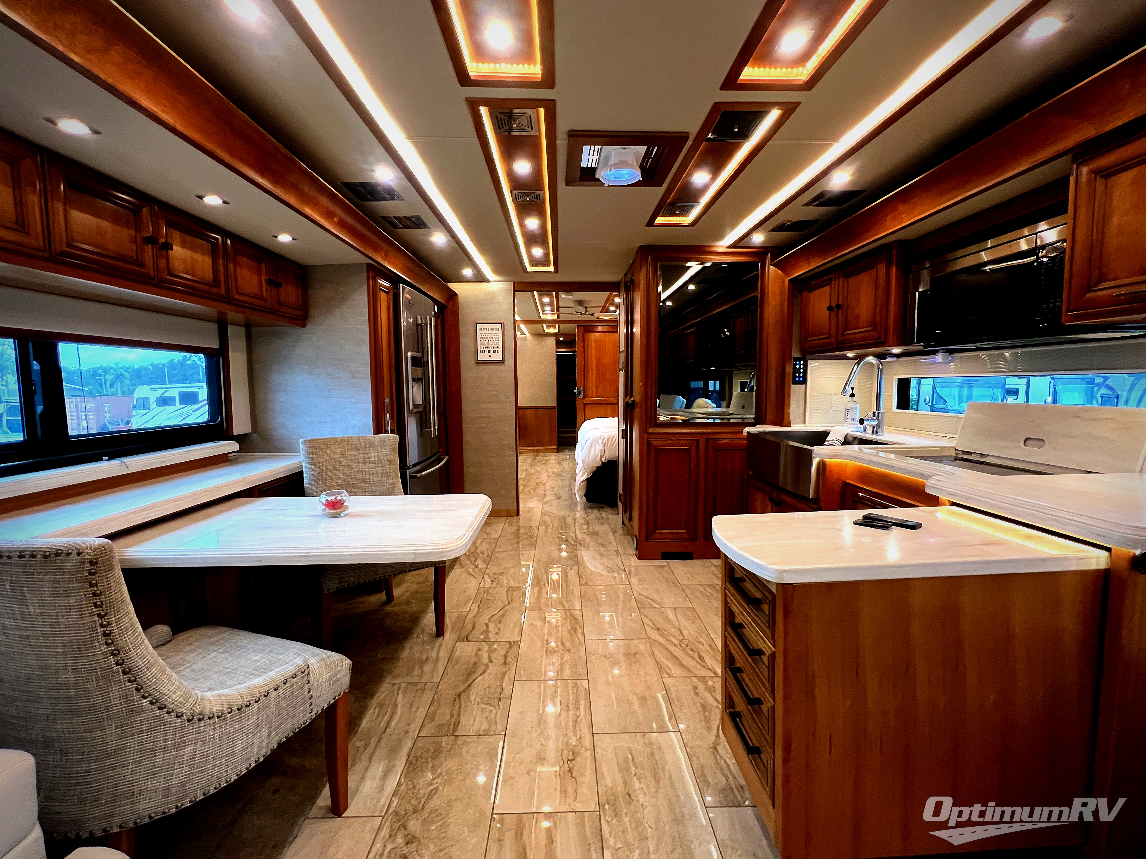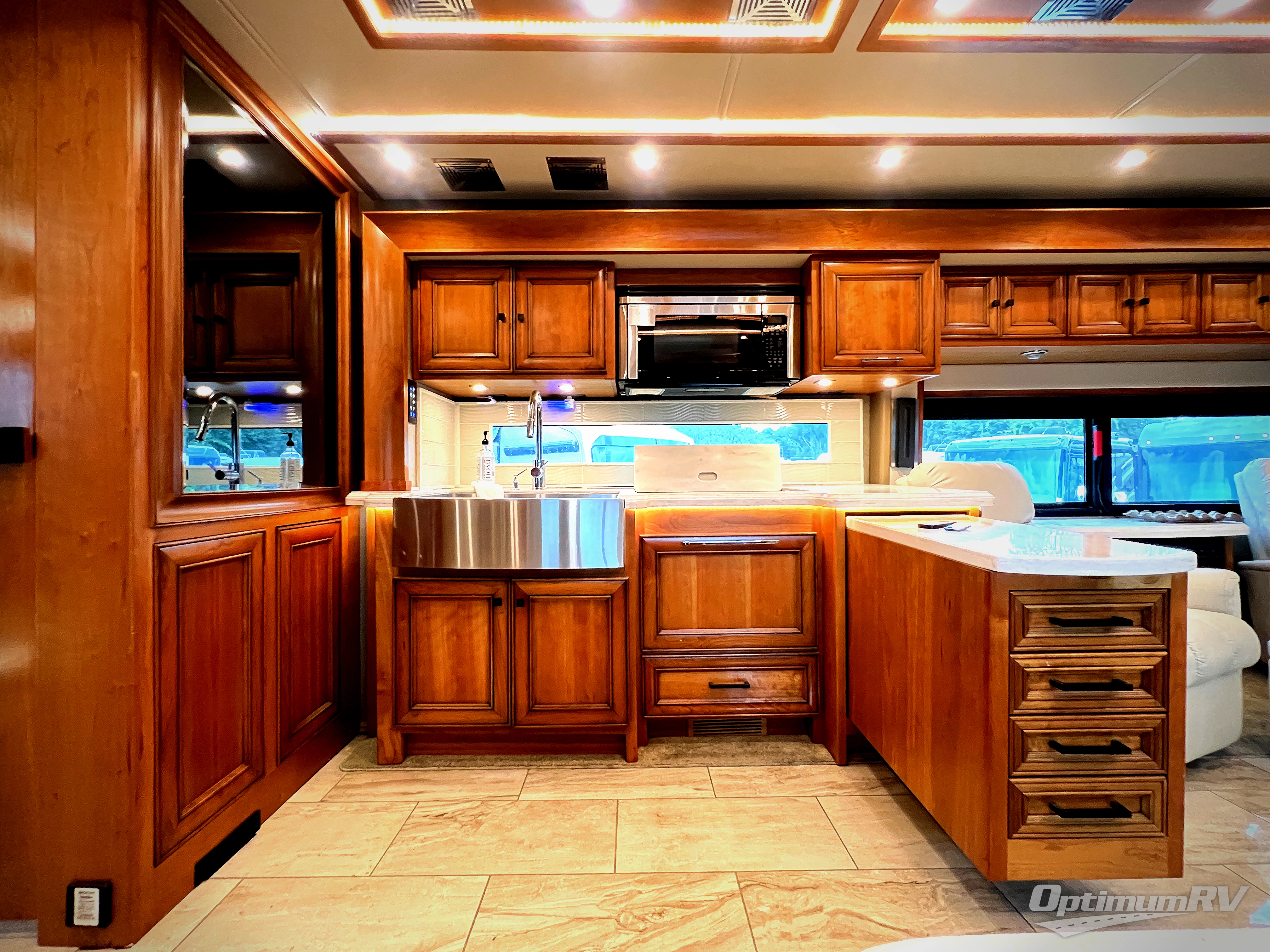 The Allegro Bus class A diesel motorhome allows you to enjoy luxury at any given campground, RV spot, or on the open road. From the low maintenance of the porcelain tile floors offering durability and elegance to the raised panel hardwood cabinet doors, the coaches provide beauty everywhere you look. The surround sound speakers, the central vacuum cleaner, and the full size pantry provide entertainment, quick clean up, and more space for non-perishables. A few key exterior features include ground effects lighting, dual pane tinted windows, a keyless entry door system for easy entrance, plus chrome heated power mirrors with remote adjustments and so much more!