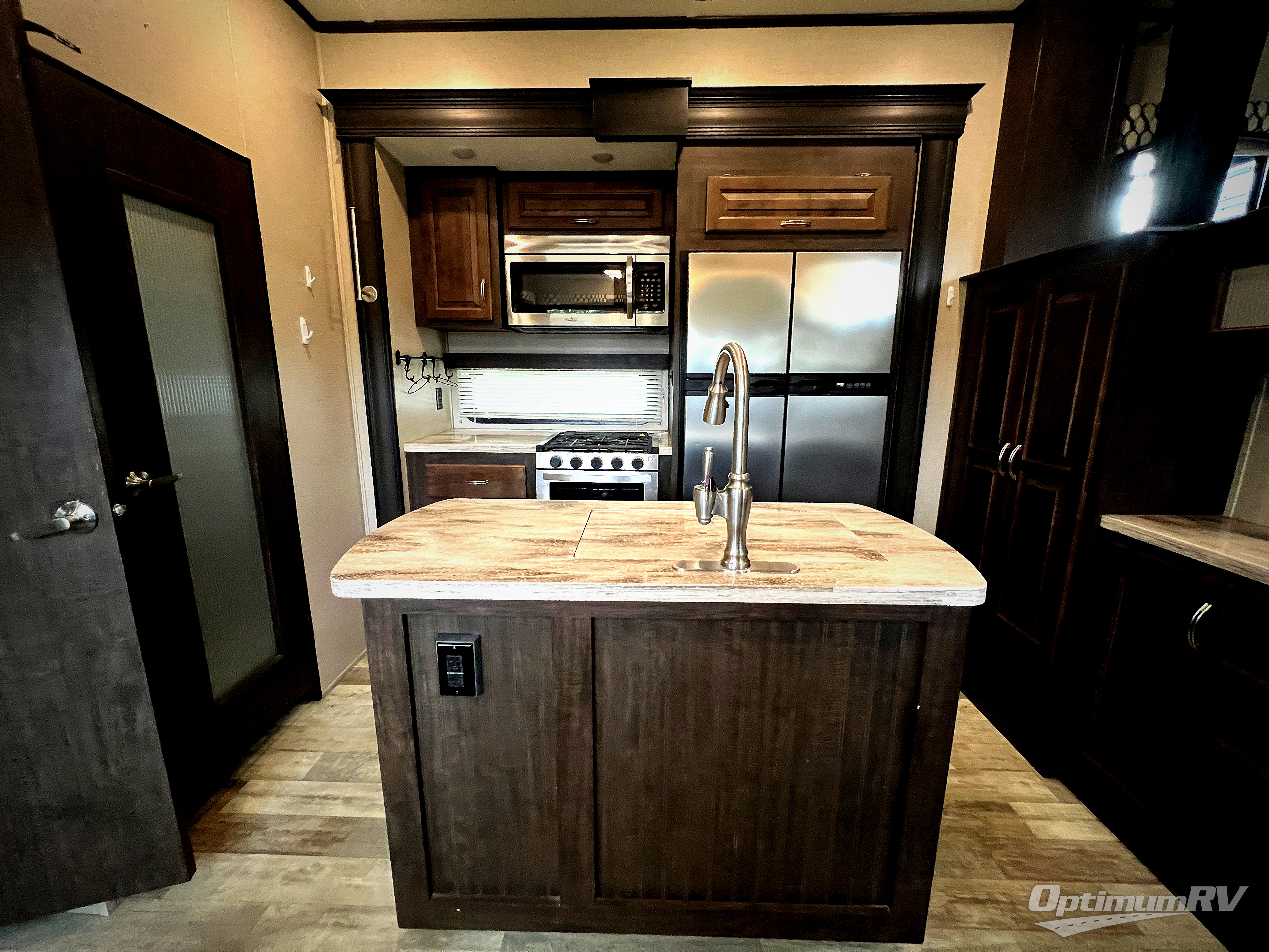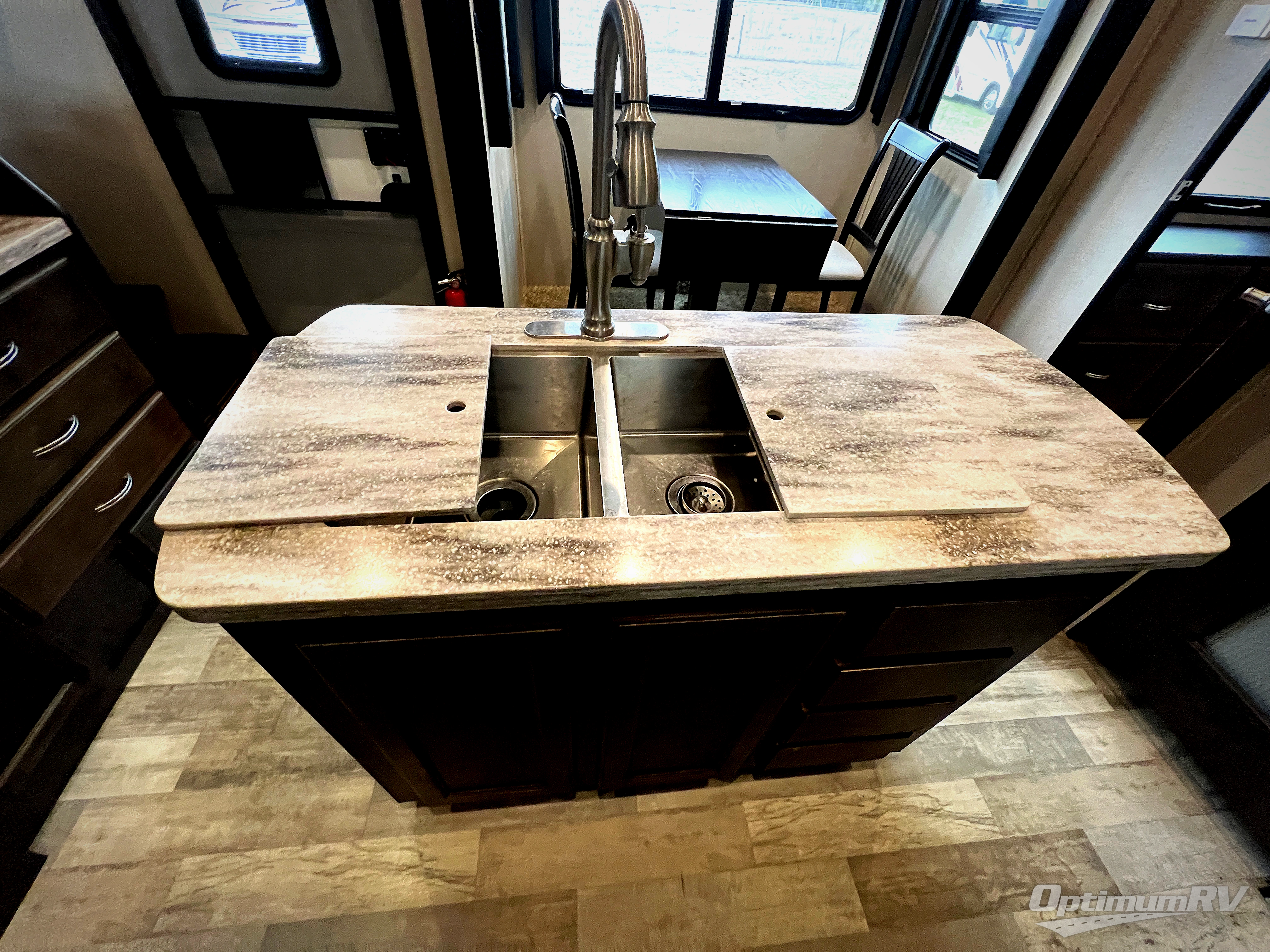 Any Brookstone fifth wheel will have all the comforts that you desire for camping. Each newly redesigned high-profile wide-body provides a quality build that allows you to explore and enjoy any surroundings that you choose without compromise. On the outside, you will appreciate the vacuum bonded and aluminum framed sidewalls with rot proof Azdel panels, Weather Shield protection for both extreme hot and cold temperatures, and Dexter EZ-Flex suspension for a smooth tow. Parking will also be a breeze with the Turn-Tec engineering that is short-bed friendly. From the inside, enjoy beautiful views through the extra large windows that bring nature right in next to you. You will also find a well appointed kitchen with stainless steel appliances, granite/marble-style countertops, and storage in all the right places. Don't wait any longer for your dream vacation, get it anywhere you park a new Brookstone fifth wheel featuring all the detail and comfort that you've been waiting for!