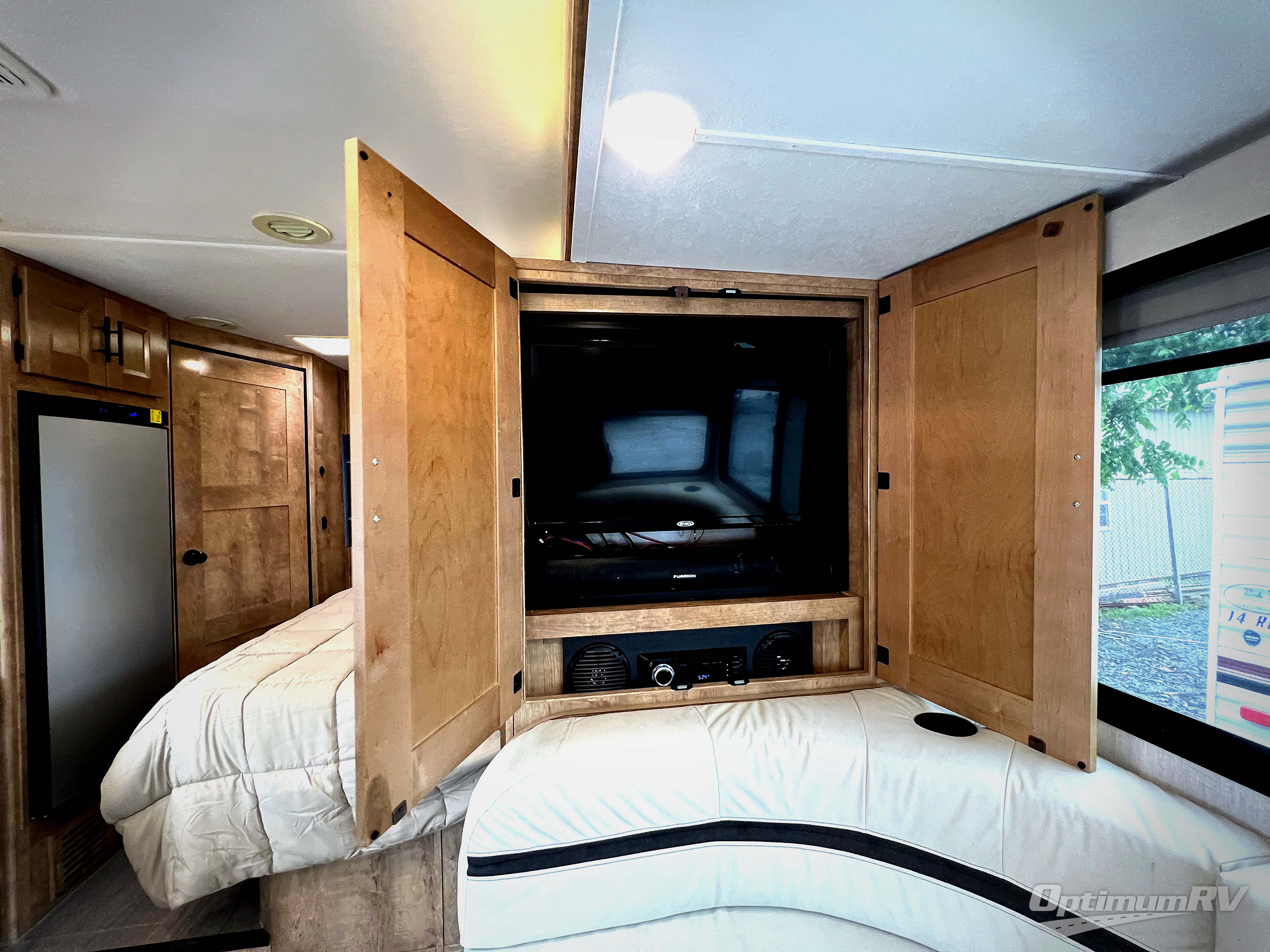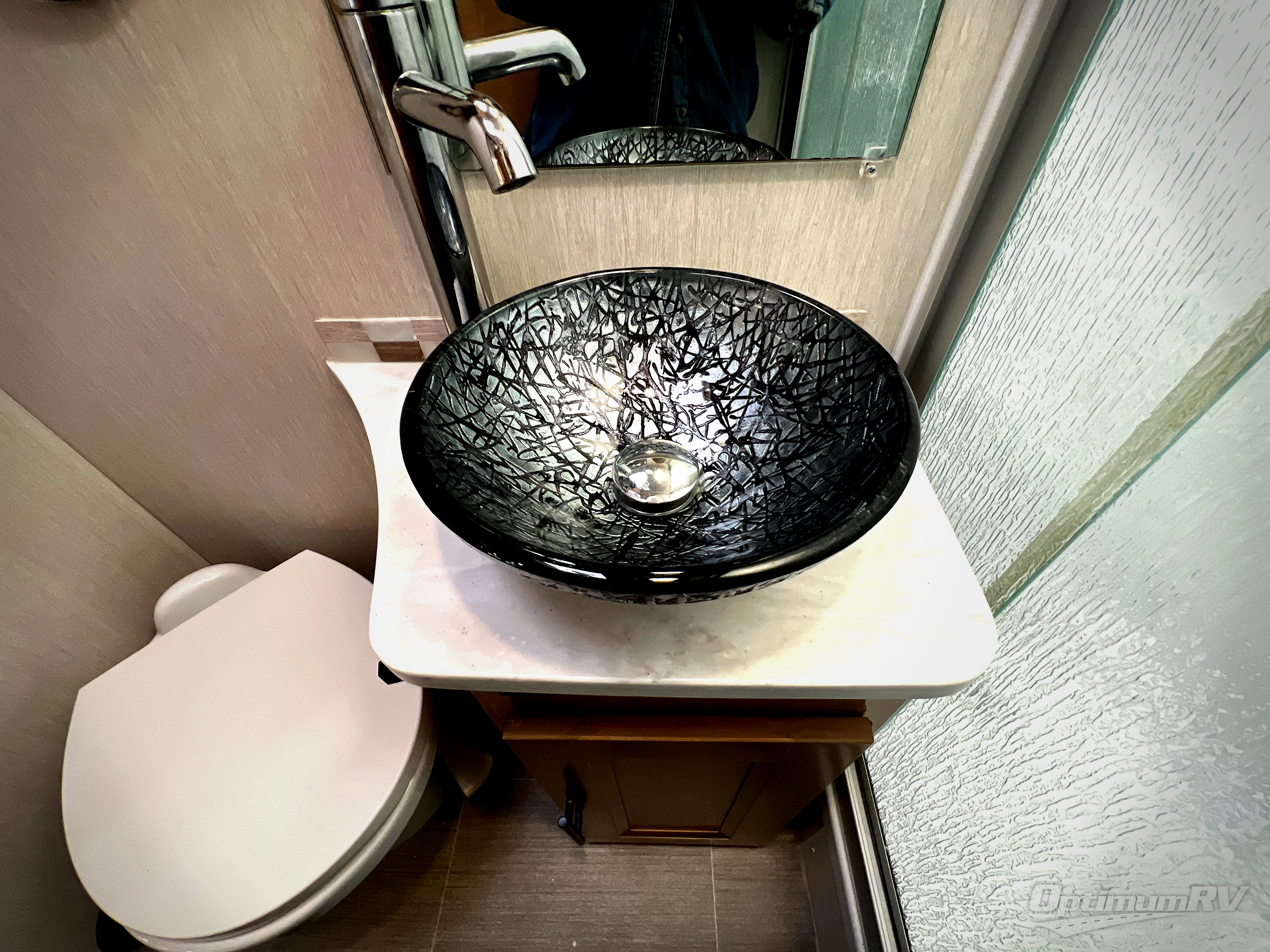 Do you dream about traveling to far destinations and enjoy attending events with the comforts of your own accommodations? Just envision drinking your coffee while sitting in the driver and passenger seat with a pedestal table between while planning your day. You can also rest on the queen bed while the kids or your guests sleep on the cab-over bunk and U-shaped dinette. Everyone will appreciate the convenience of a private bathroom no matter where you travel. And the cook will surely love heating up leftovers in the convection microwave for quick meals when on the go. Come see why this RV just makes sense!