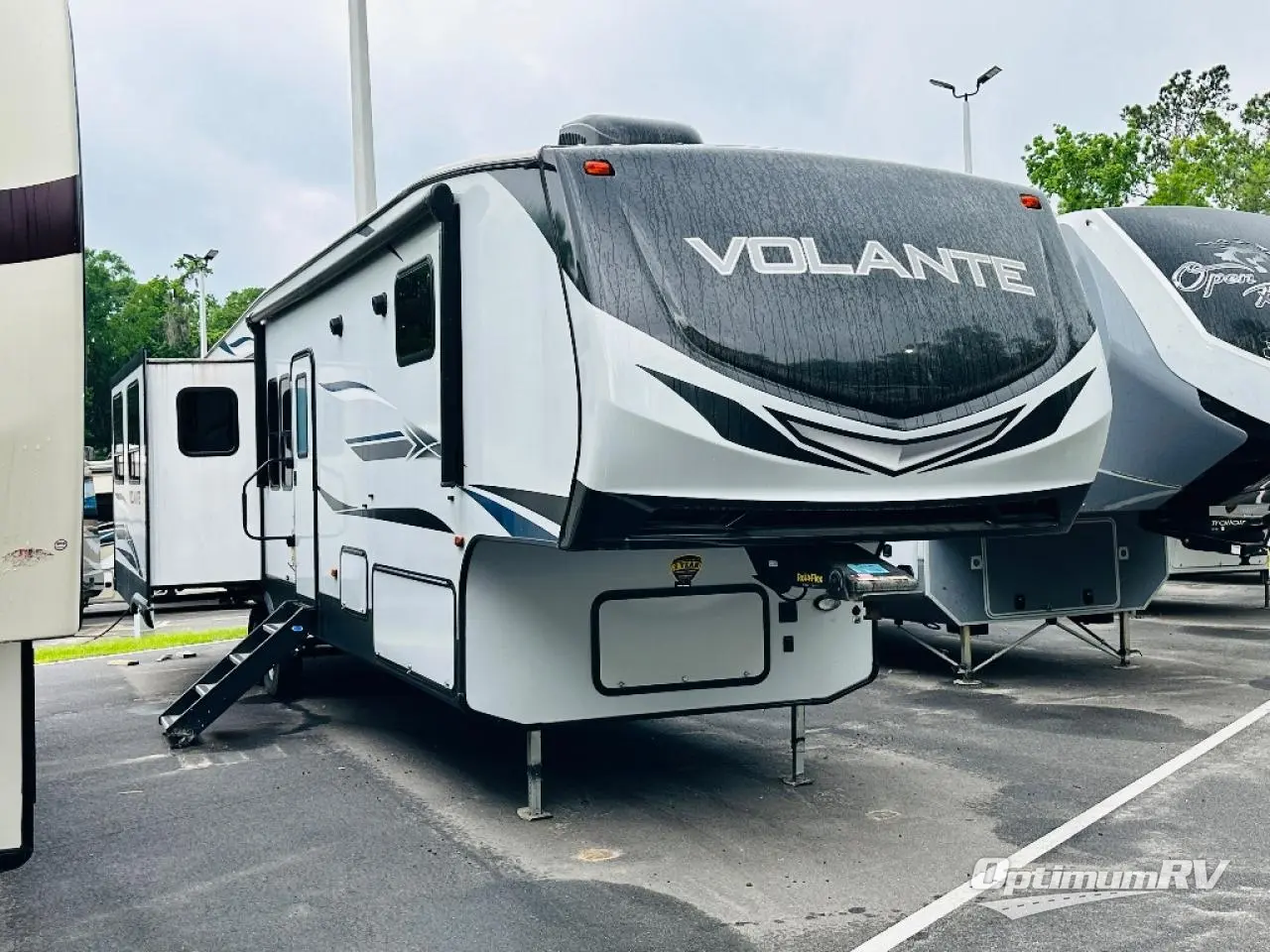 You'll never get tired of venturing out to your favorite campground when you have this Volante fifth wheel waiting for you! This unique unit is perfect for the couple who enjoys entertaining friends because it has a bonus gathering area with an L-shaped bar top with stools, a wet bar, and a wine cooler. Plus, the kitchen island is located right next to it so that you can set out appetizers or dessert for people to munch on. If you want to sit down and chat with your guests, you'll find that the tri-fold sofa, the theater seating, and the U-shaped dinette provide a comfortable place to catch up with each other. And at night, retire to your own master bedroom with plenty of storage, a king bed slide, and a second entry into the full bath.