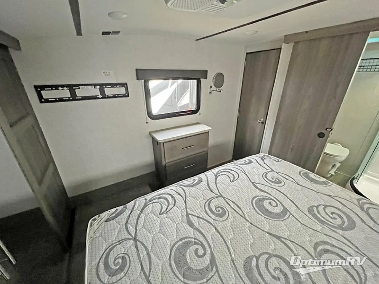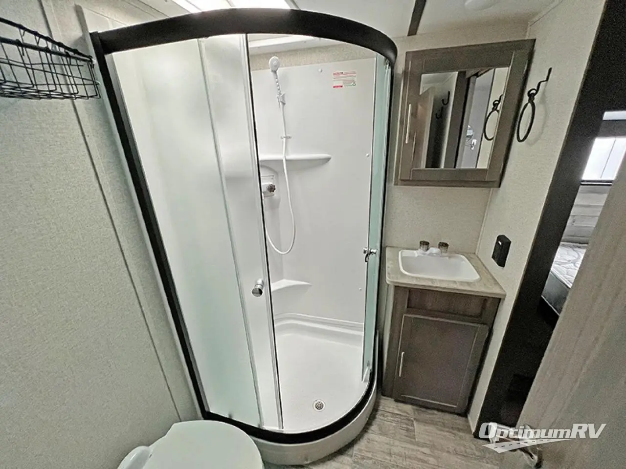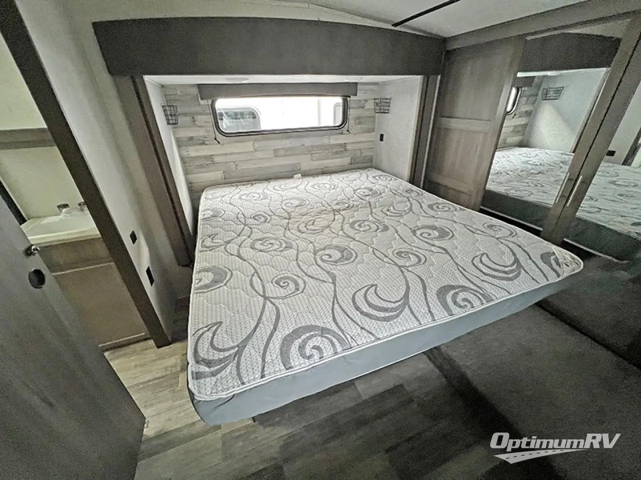 The CrossRoads RV Volante fifth wheels and travel trailers are anything but ordinary! From the premium residential furniture in the living room and interior LED lighting, to the coordinated window treatments in the bedroom, you will be impressed with the Volante from the moment you step foot inside. Each model includes steel ball bearing drawer guides and a wall mounted systems monitor panel in the kitchen, night stands on each side of the bed and USB ports for your phone or tablet, and a mirrored medicine cabinet in the bathroom. Outside, you'll appreciate the outside shower to wash off your hiking boots, and the power awning with LED lights will create an outdoor living space. There are even outdoor speakers with LED accents!