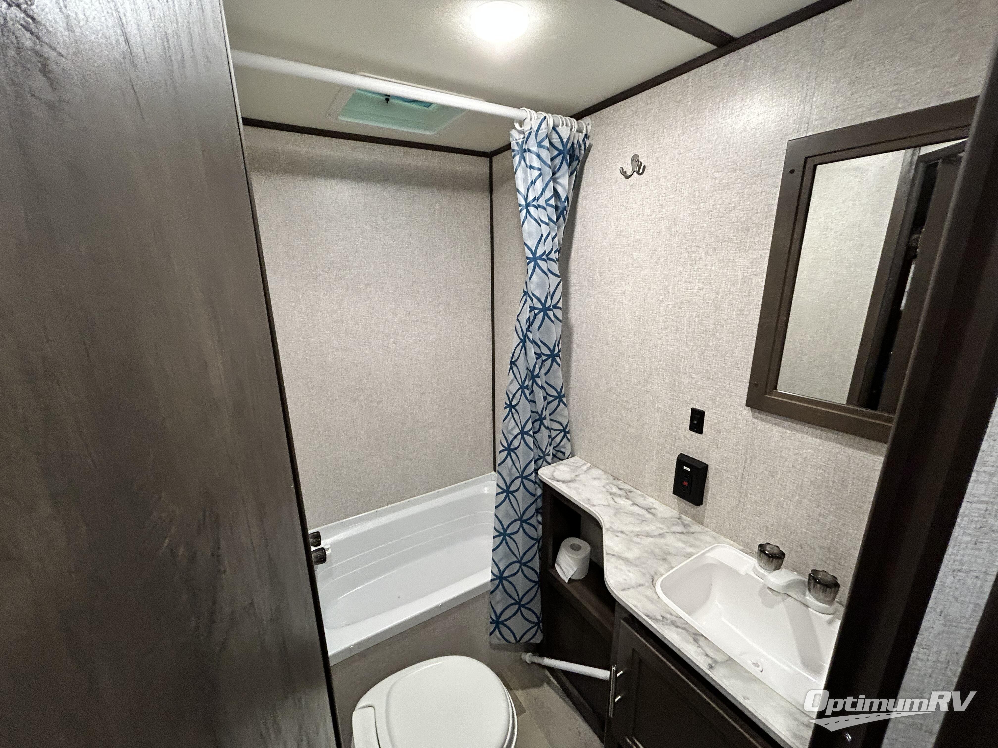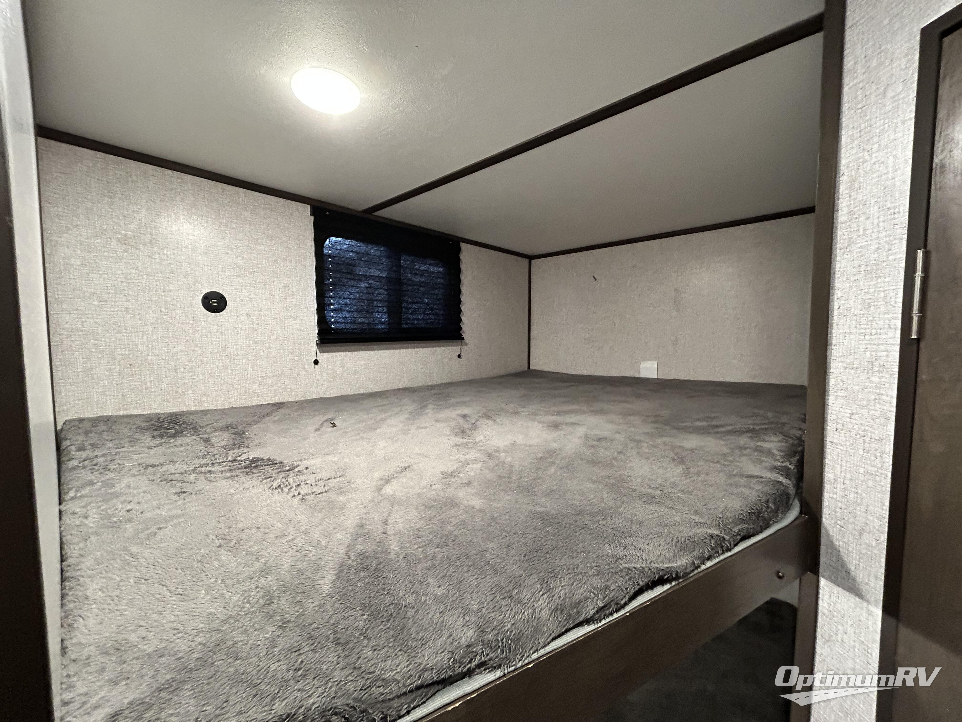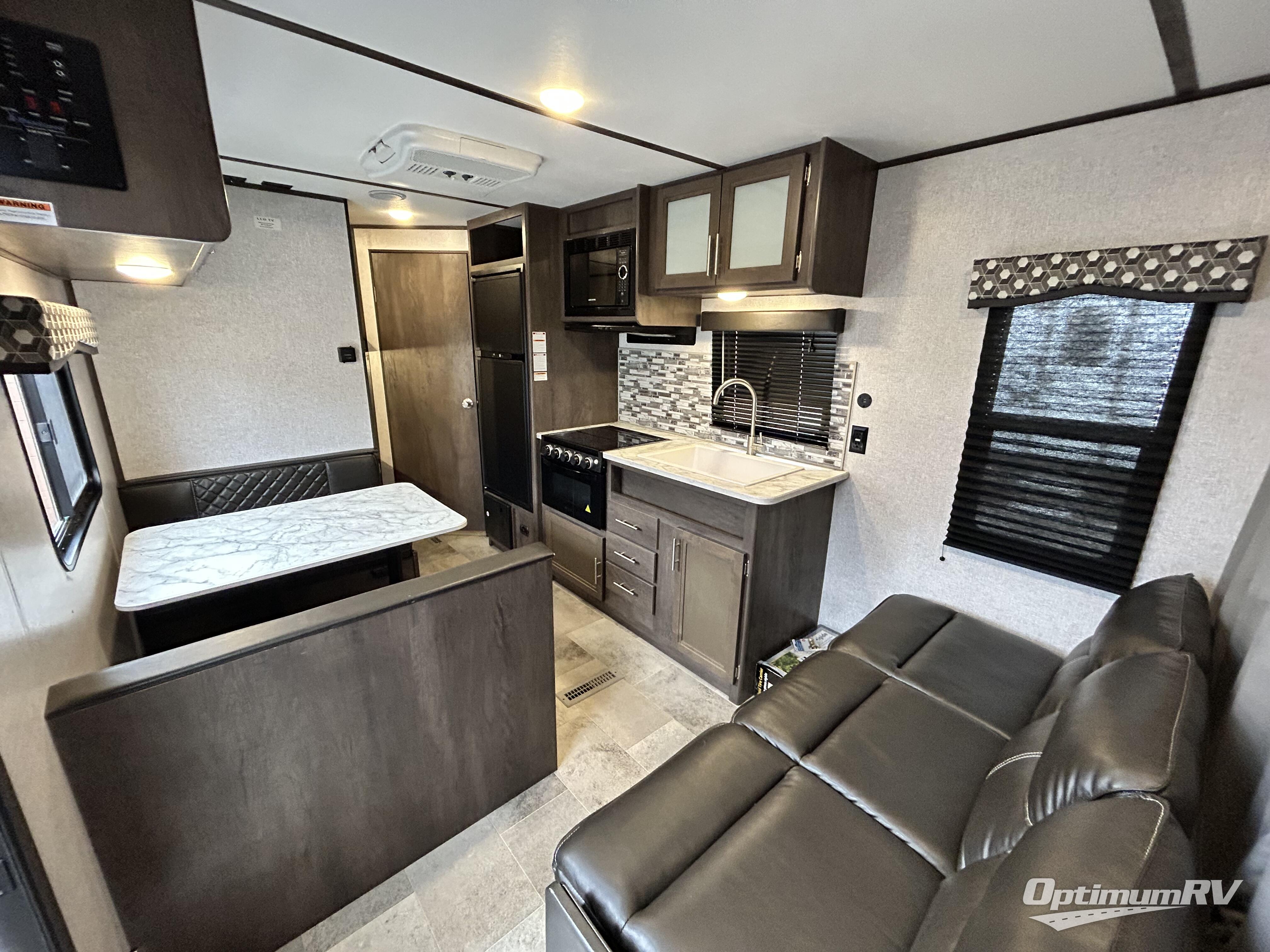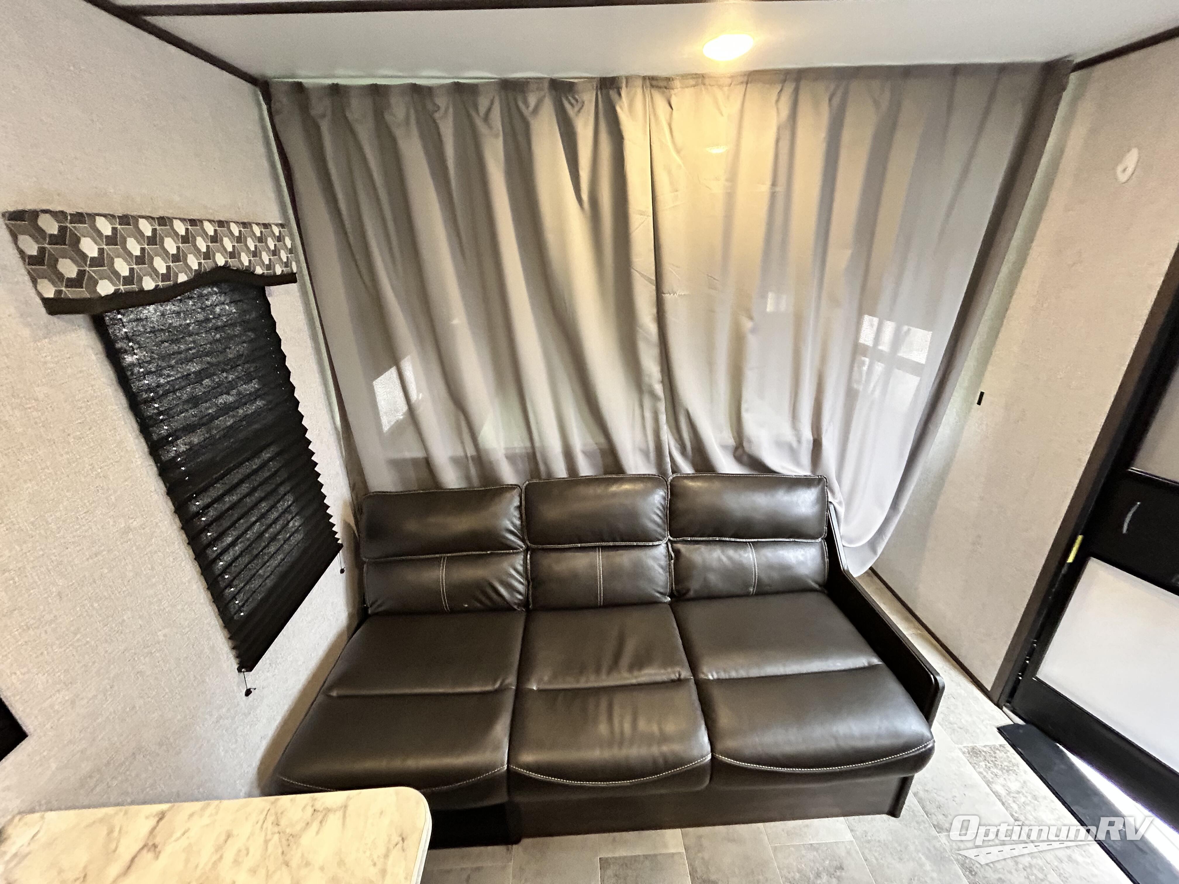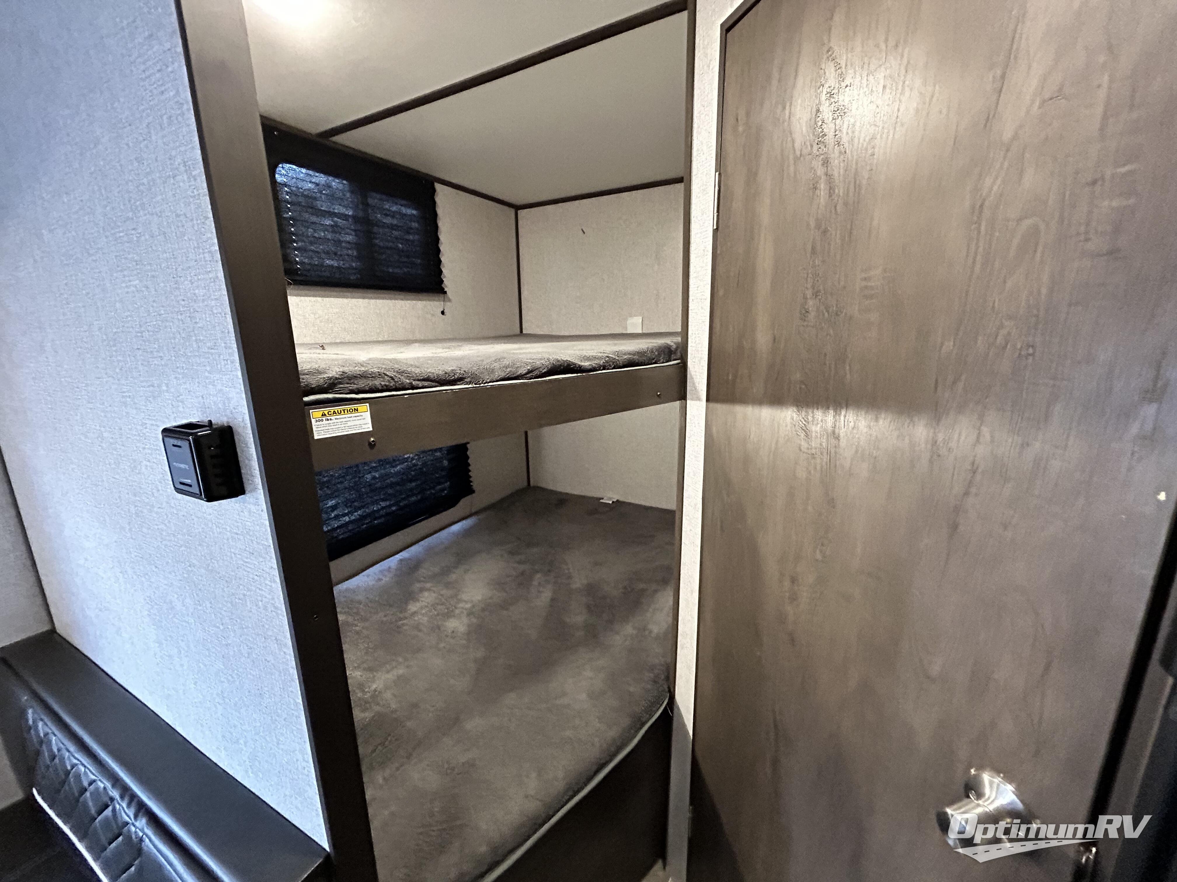 Don't let memorable and adventurous getaways pass you by! Grab this Coleman Lantern LT Series travel trailer and set out on your next great expedition. The full rear bathroom with its skylight will come in handy for your morning routines, and the full kitchen will give you an opportunity to make warm meals for the group. You will be amazed by the amount of sleeping choices this trailer has, enough to sleep eight to nine people comfortably. The bunks will be the kids favorite, and the walk-around residential queen bed will be a nice oasis at night, plus the furniture doubles as sleeping space.