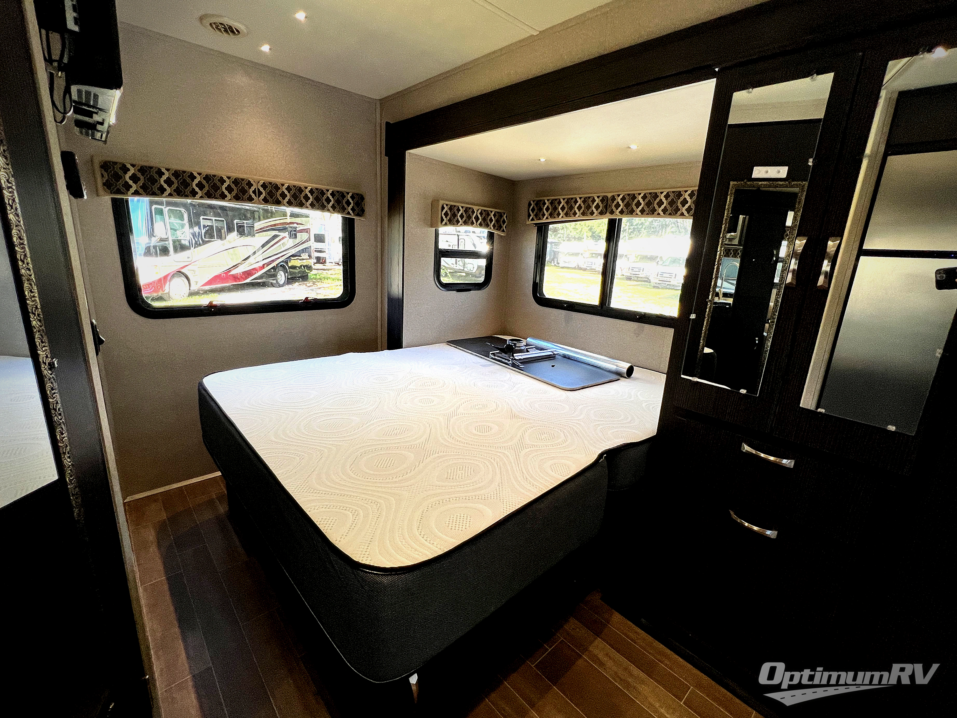 This 24FW Class C diesel motorhome gives you the luxuries of home while traveling on the road! The full wall slide out helps to really open up the interior when you are parked. When you aren't enjoying a meal or playing a card game at the booth dinette, you can head to the rear and relax on the gel-infused memory foam queen-size bed while you watch your favorite movie on the 32" LED TV. You won't have to leave anything behind either thanks to the exterior storage area, the underbed storage, and the overhead cabinets throughout the inside. You're going to love getting clean in the rear corner bathroom with the Oxygenics body spa RV shower head and the residential vanity with a stainless steel sink provides the perfect spot for you to get ready!