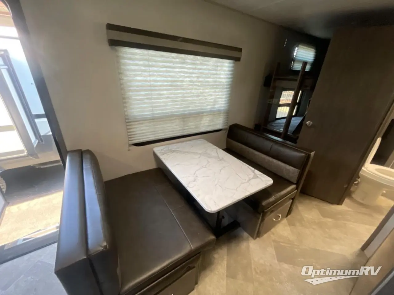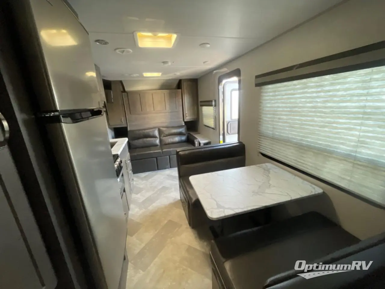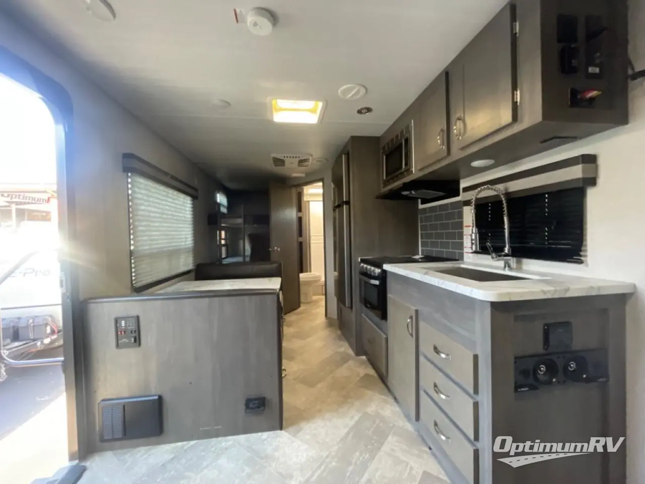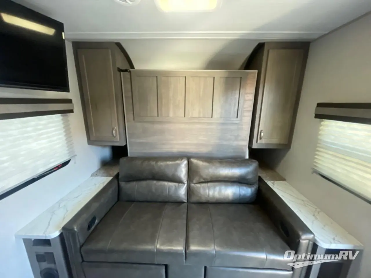 Make plans now for your next camping trip in this Alta travel trailer that can comfortably sleep seven people. The kids will love climbing into the double-sized bunks after a day of playing, and you will love the queen-sized Murphy bed up front. During the day, the sofa in front of the Murphy bed will provide more seating space, and the booth dinette will be great for all your meal times. The chef of the family will have the choice to prepare dinner inside on the cooktop, or use the pull-out grill for hamburgers and hot dogs and the outside refrigerator for more drinks! You will also find plenty of storage, including under the dinette and inside the exterior pass-through storage for items such as fishing poles and tackle boxes.